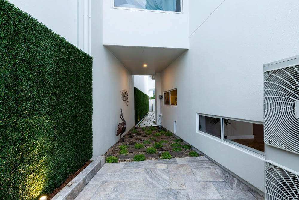 Panels connect using the integrated clip and lug system along all four edges, allowing walls of any dimension to be assembled without visible joins. Panels can be screwed directly to timber framing or masonry, cable-tied to cyclone mesh or steel frames, or mounted using panel track systems. For full guidance, visit the Designer Plants Installation Guide.