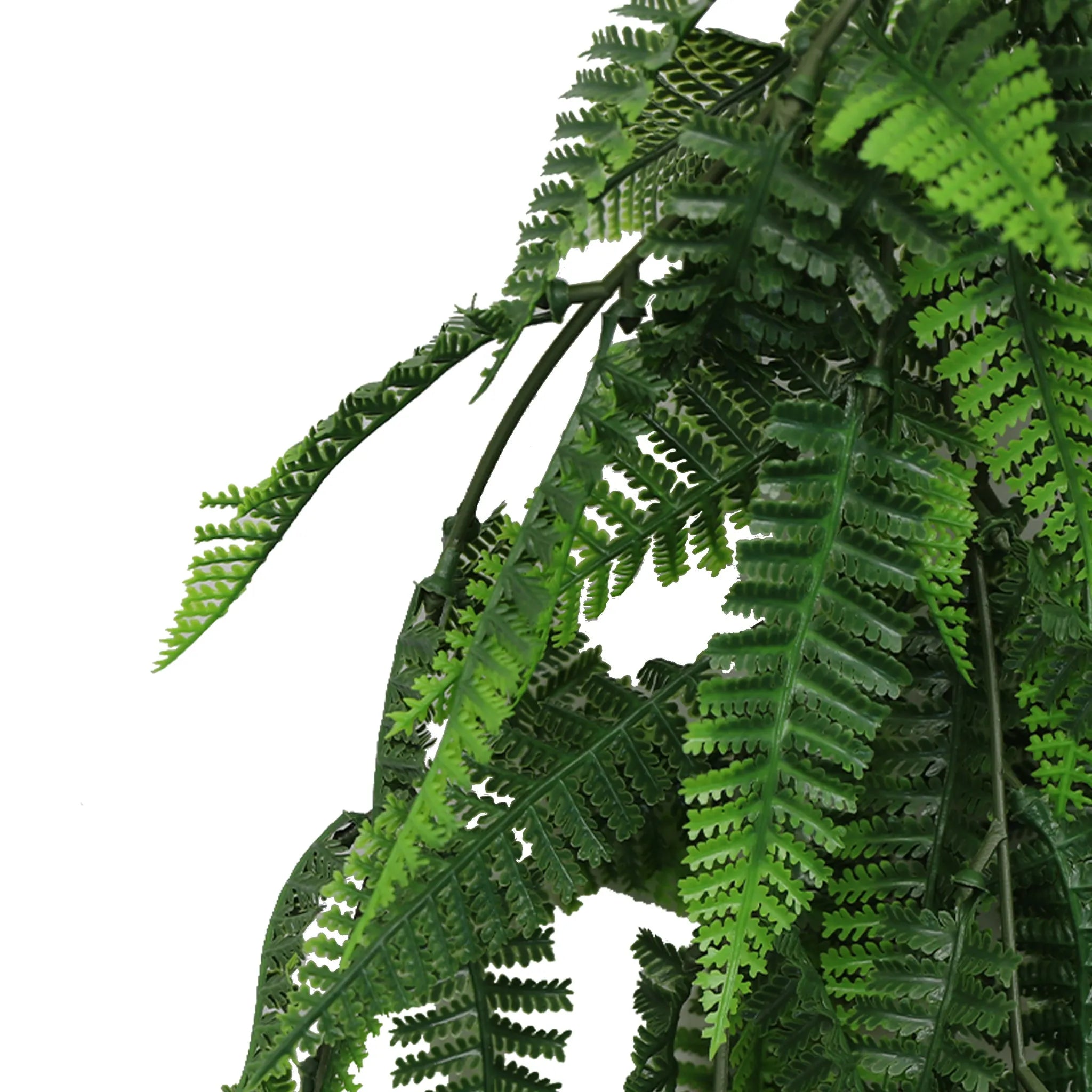 Ten specimens of the Fern Garland, installed in a ceiling display, pergola, or green wall feature, create an immersive botanical environment of extraordinary density and visual richness — the cascading foliage filling any overhead space with authentic botanical character.