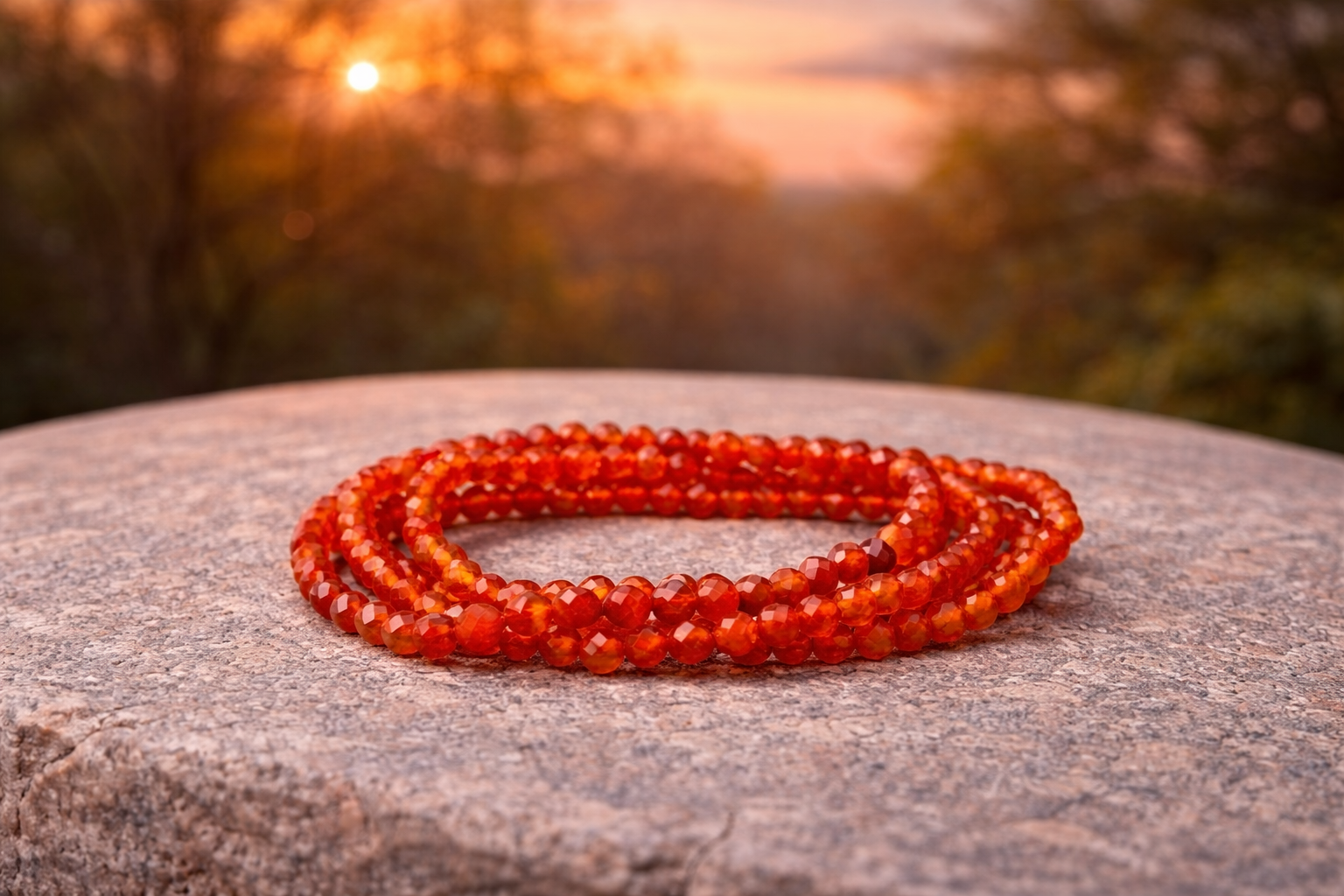 4mm Faceted Natural Carnelian Red Agate Crystal Stone Energy Bracelet