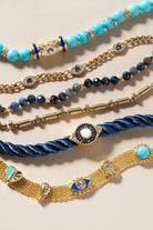 Keep the protective gaze of the Evil Eye over you. Repel negative forces when you add the Evil Eye Bolo Bracelet to your boho eclectic wrist stack, featuring reconstituted turquoise beads spaced with round golden beads and a crystal-centered evil eye charm at the center on a shiny gold bolo pull-chain closure for a custom fit.