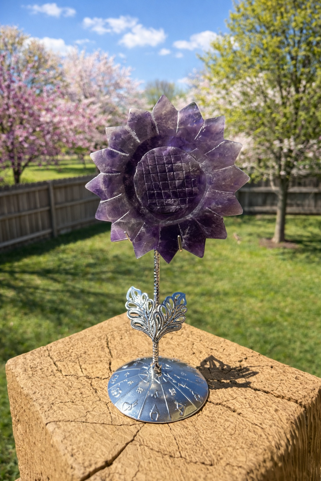 Amethyst Springtime Flower Carving with Stand