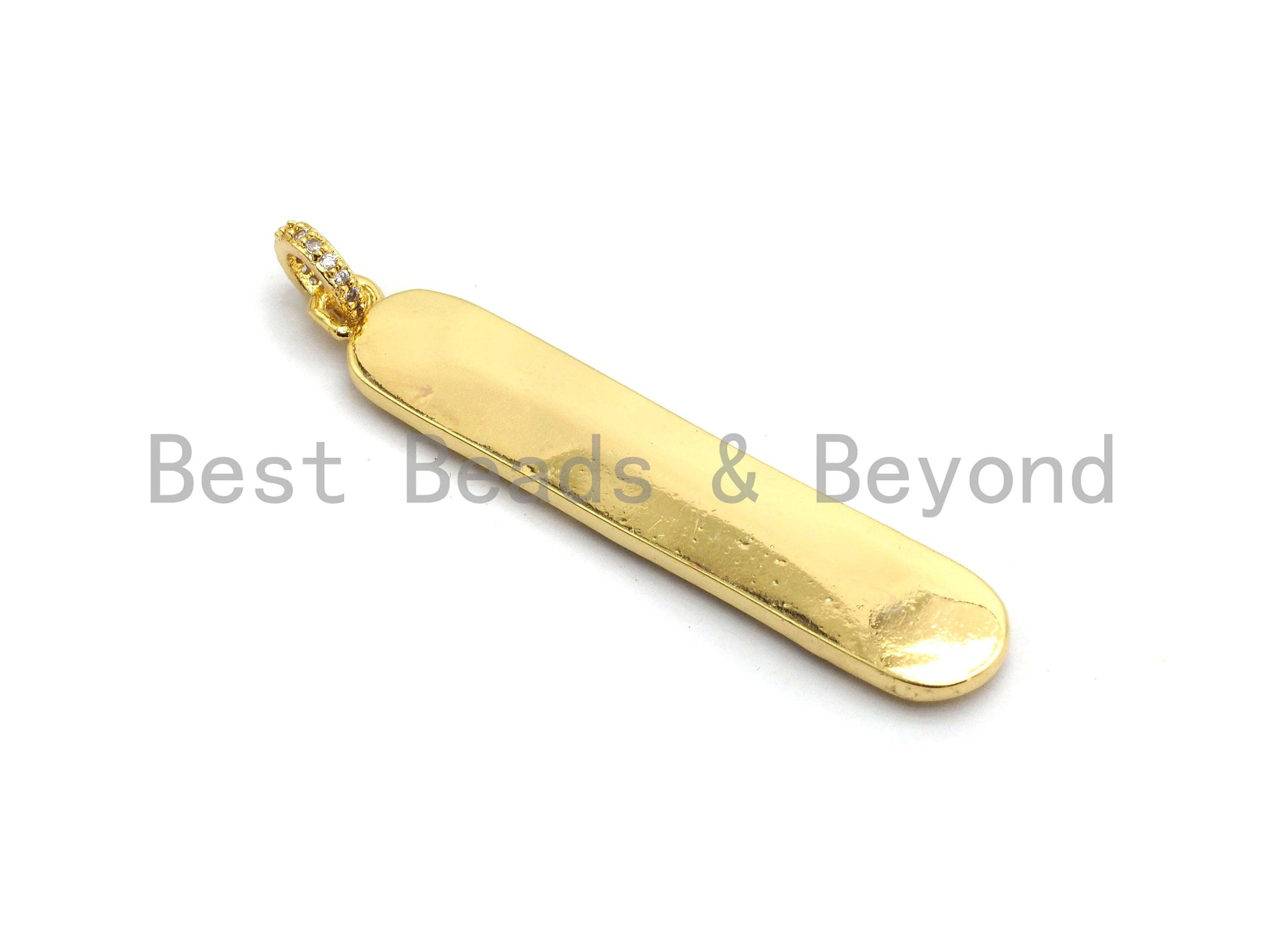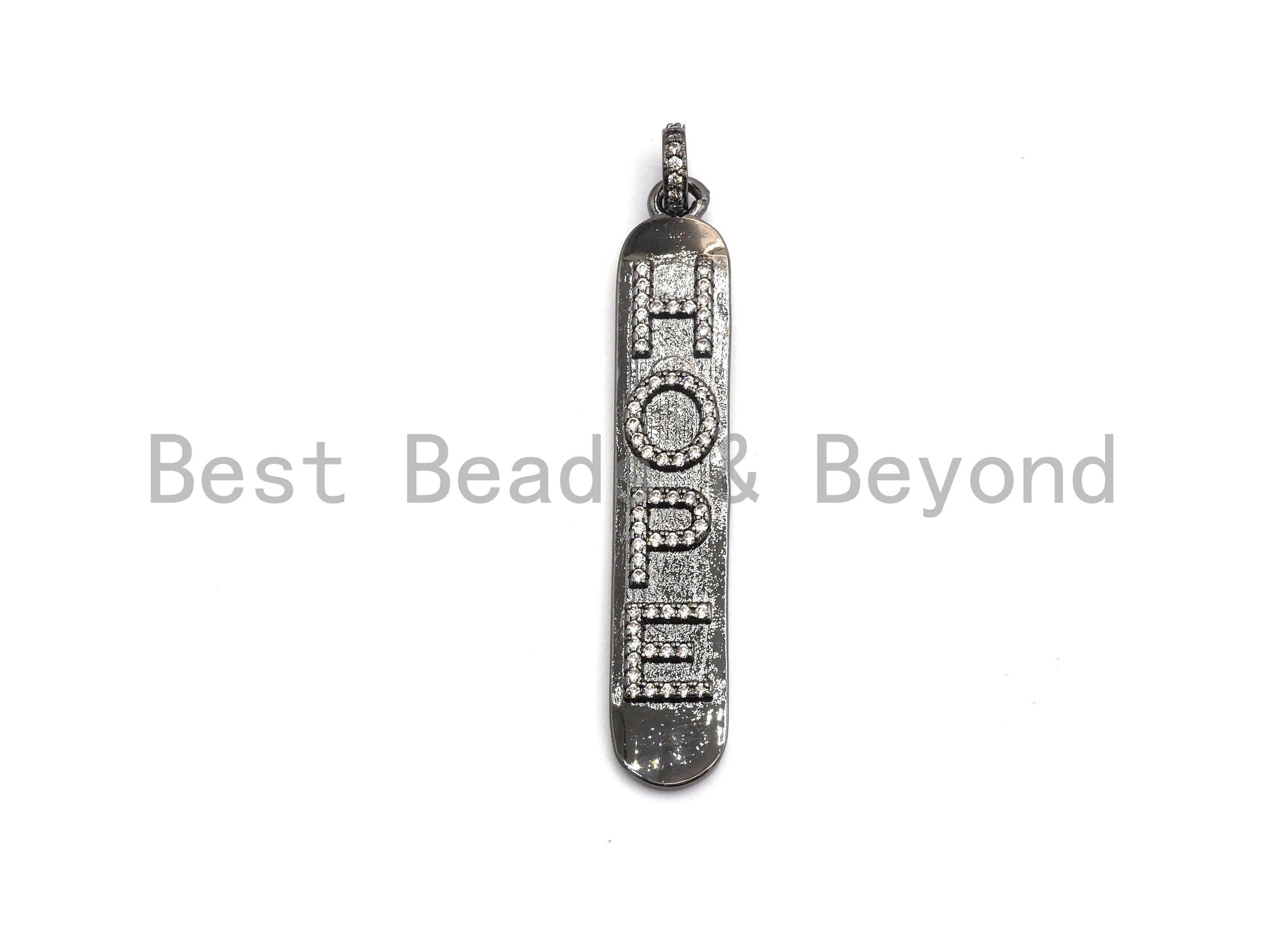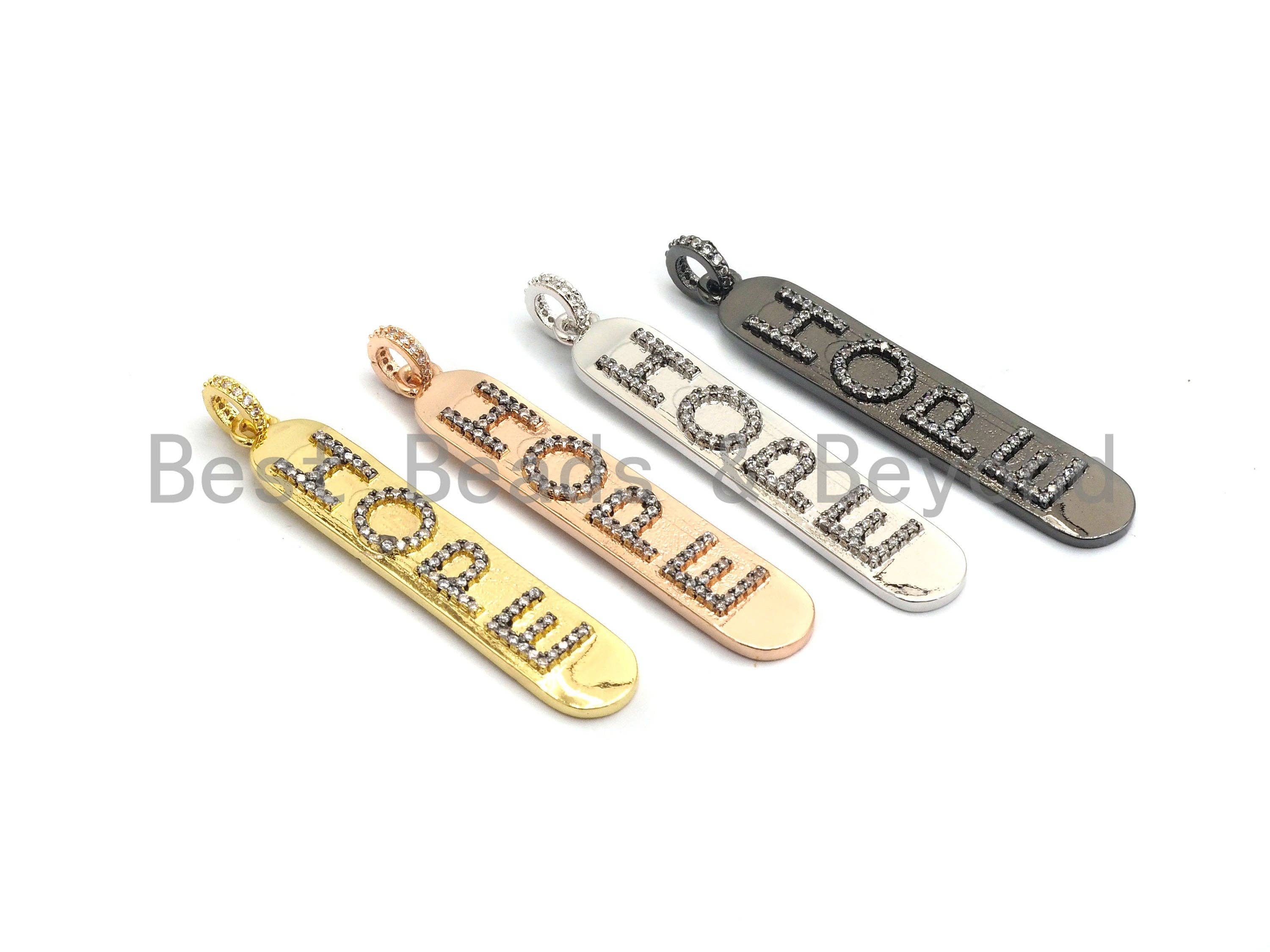 CZ Micro Pave Long Bar HOPE Pendant, Cubic Zirconia Strip Pendant, Micro pave Oval shape pendant, 50x9mm, sku#F647