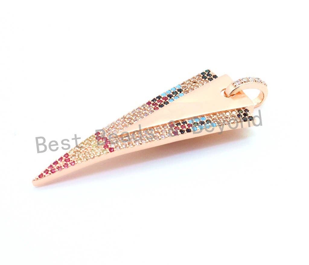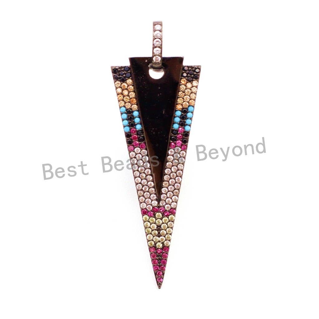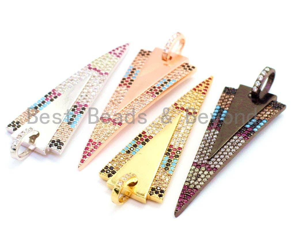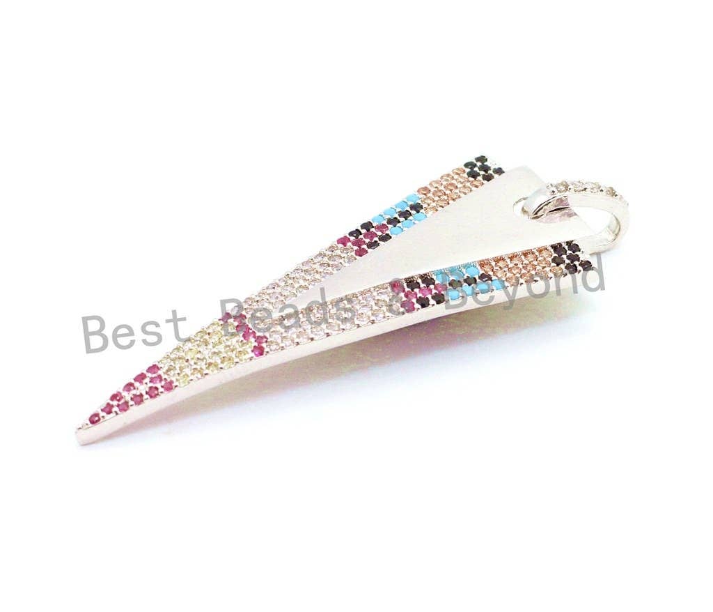 CZ Micro Pave Mixed Color Triangle Pendant with Diamond Bail, Cubic Zirconia Pendant,17x41mm, sku#F9