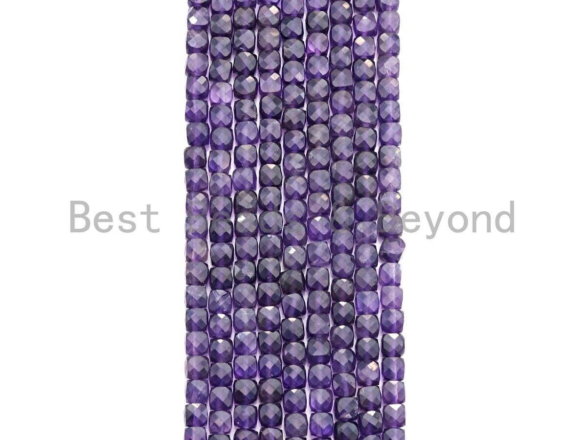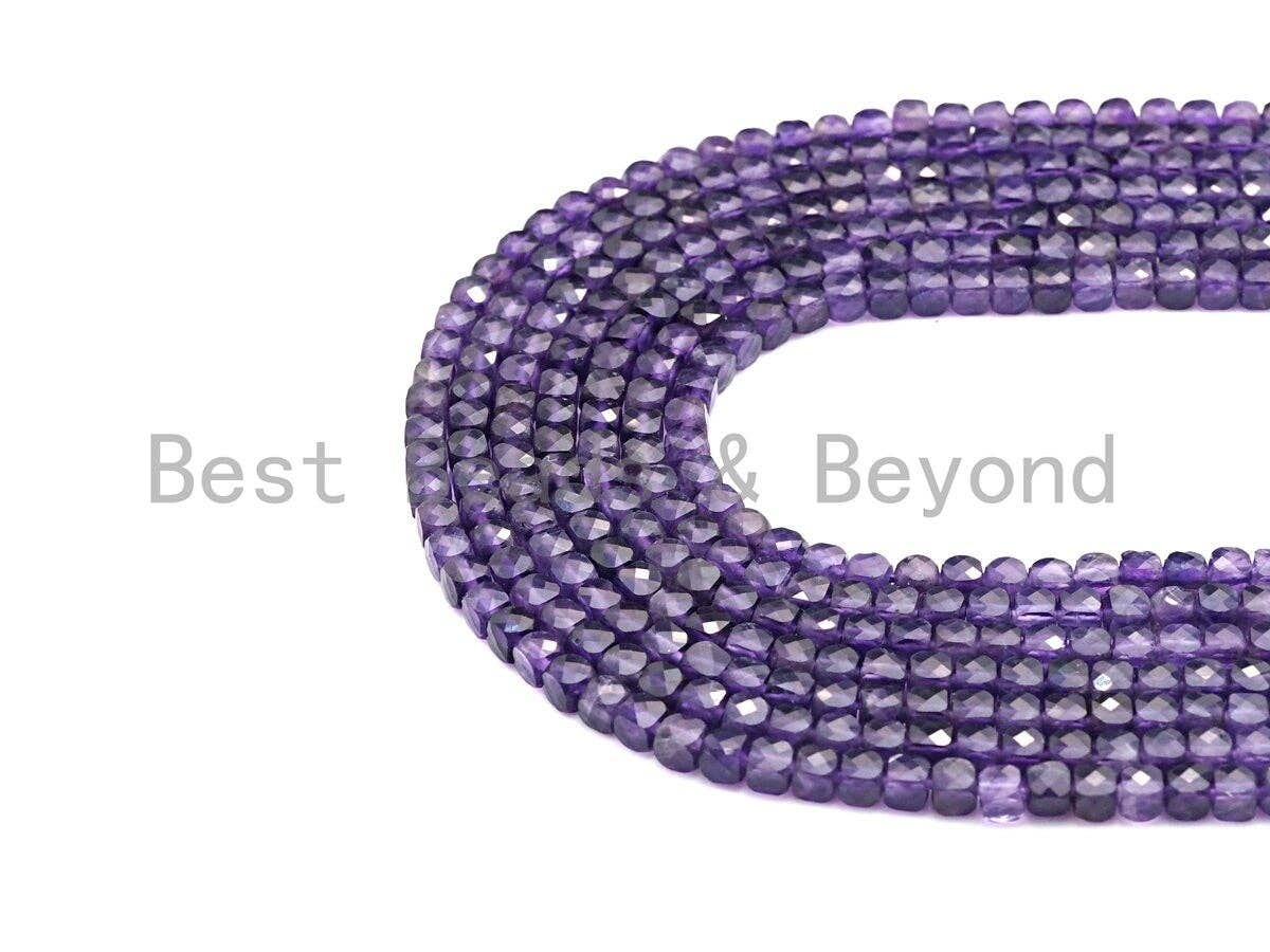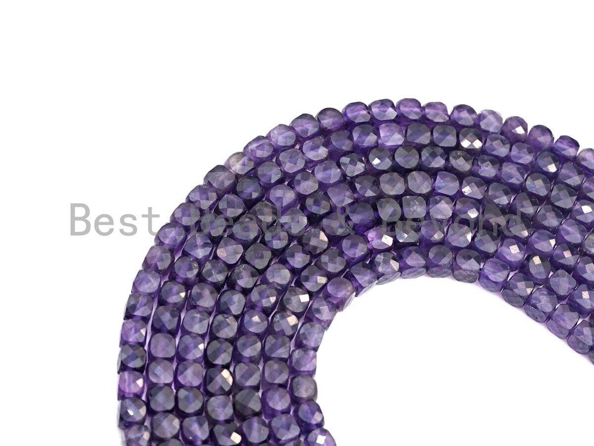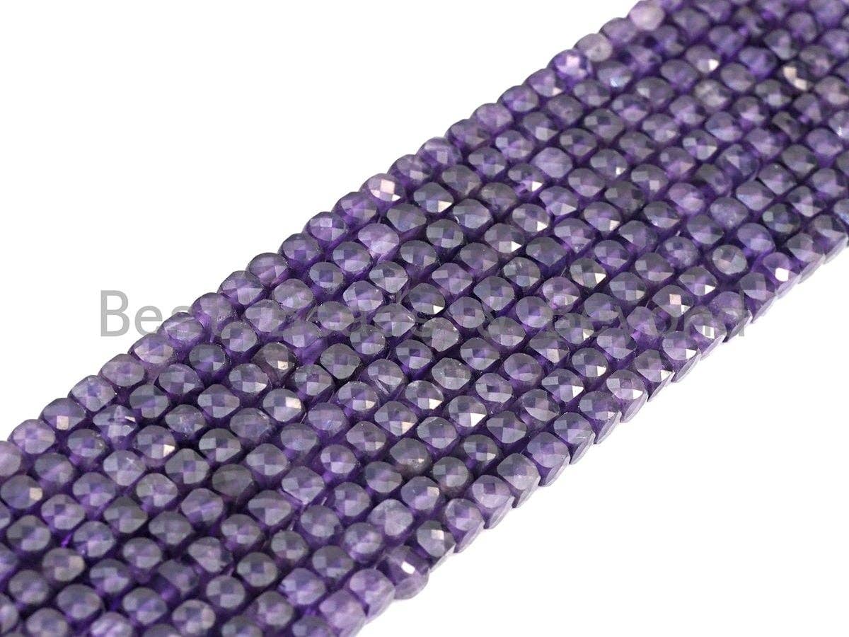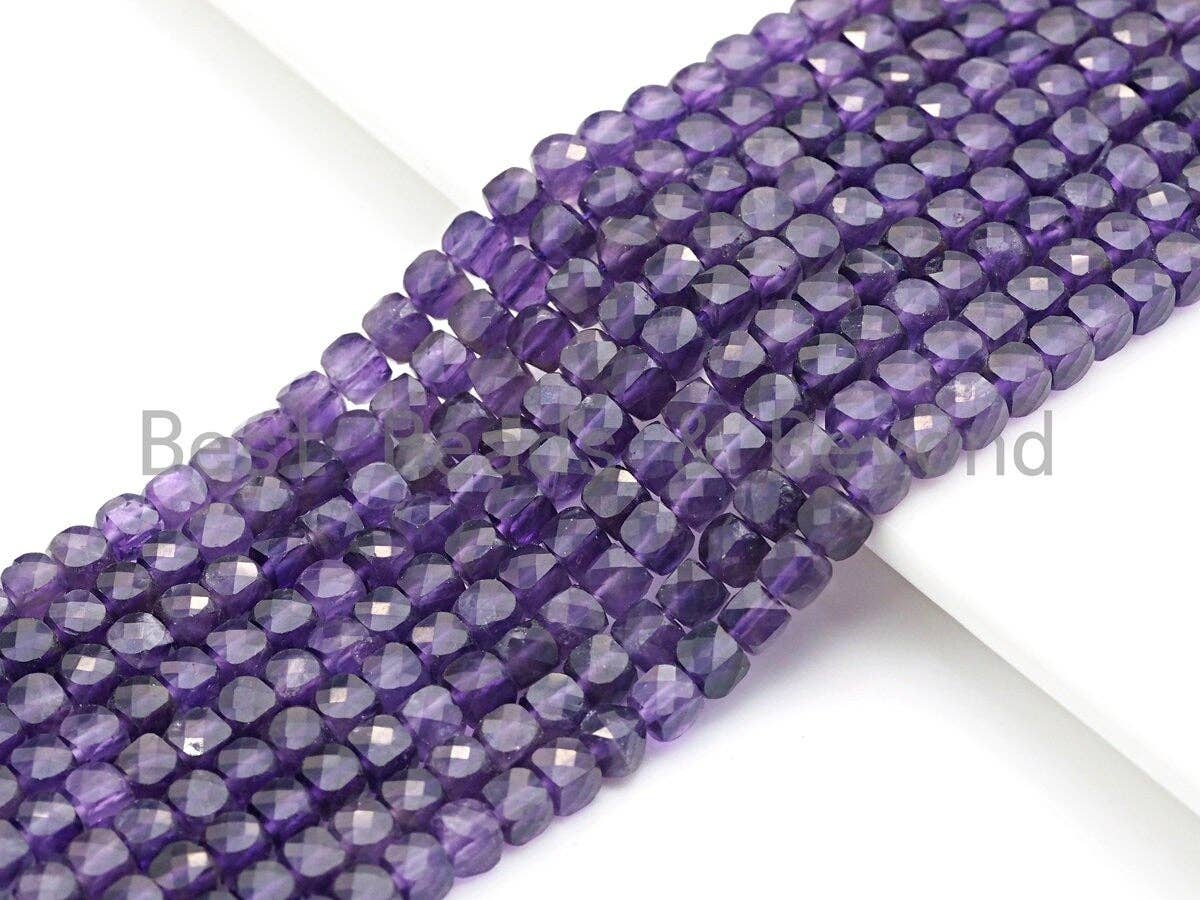 High Quality Natural Amethyst Beads, 4mm Amethyst Faceted Cube Beads, 16" Full strand, sku#U778