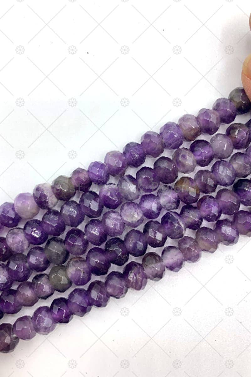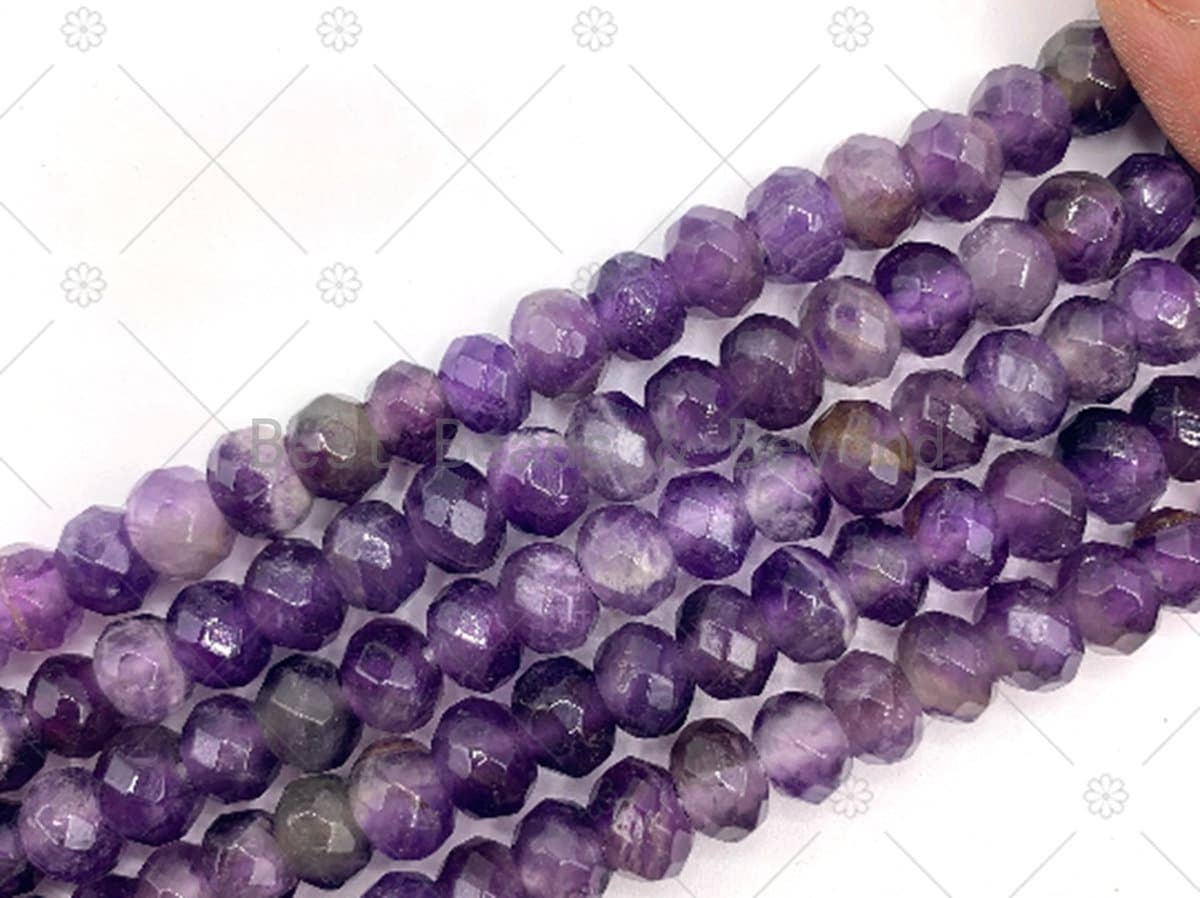 2mm Large Hole Natural Purple Amethyst Beads, 6x10mm Rondelle Faceted Amethyst, Big Hole Beads, 8" Long Strands, Sku#U1241