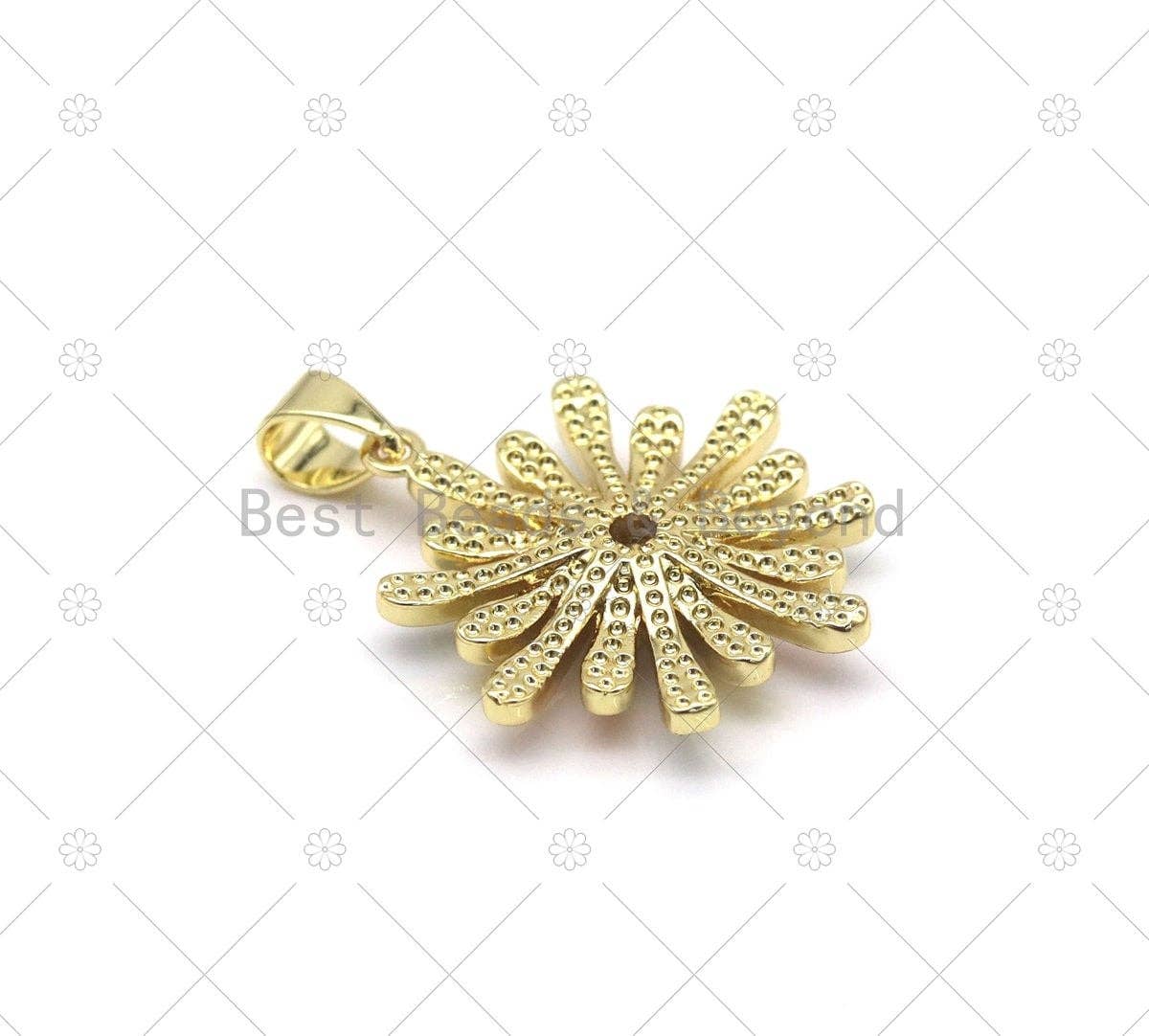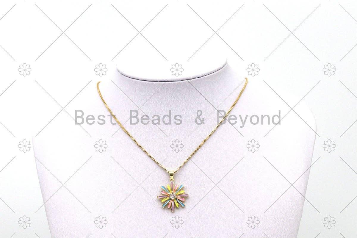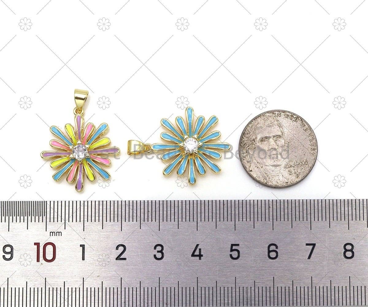 Enamel Colorful Daisy Flower with Big CZ Shape Pendant, 18K Gold Filled Flower Charm, Necklace Bracelet Charm Pendant, Sku#F1447