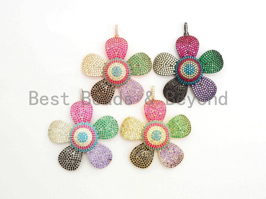 58mm Large CZ Multi-color Micro Pave Plum Flower Focal Pendant,Cubic Zirconia Paved Charm in Gold,Silver, Rose Gold,Gunmetal,sku#F488