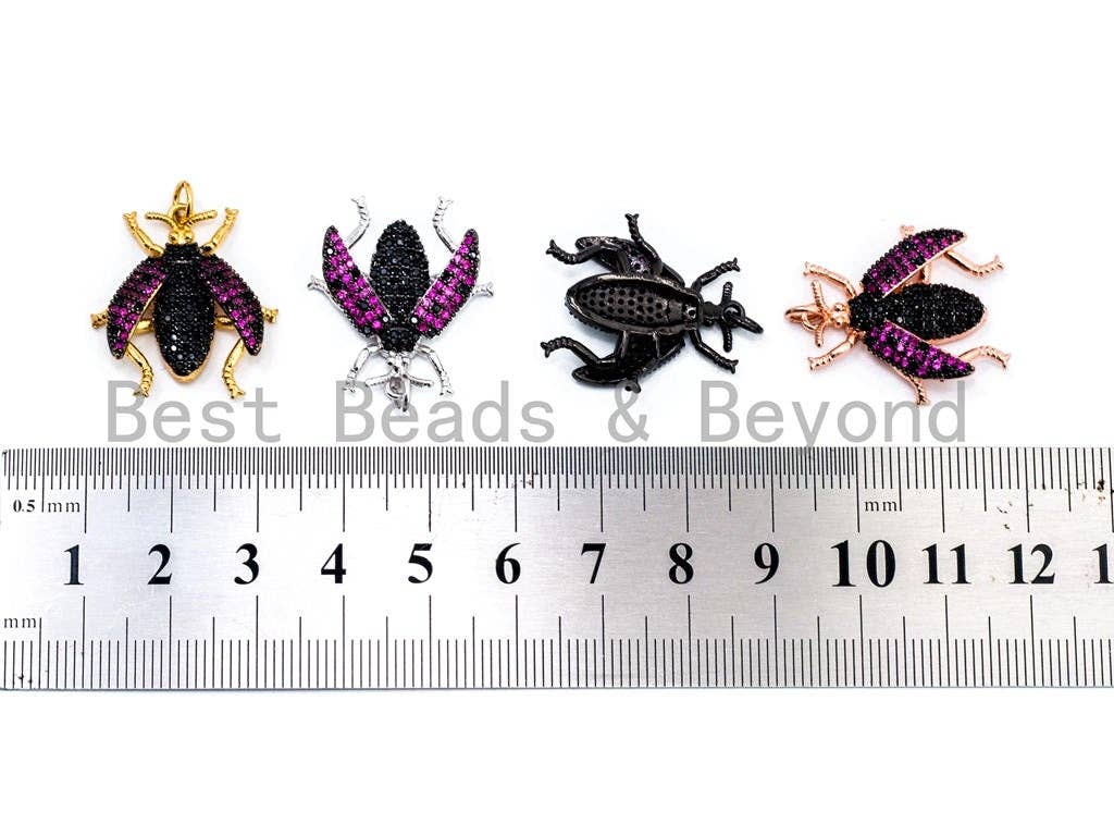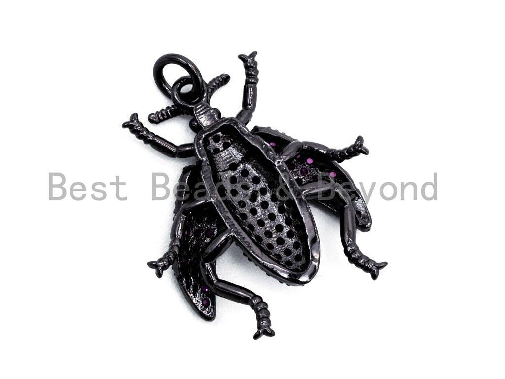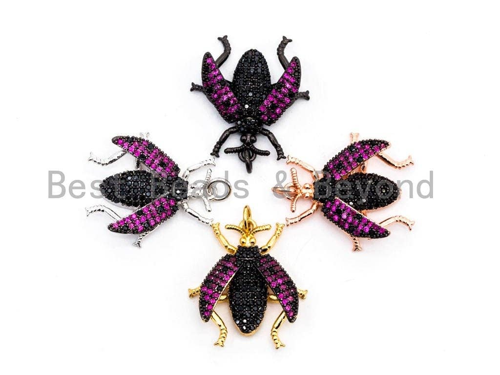 BEETLE Inspired Charm, CZ Micro Pave Fuchsia Insect Pendant, Cubic Zirconia Pendant,Gold/Rose Gold/Silver/Black,23x25x6mm,SKU#F455
