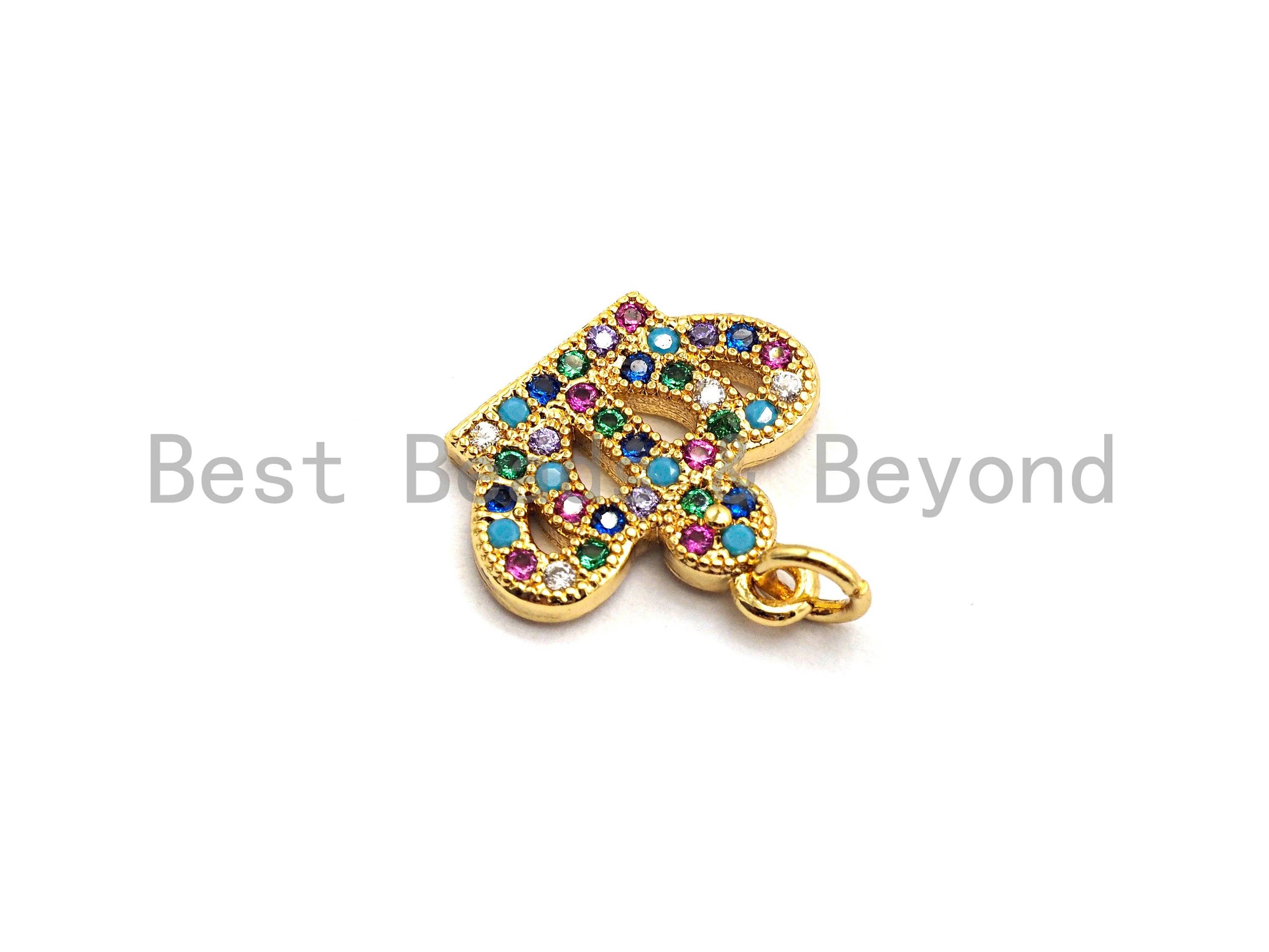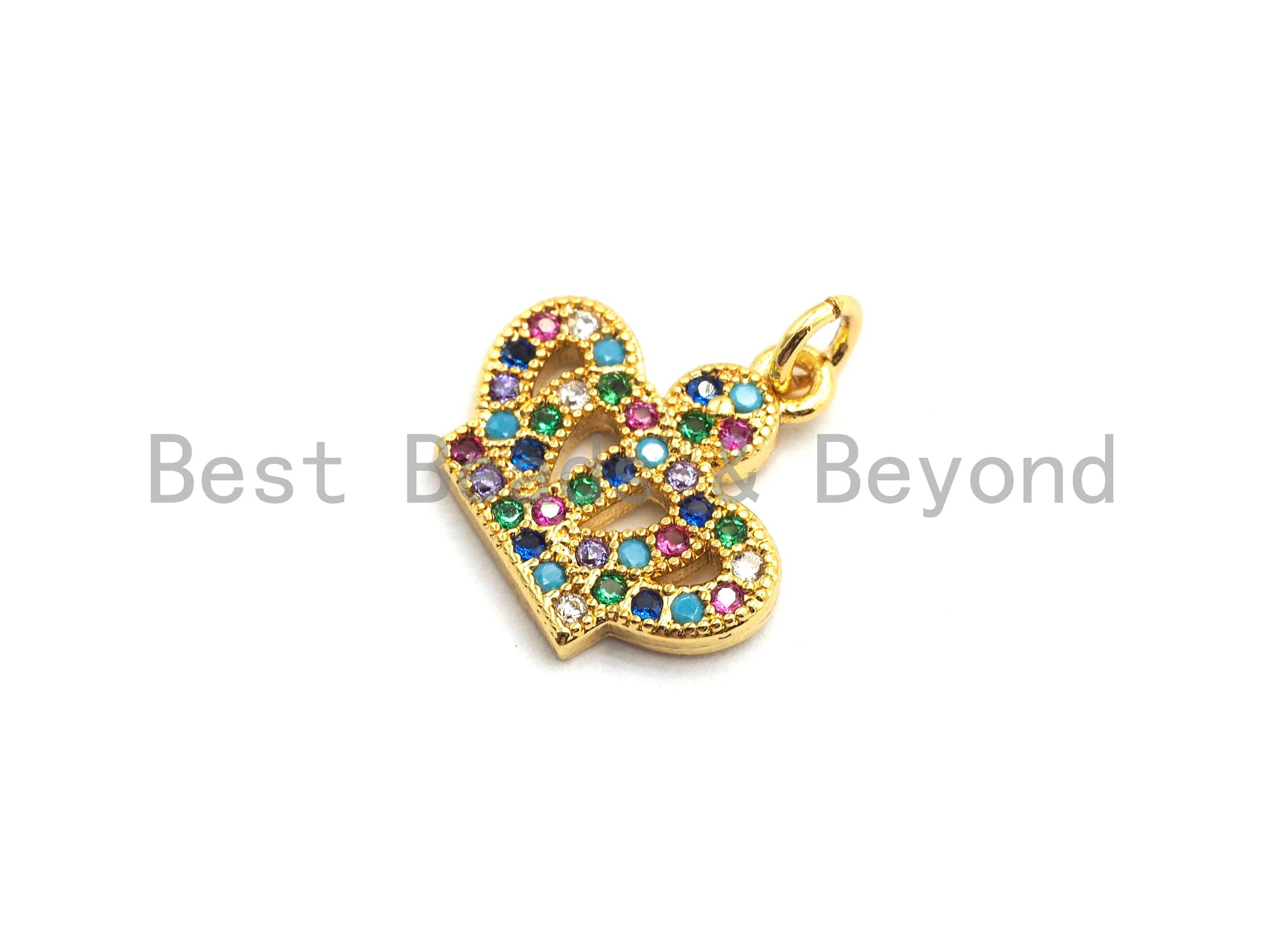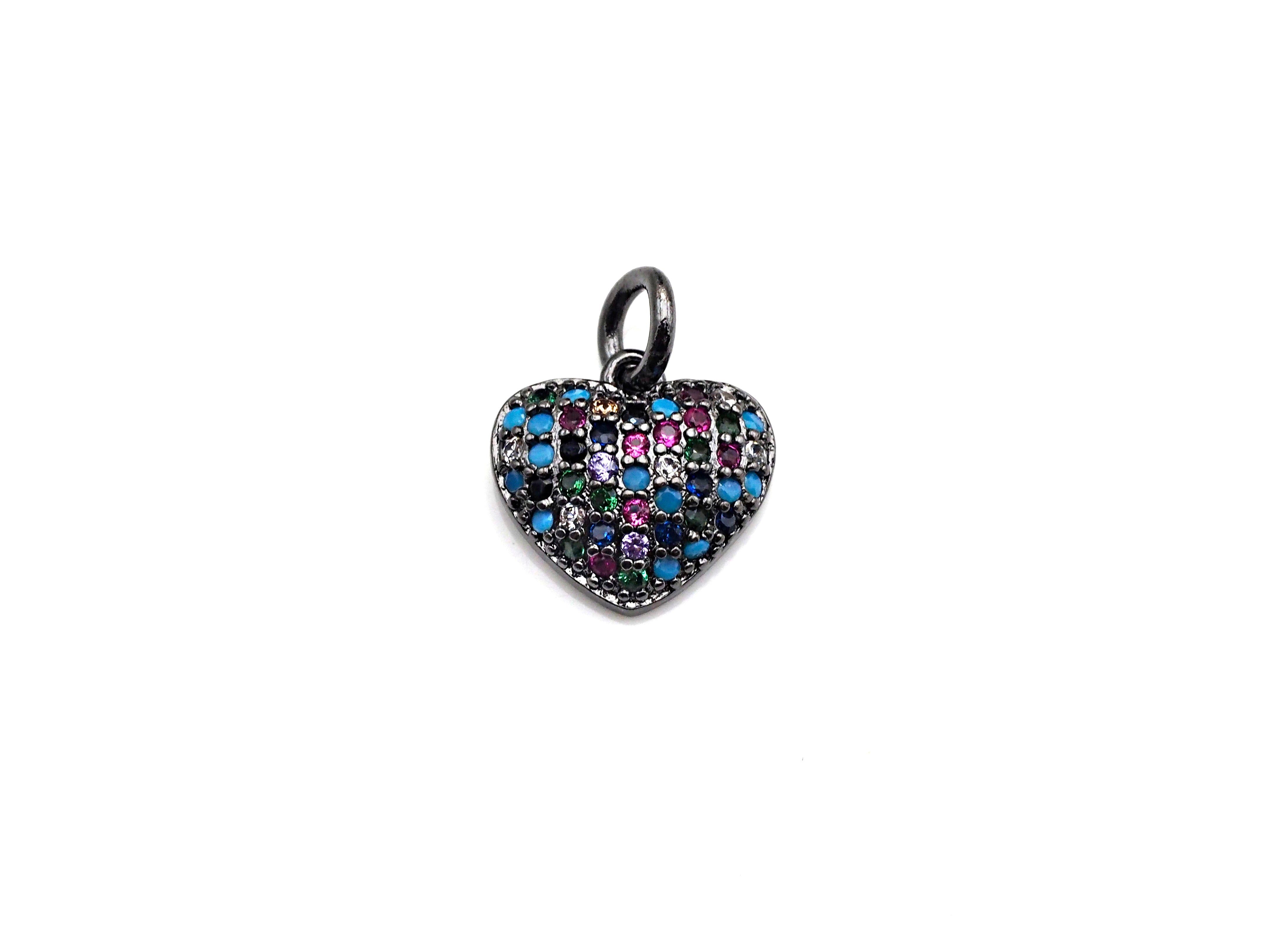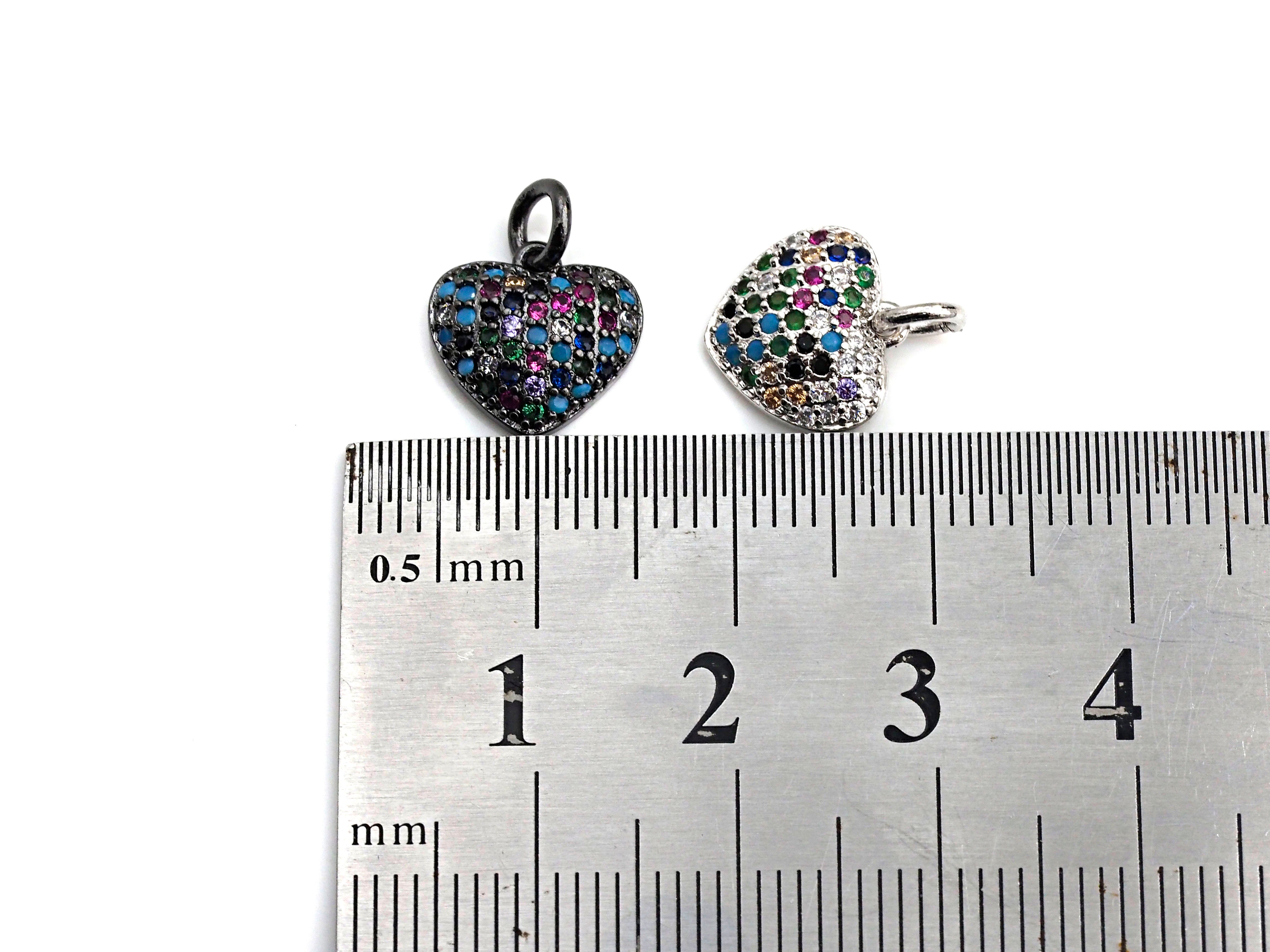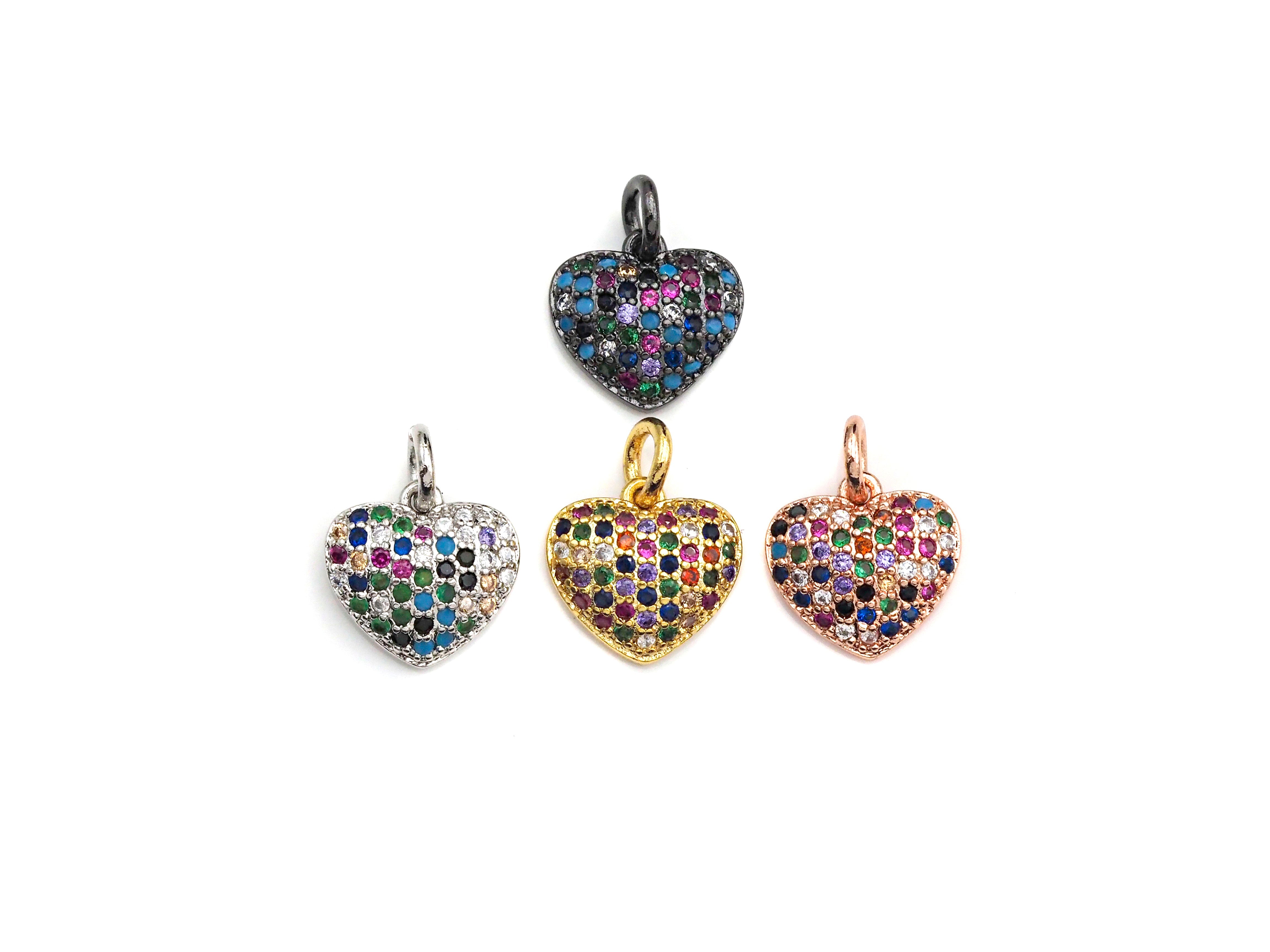Clorful CZ Micro Pave Mini Heart Pendant, Heart Shaped Pave Pendant, Gold/Rose Gold/Silver/Gunmetal plated, 10mm, Sku#FH40