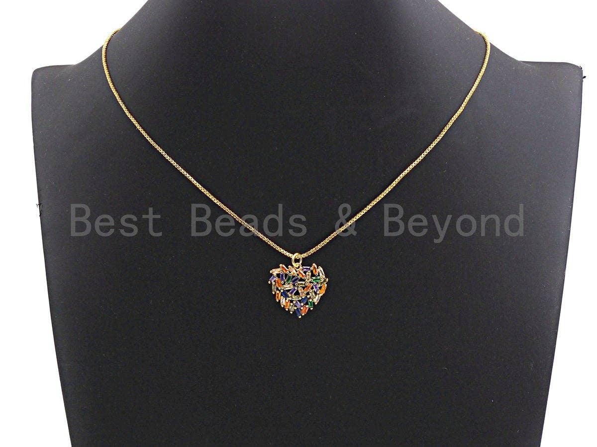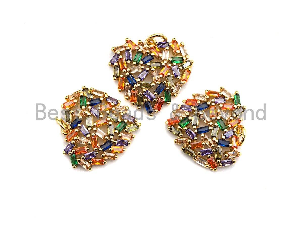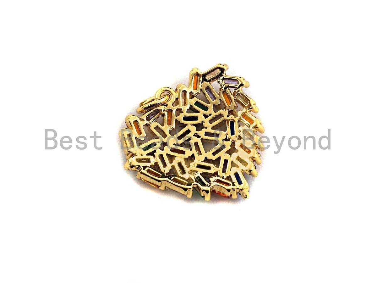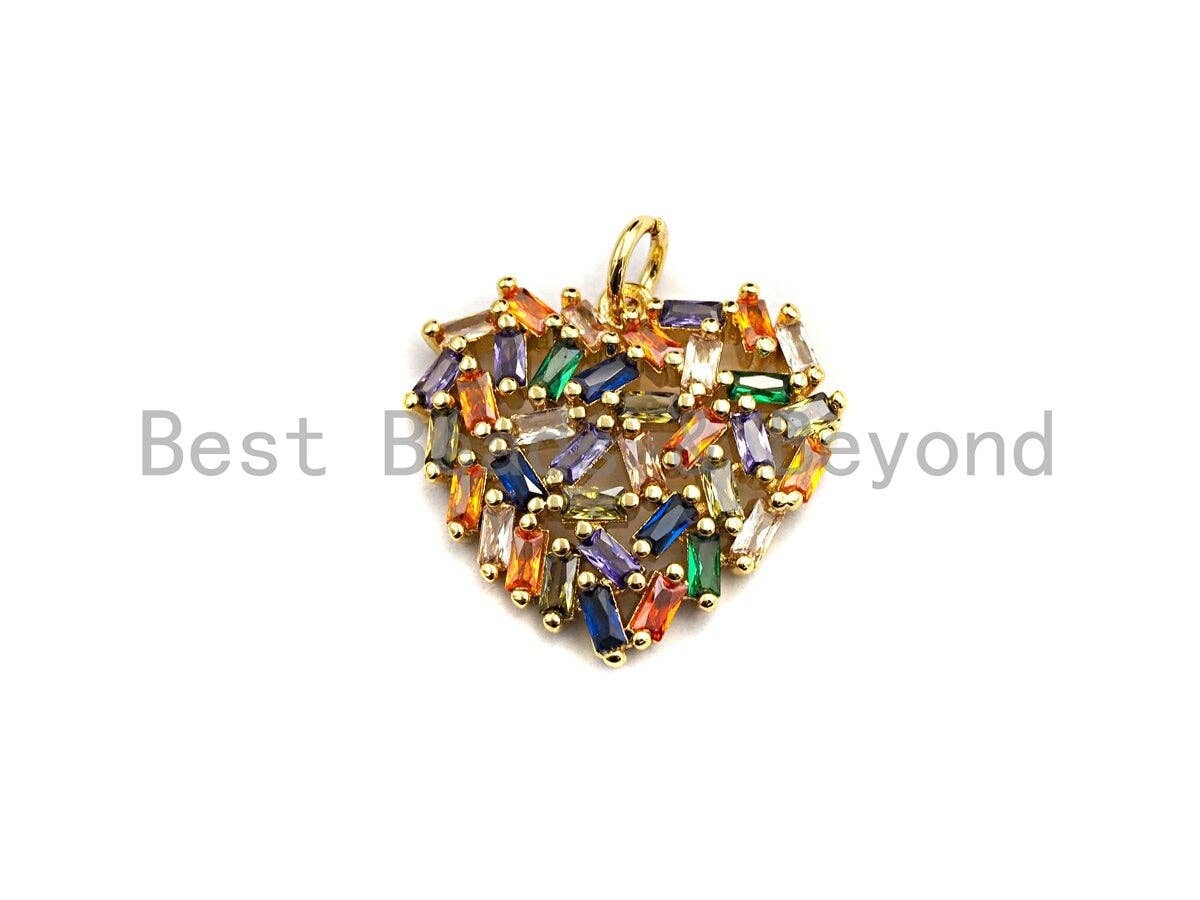 Colorful Baguette CZ Micro Pave Cluster Heart Shape Pendant, Cz Pave Bracelet Necklace Pendant in Gold Finish,21x19mm, sku#F908
