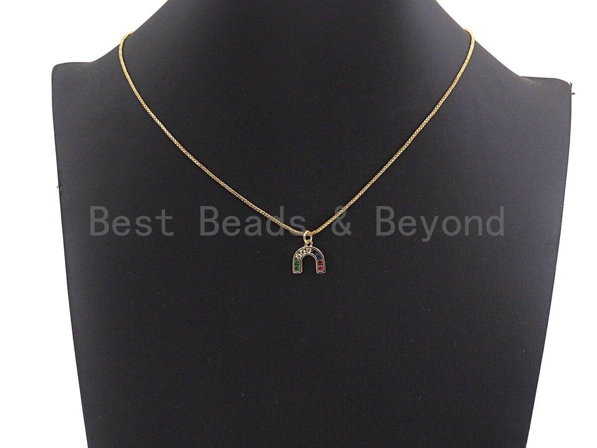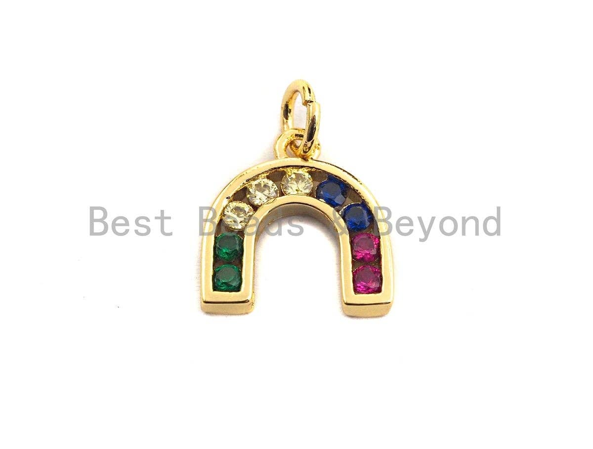 CZ Colorful Micro Pave Baguette Horseshoe Shape Charm, Reversed U Shape Pave Pendant, Gold plated, 12x12mm, Sku#F955