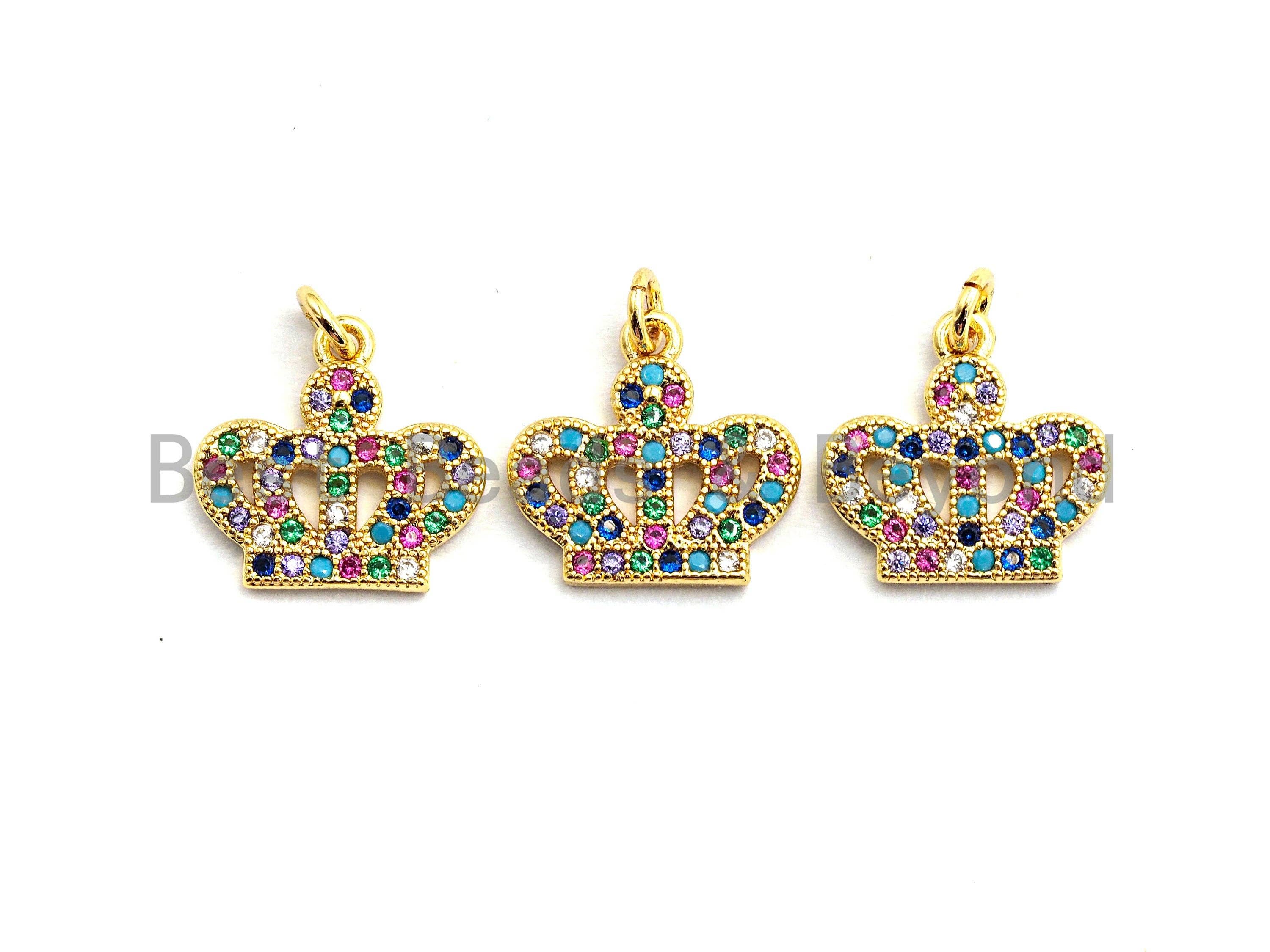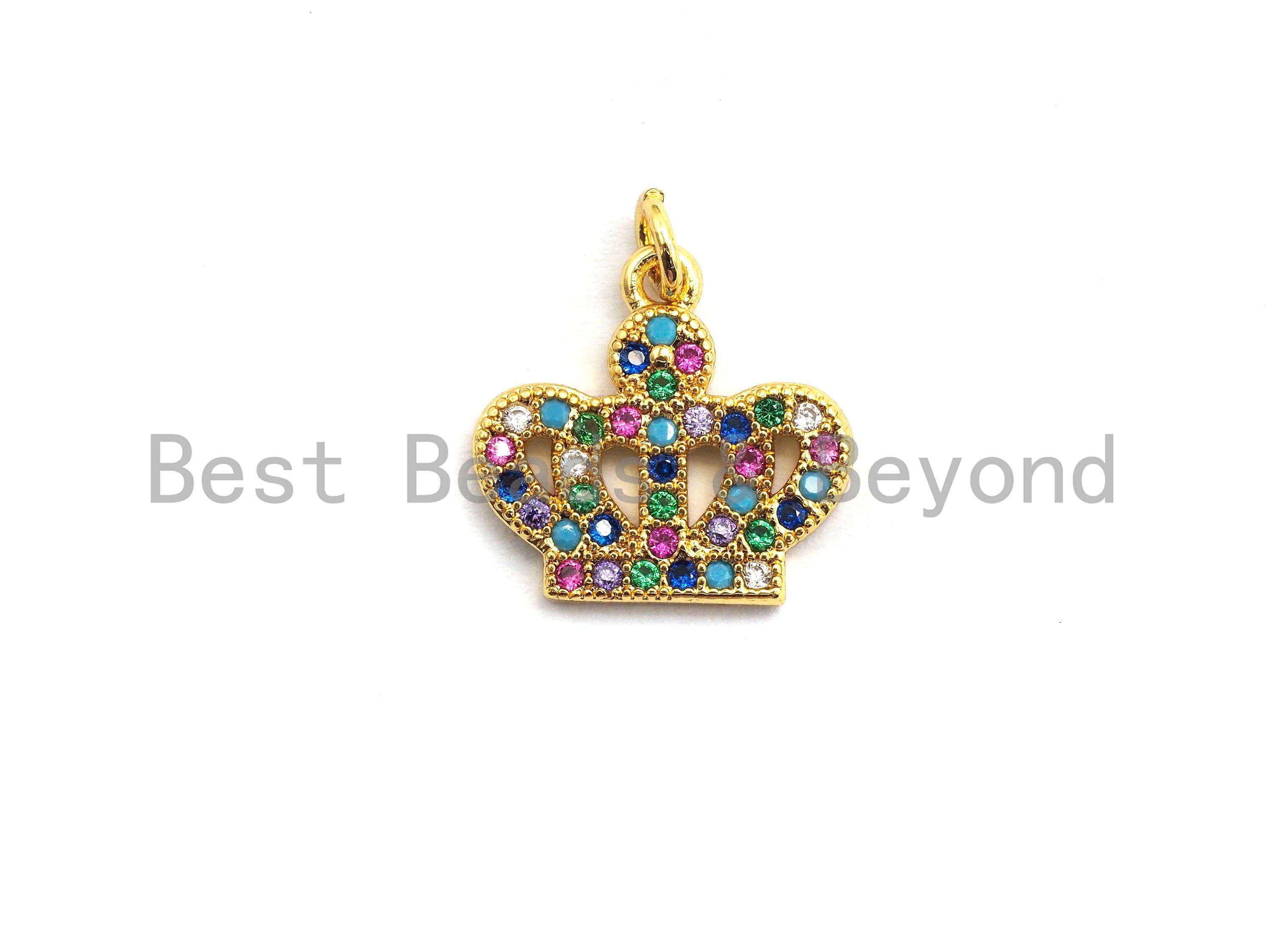 CZ Colorful Micro Pave Royal Crown Charm Pendant, Crown Shaped Pave Pendant, Gold plated, 17x15mm, Sku#F837