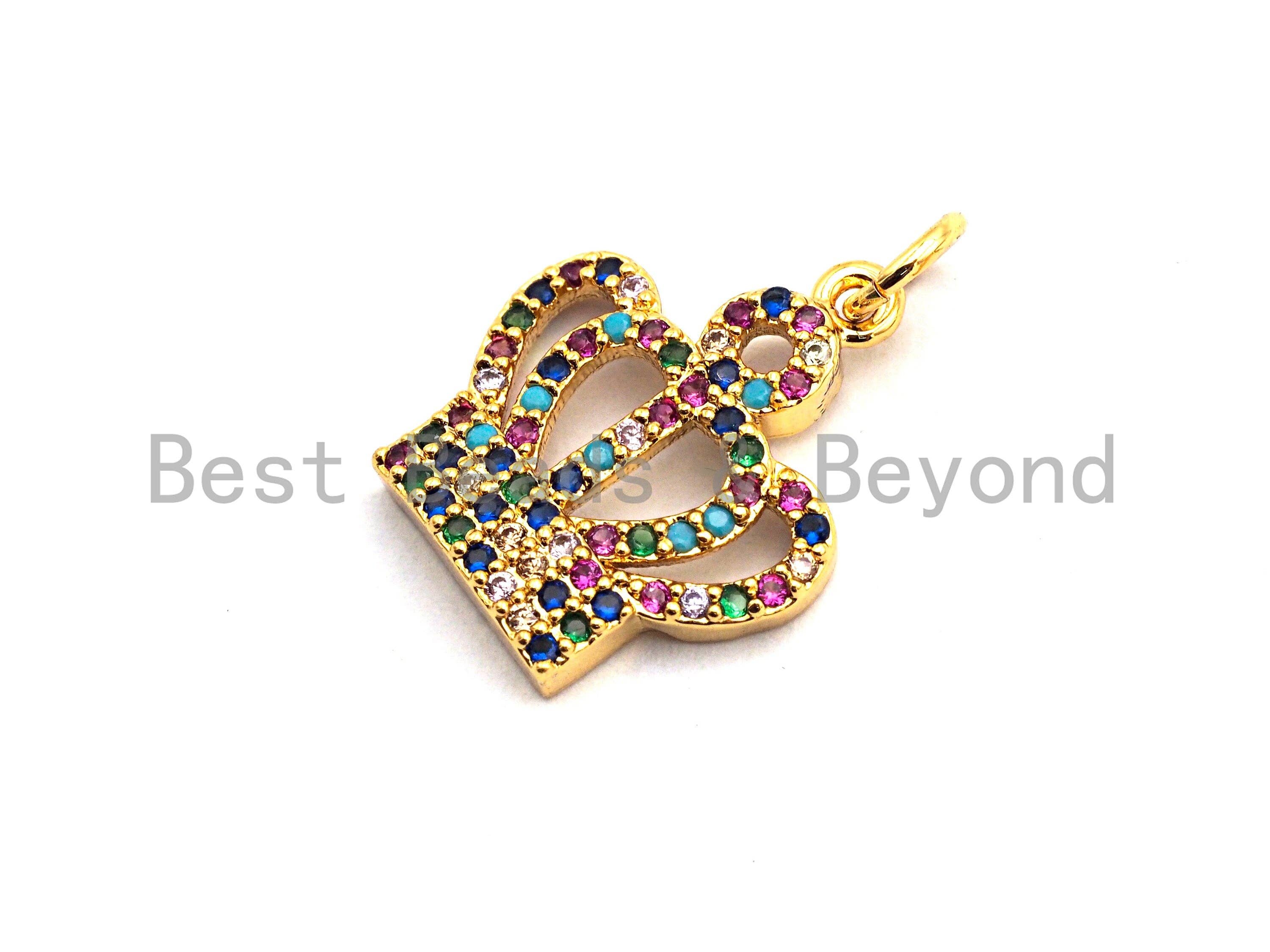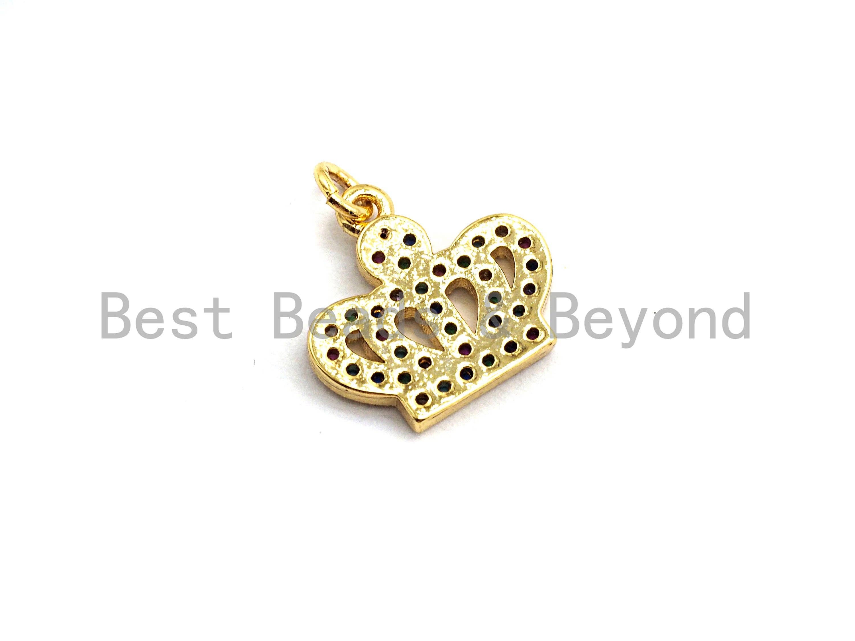 CZ Colorful Micro Pave Crown Pendant, Crown Shaped Pave Pendant, Gold plated, 15x13mm, Sku#F752
