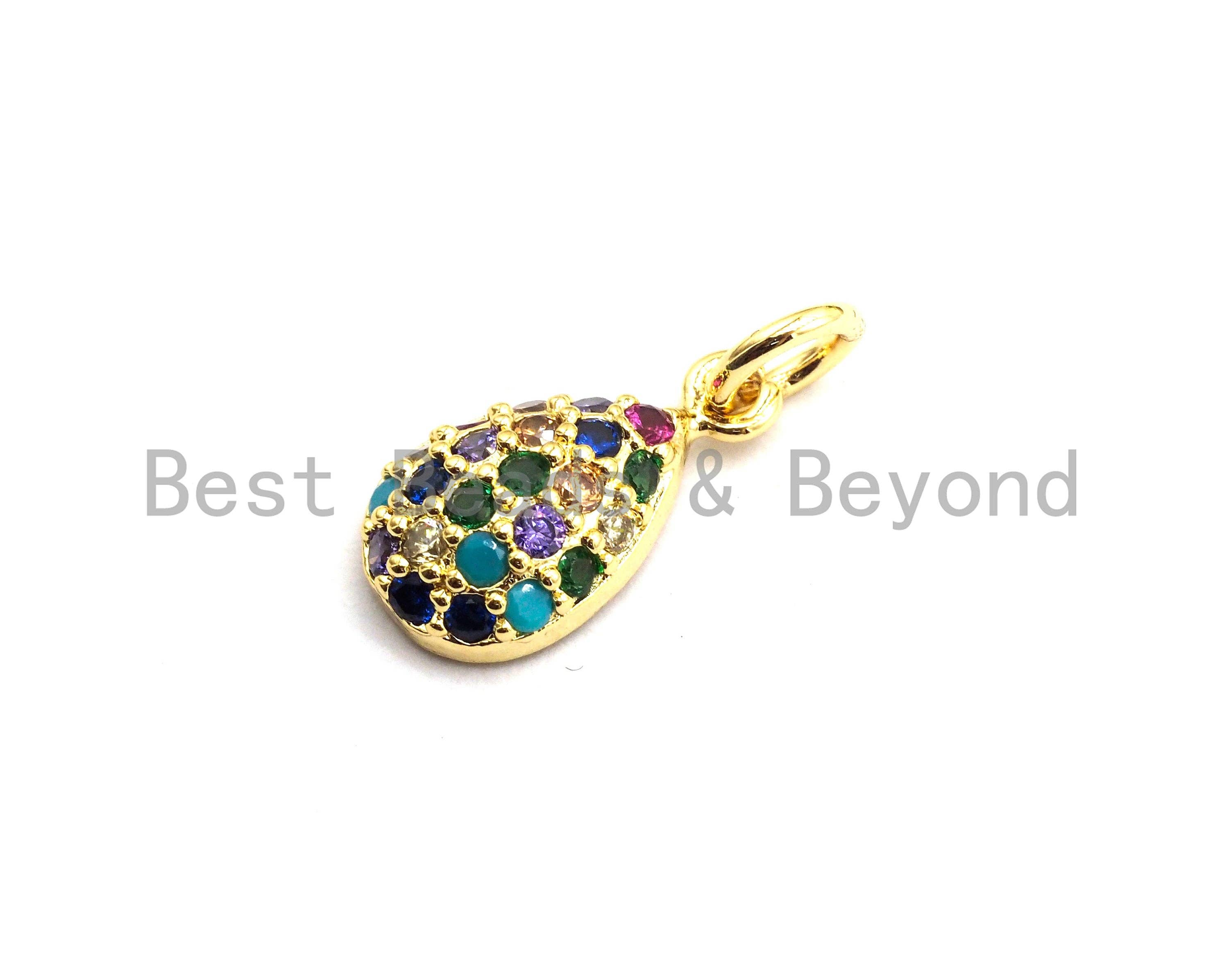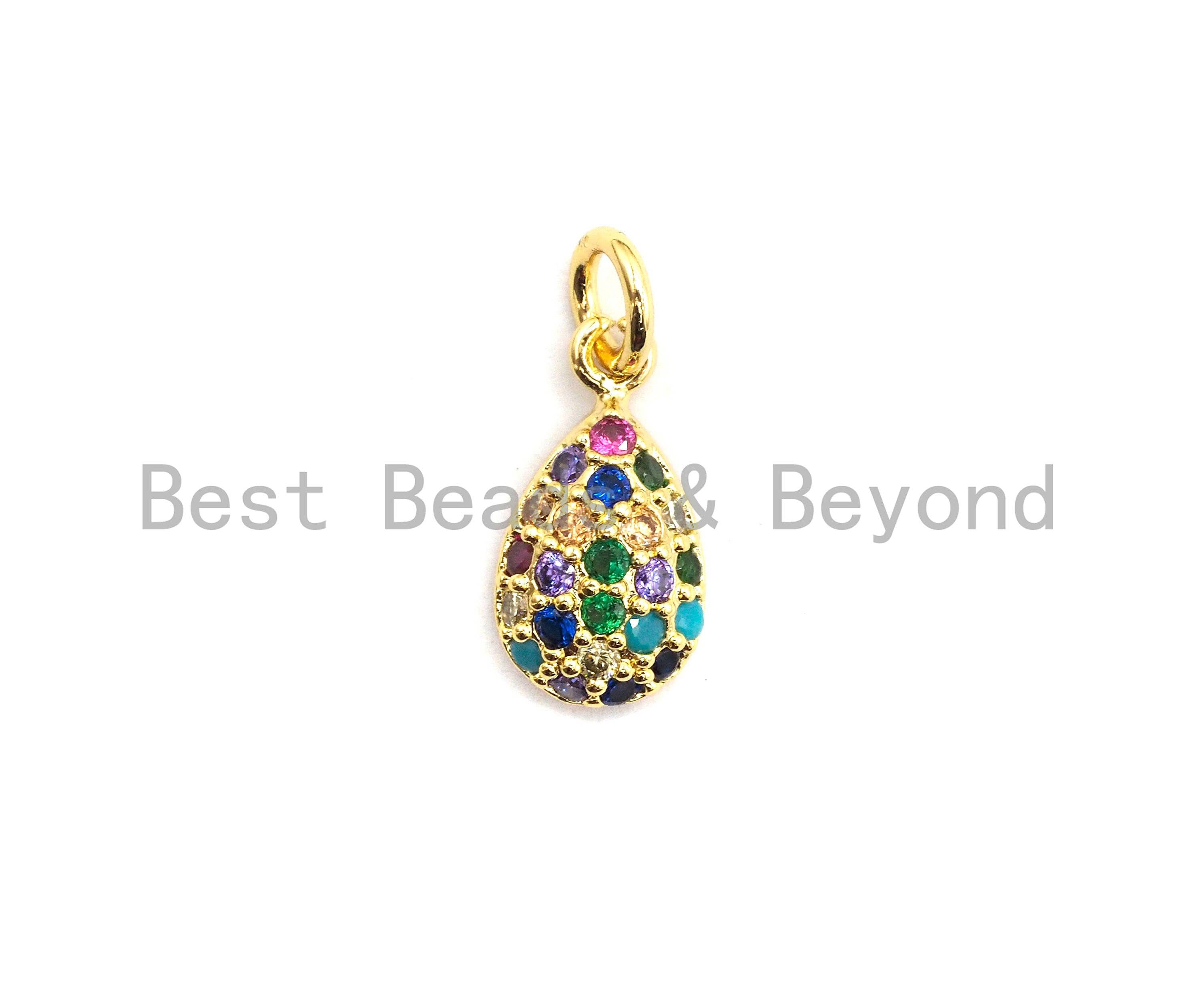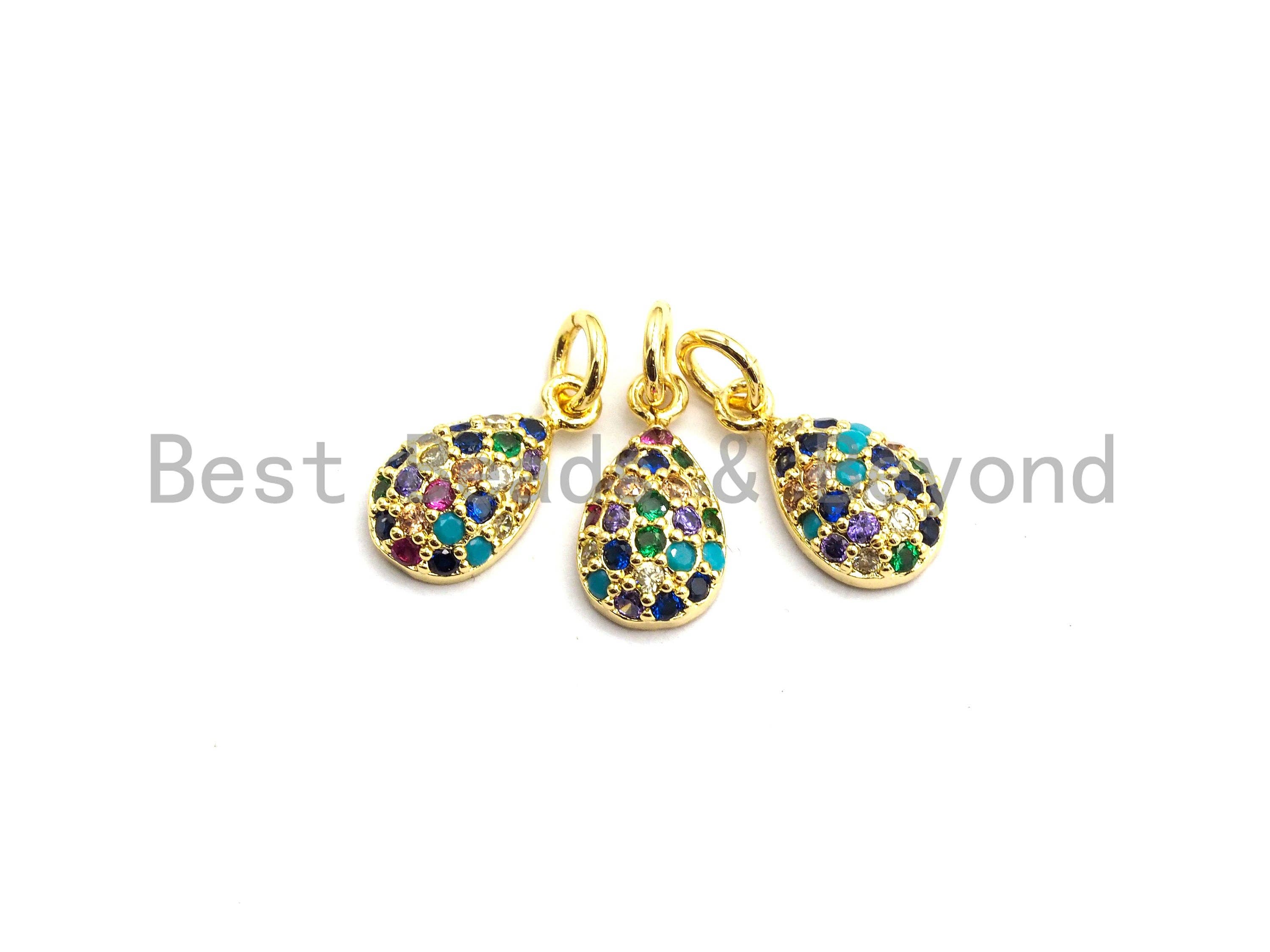 CZ Colorful Micro Pave Teardrop Pendant, Teardrop Shaped Pave Pendant, Gold plated, 7x13mm, Sku#F740