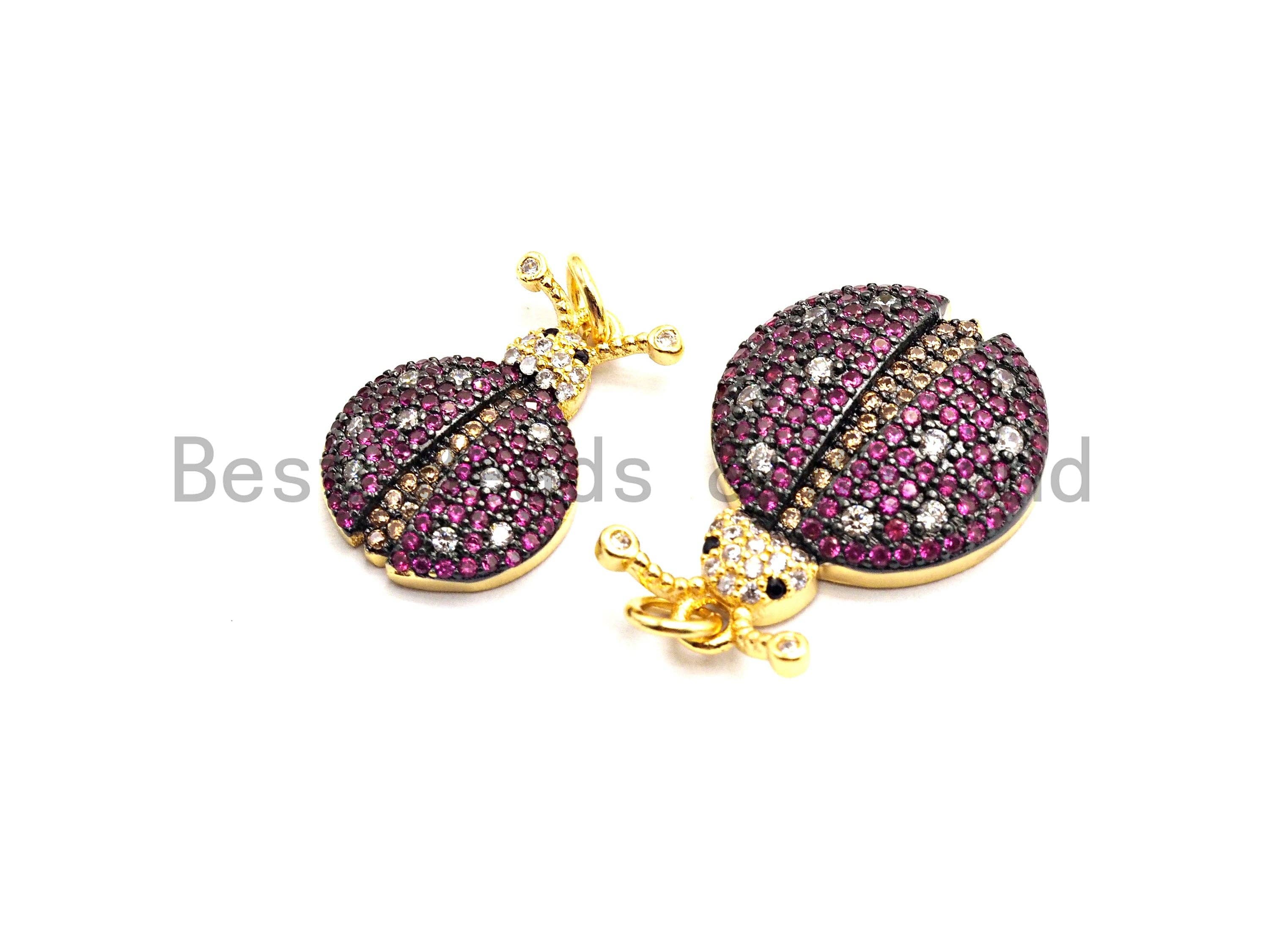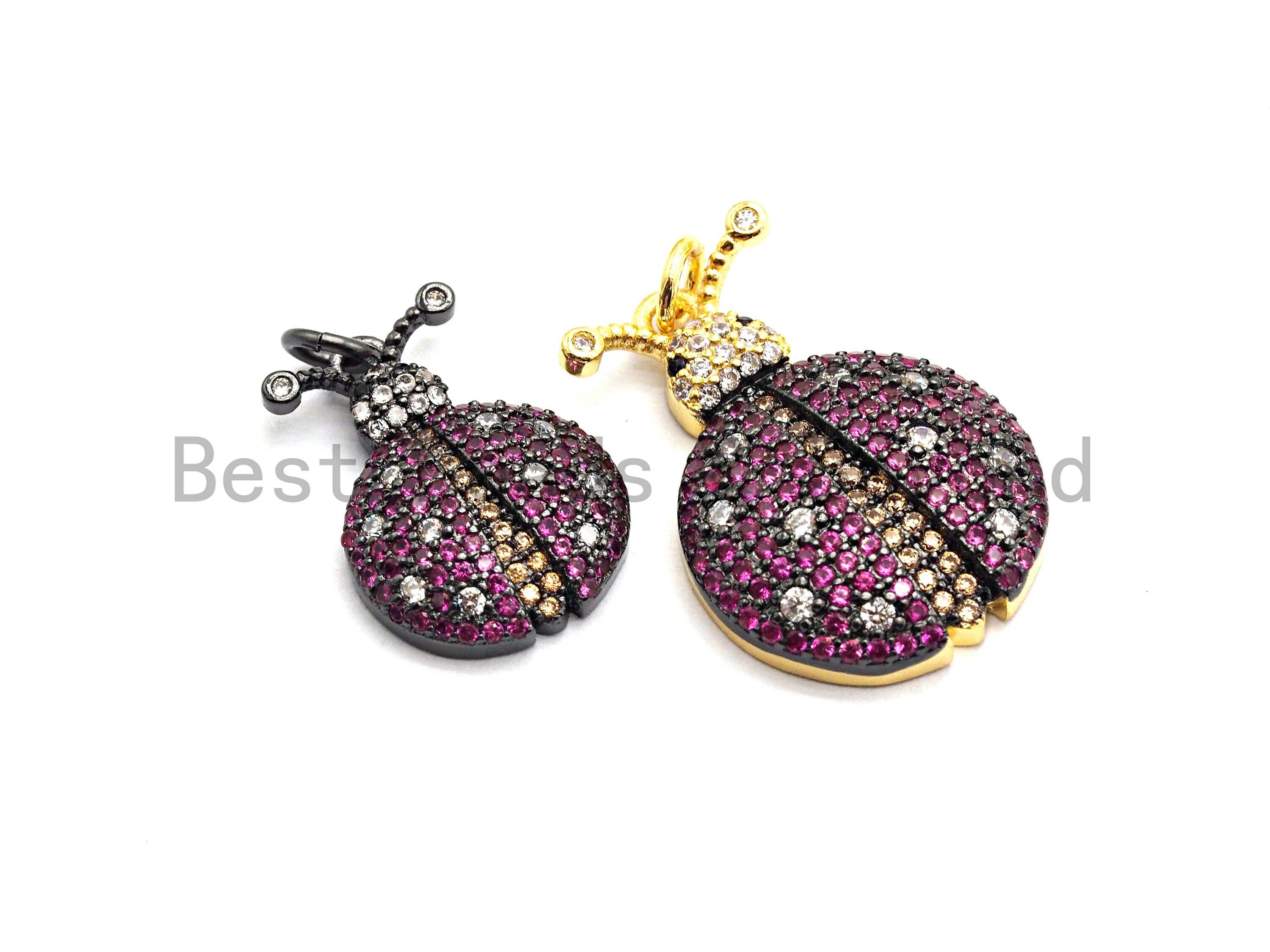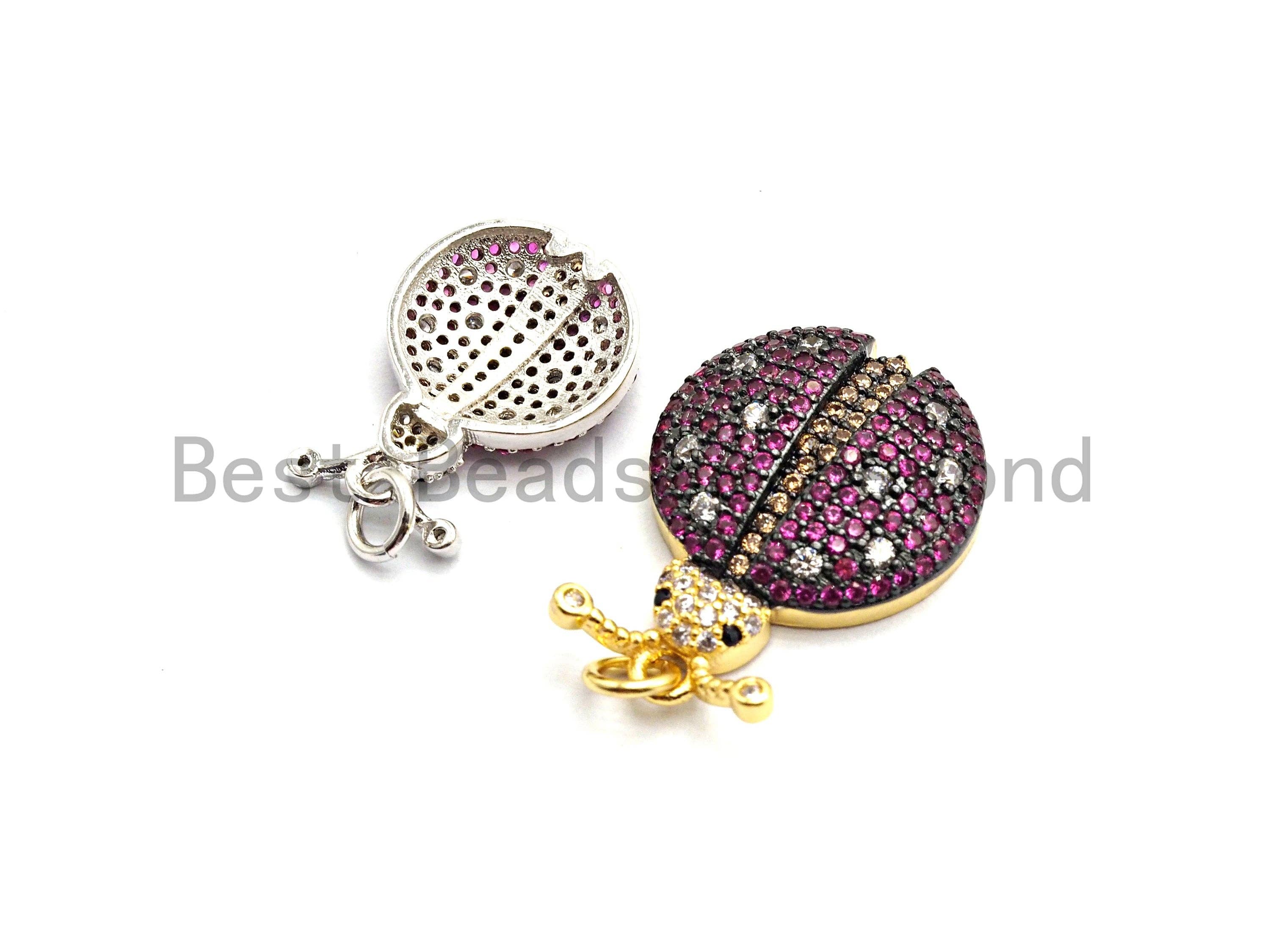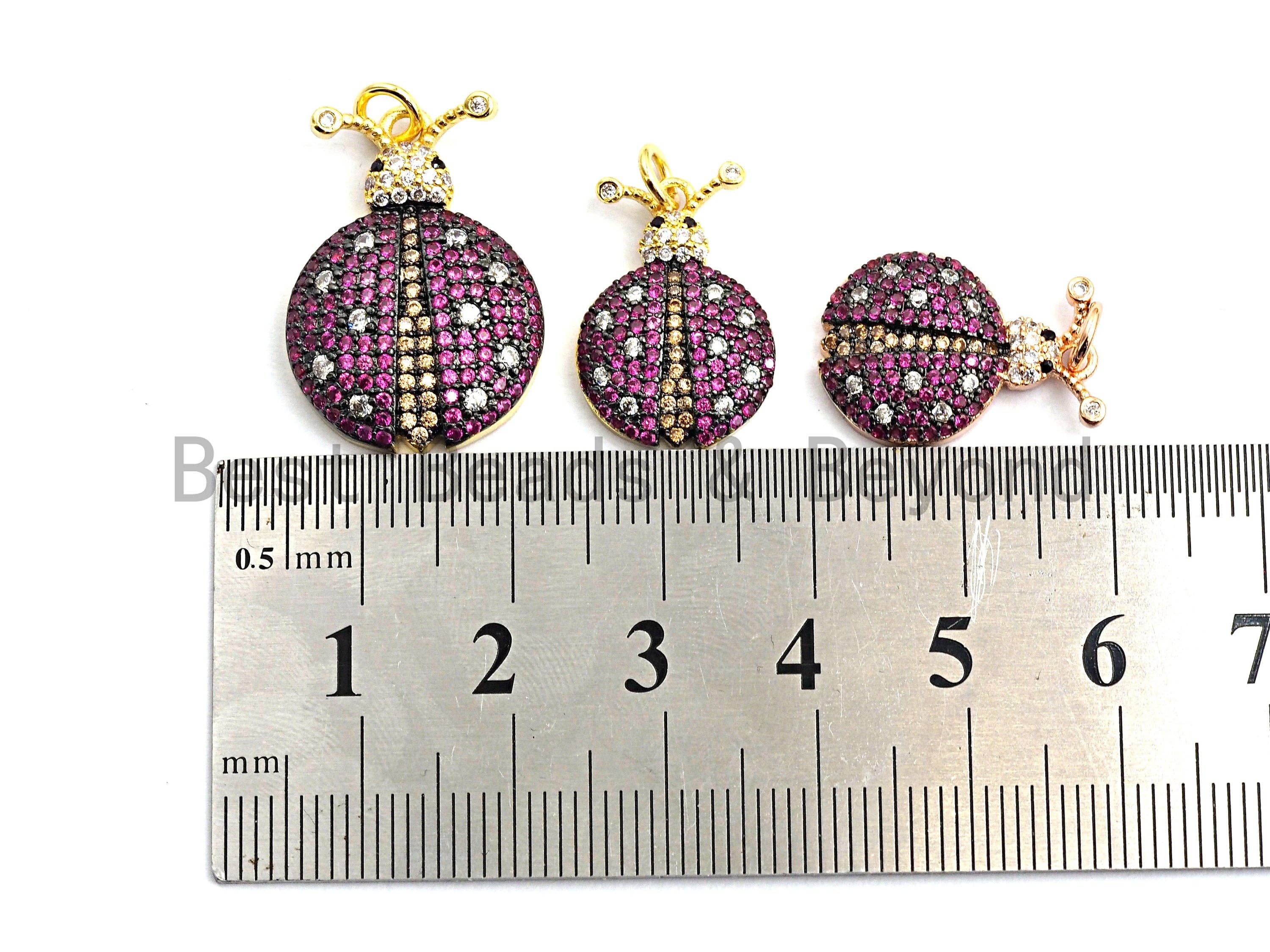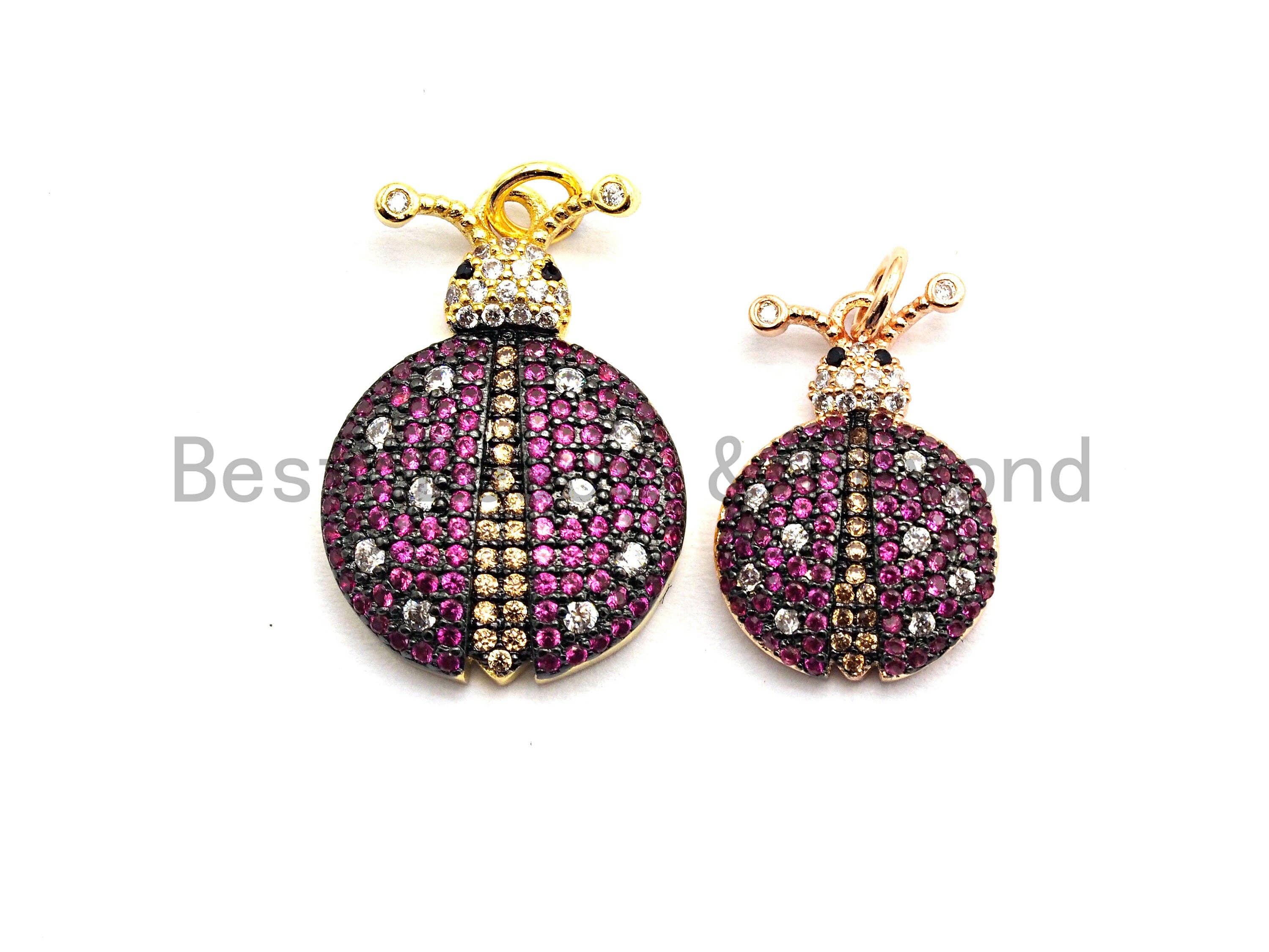 19mm CZ Fuchsia Color Micro Pave Ladybird Pendant,CZ Paved Ladybird Charm Gold,Silver,Rose Gold,Gunmetal plated,sku#F748