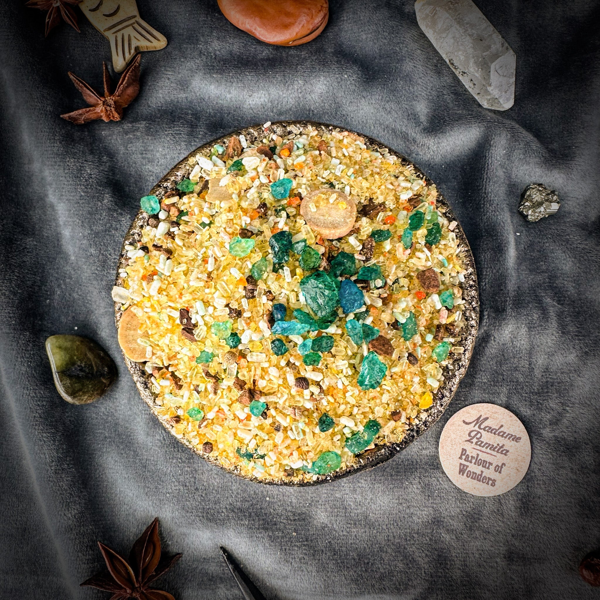 Madame Pamita Bath Crystals contain the highest quality ingredients, the same all-natural ingredients that rootworkers used 100 years ago. The recipe includes all-natural sea salt, Epsom salts, organic or wildharvested herbs and botanicals, and organic essential oils.