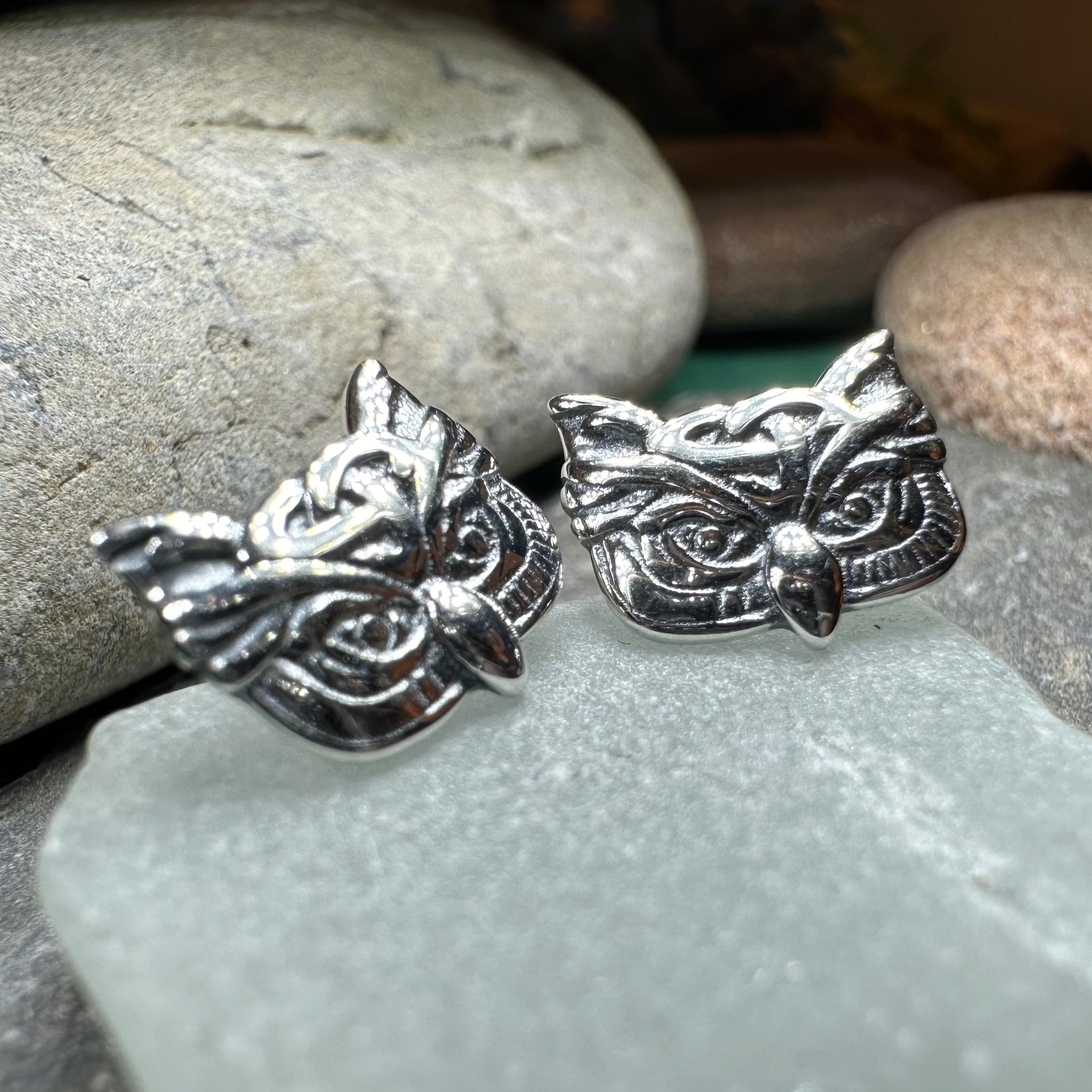 Experience the enchantment of our Celtic-inspired Hoot Owl Stud Earrings, crafted with polished sterling silver.