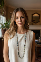 A long, beaded necklace is so versitile! You can wear it with almost anything - it makes a jeans outfit classier and a dressy outfit shine. Layering two or three long necklaces together is a classic look - and fun! There are so many ways to wear a long necklace - you can layer, knot it, loop it. It gives you so many options.