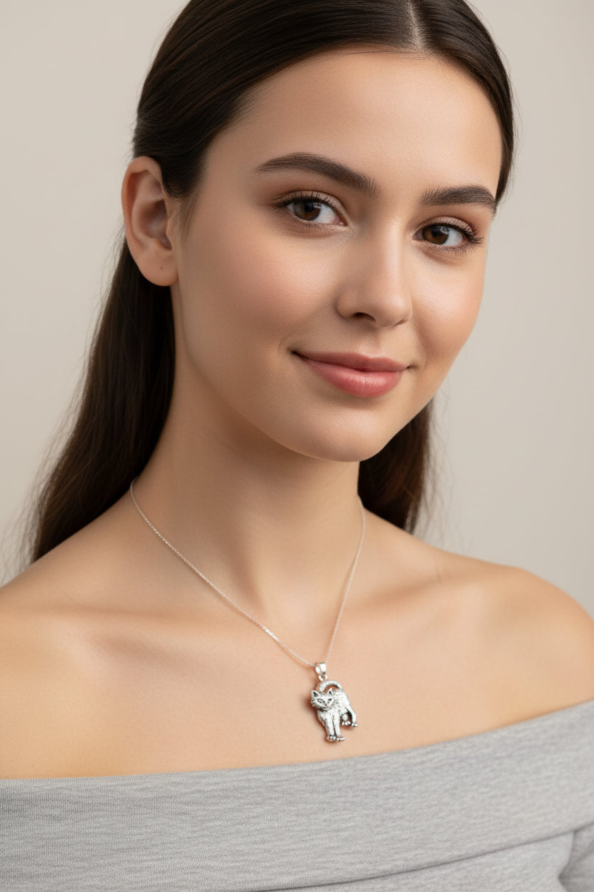 Strikingly detailed in solid sterling silver, it comes on a sterling silver chain. Just "purrfect" for any cat lover.