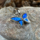 Solid Sterling Silver petite butterfly pendant with created opal inlay in your choice of colors.