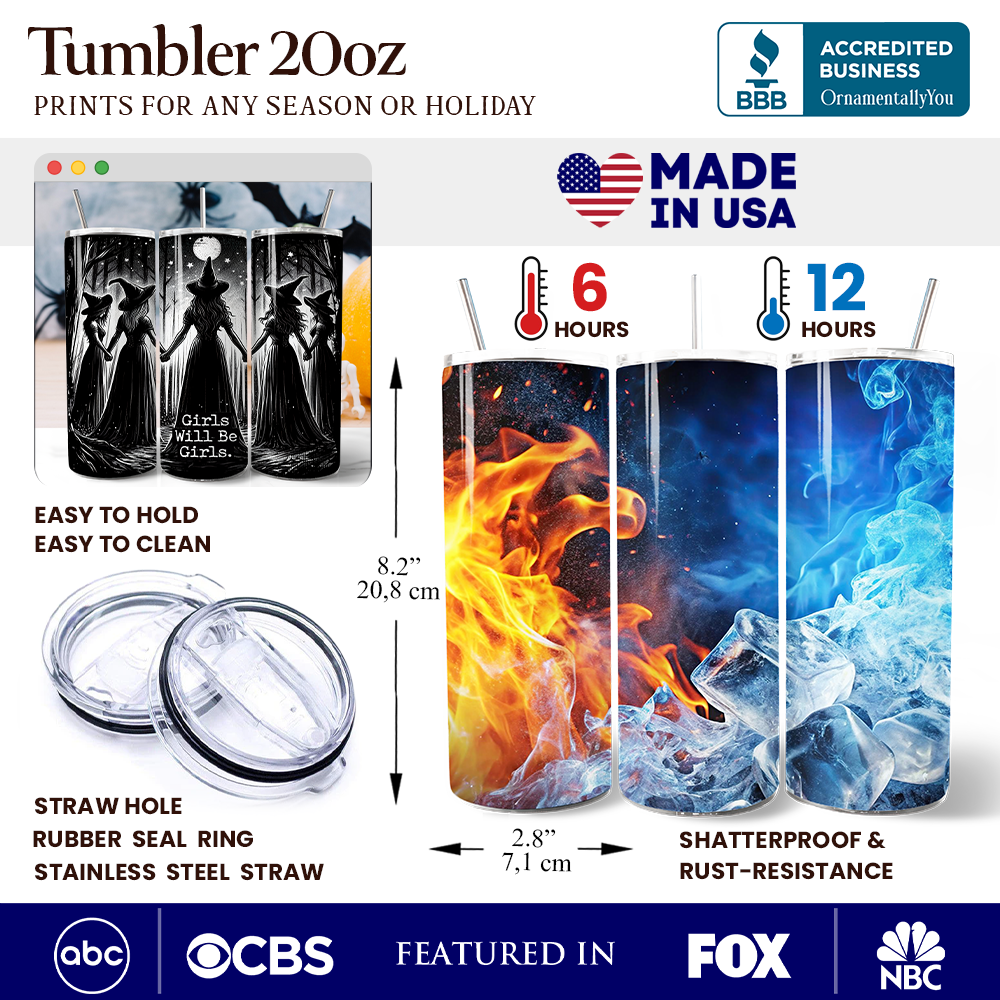 Girls Will Be Girls 20oz Personalized Tumbler With Lid and Stainless Steel Straw, Empowered Women Spooky Witch Coven Gift Cup