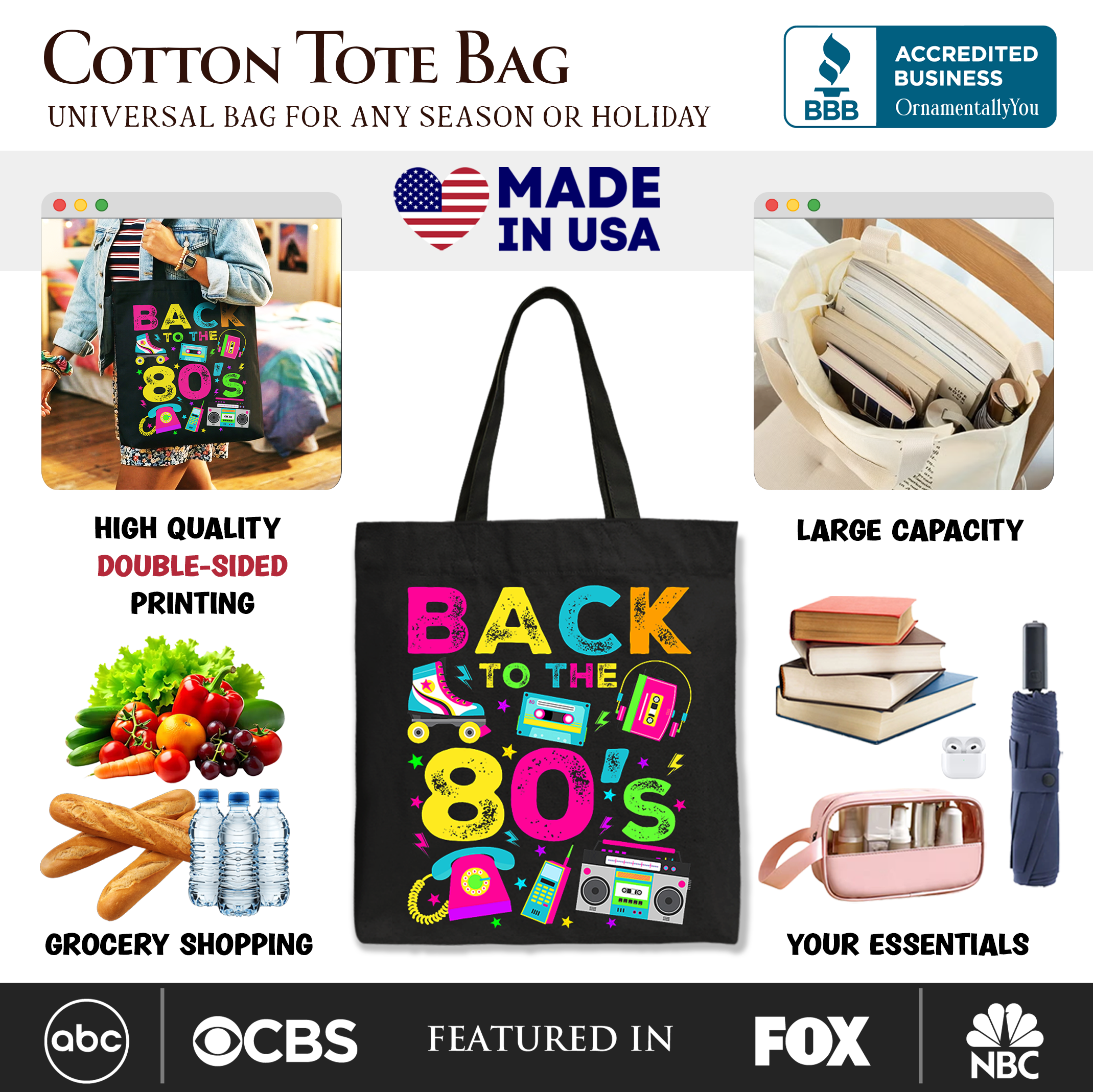 Back To The 80s Tote Bag, Colorful Retro Eighties Party Gift Shopper