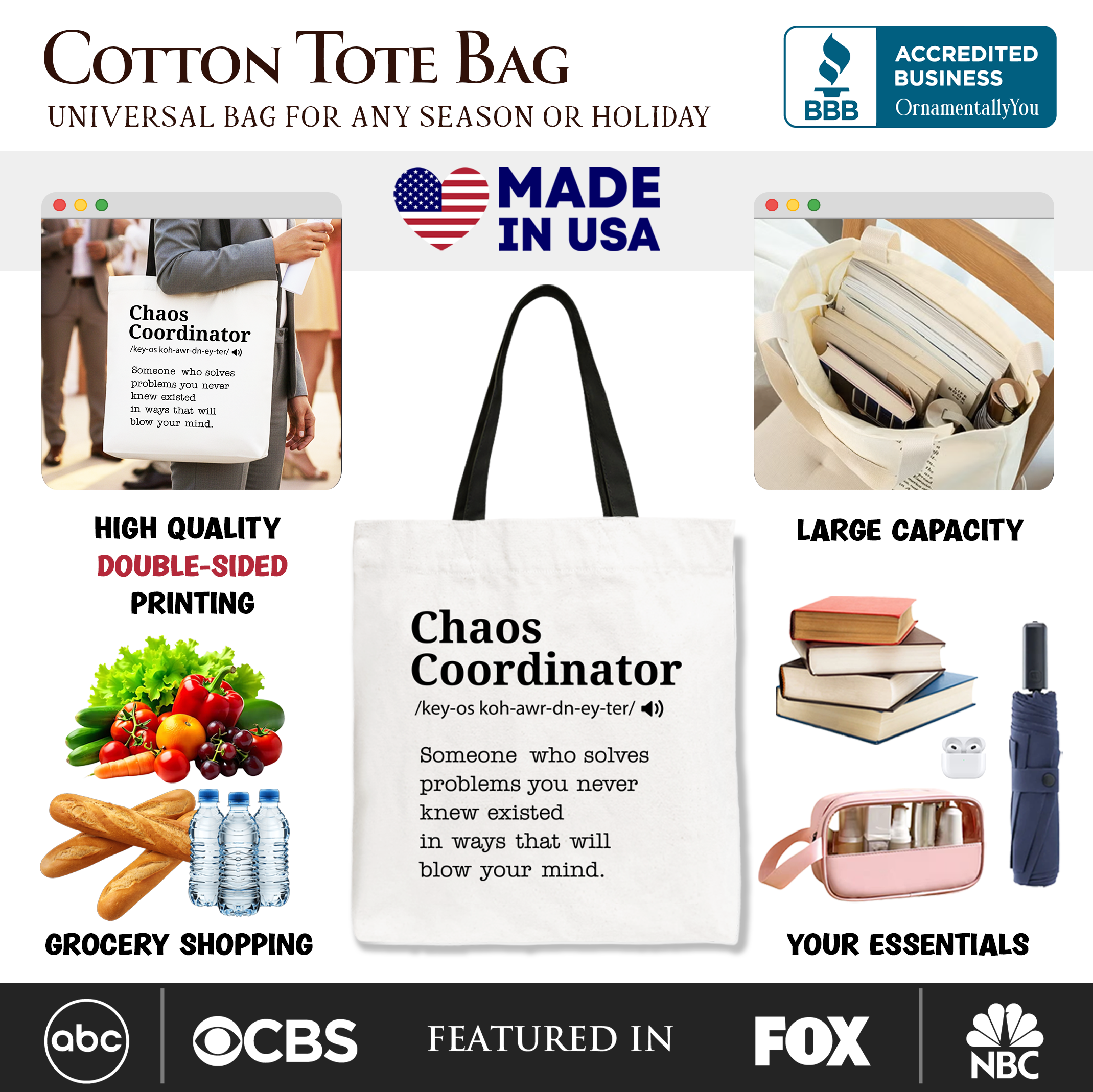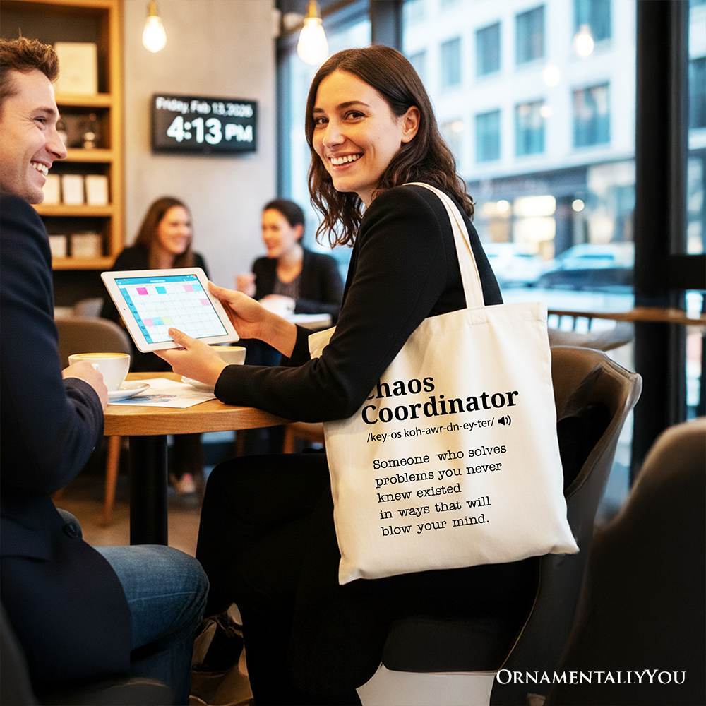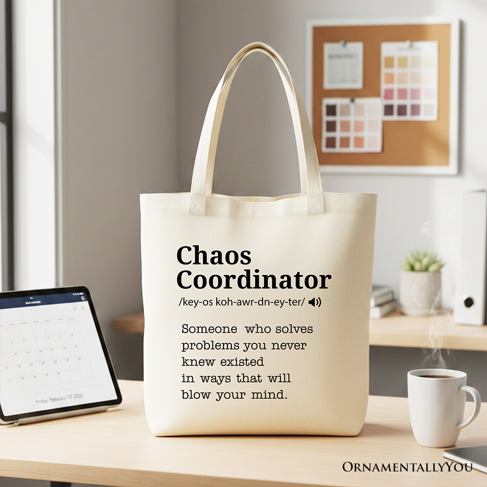 Chaos Coordinator Definition Personalized Canvas Tote Bag, Funny Gift Shopper for Busy Moms
