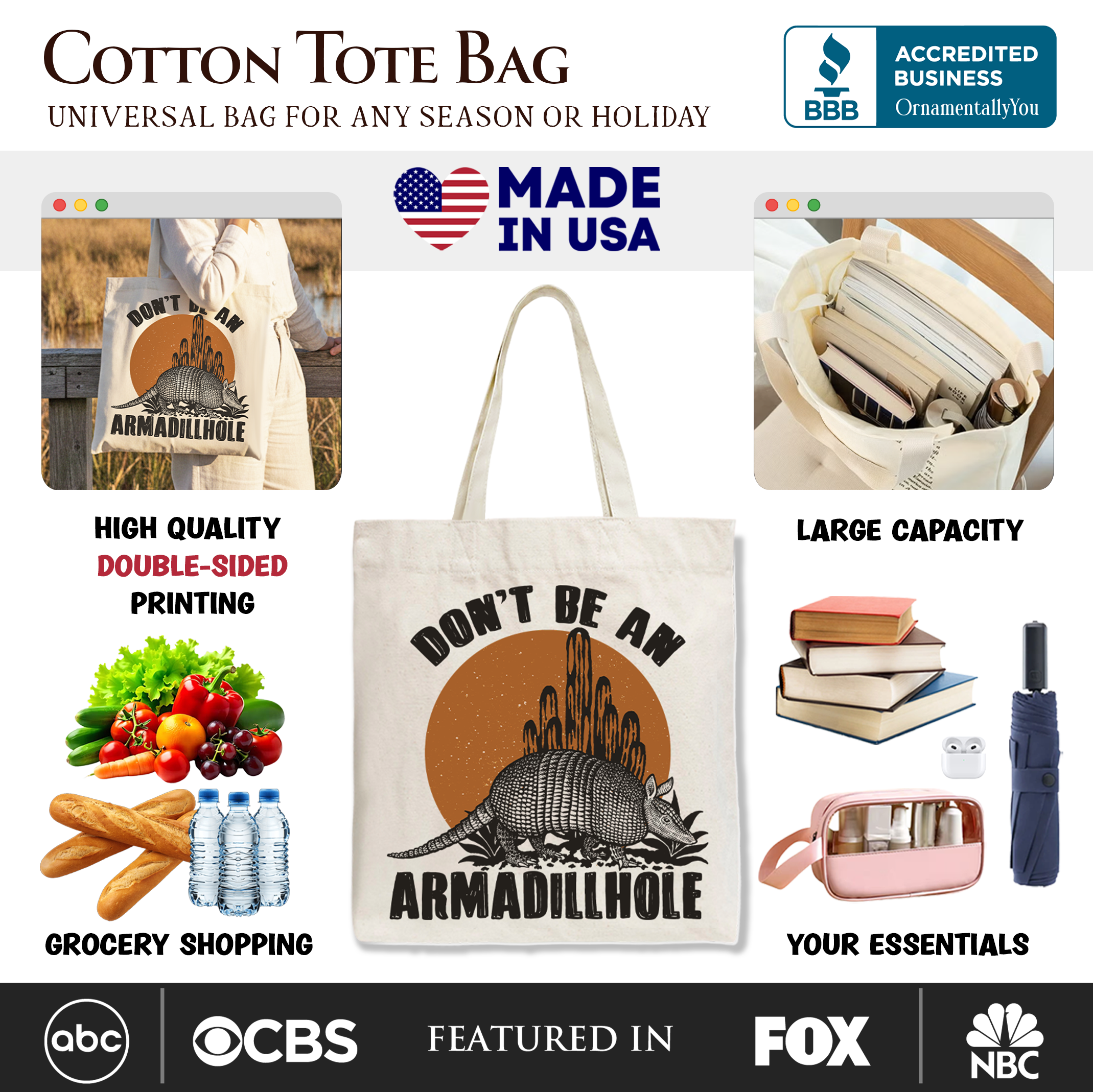 Don’t Be An Armadillhole Armadillo Canvas Tote Bag, Funny Western Animal Gift Shopper