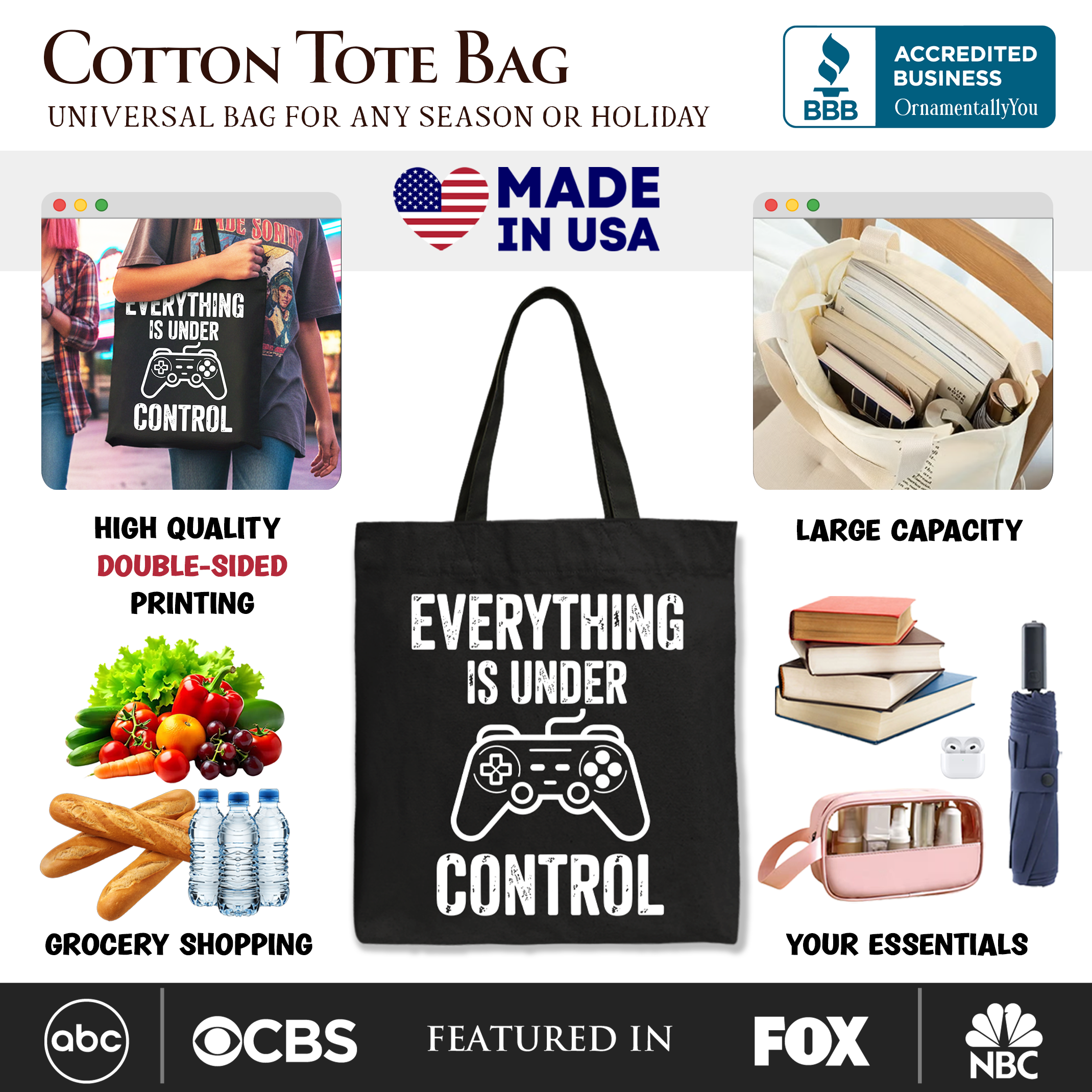 Everything Is Under Control Gamer Tote Bag, Funny Video Game Controller Gift Shopper