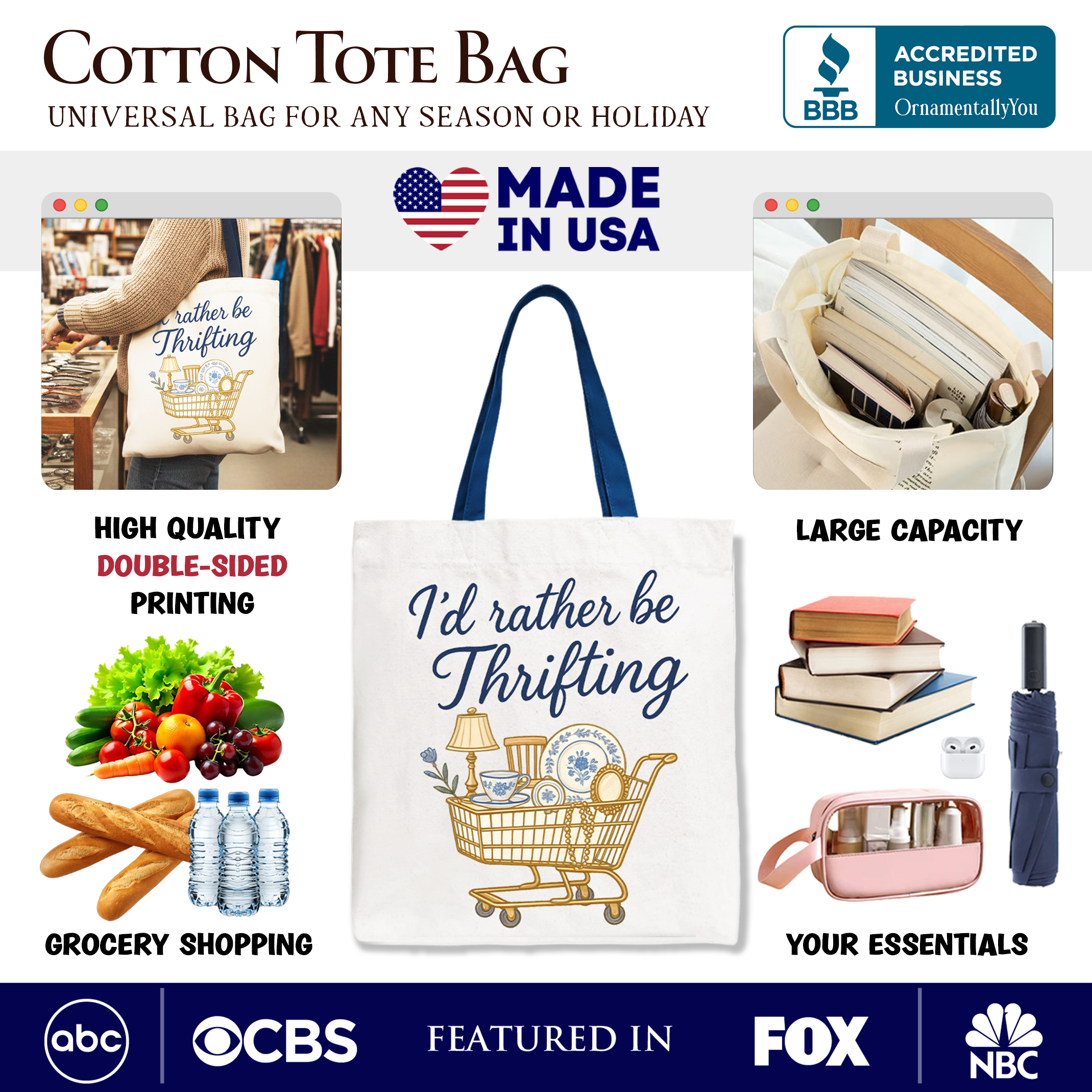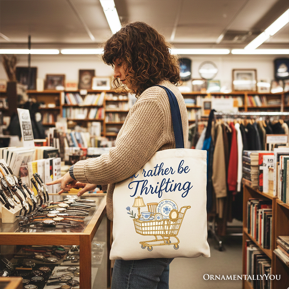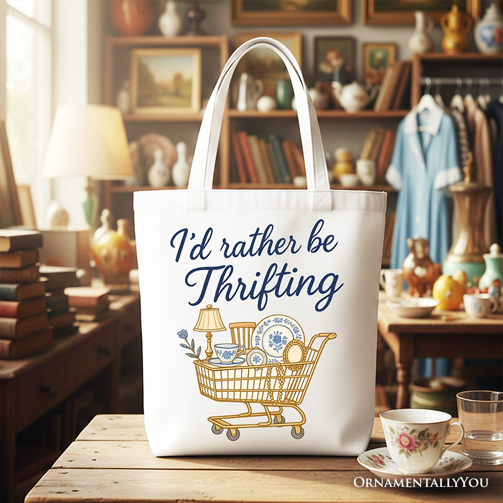 I’d Rather Be Thrifting Canvas Tote Bag, Vintage Thrift Shop Lover Gift Shopper