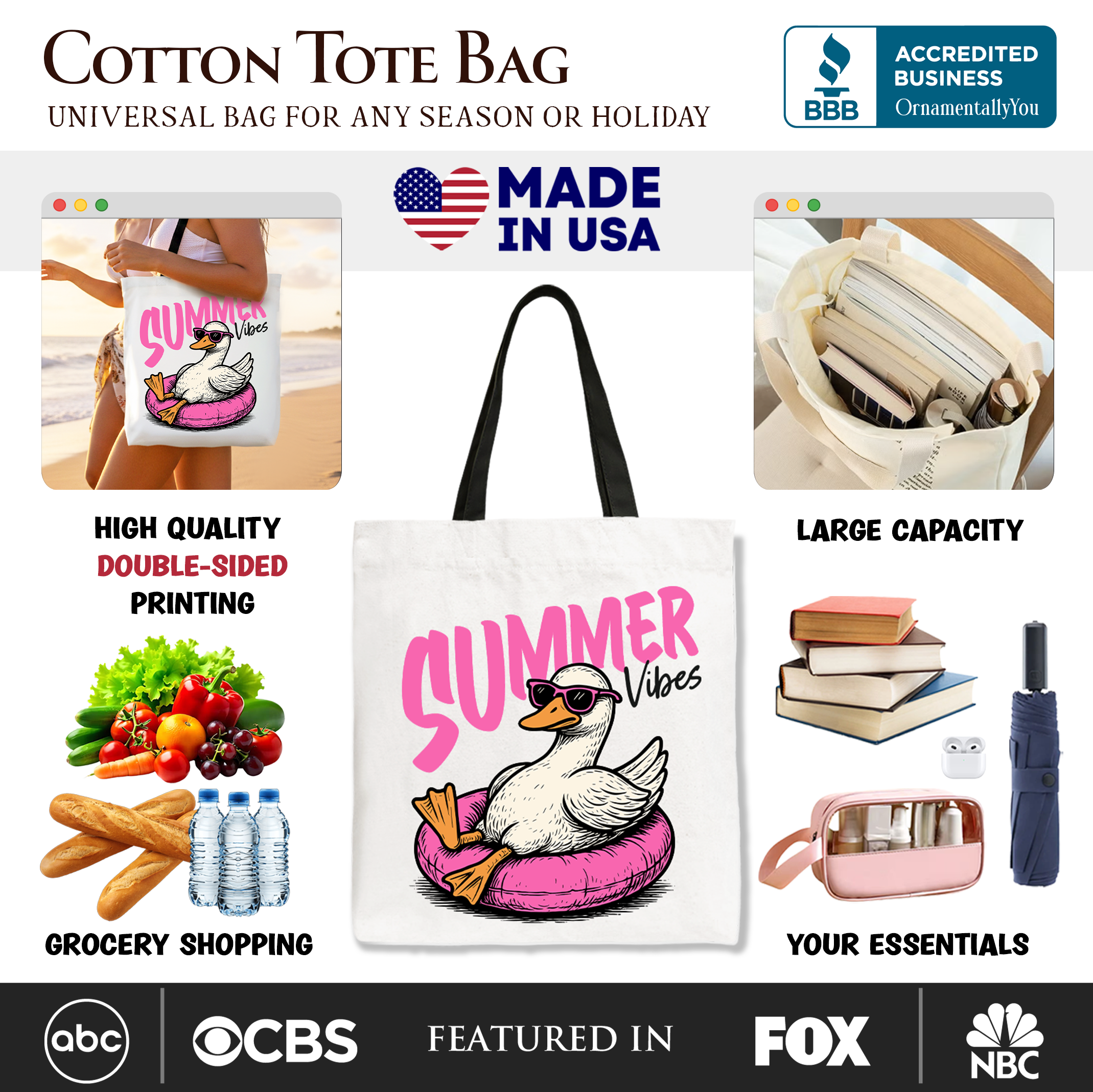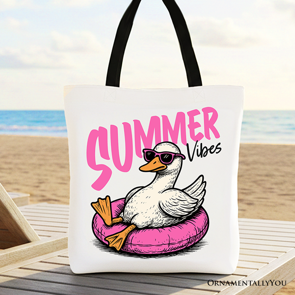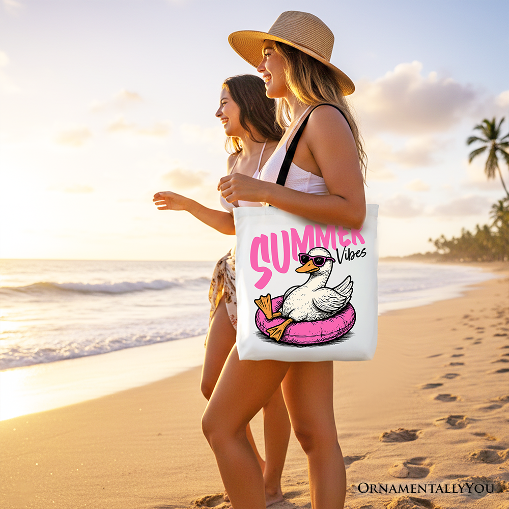 Summer Vibes Goose Tote Bag, Funny Beach Vacation Gift Shopper