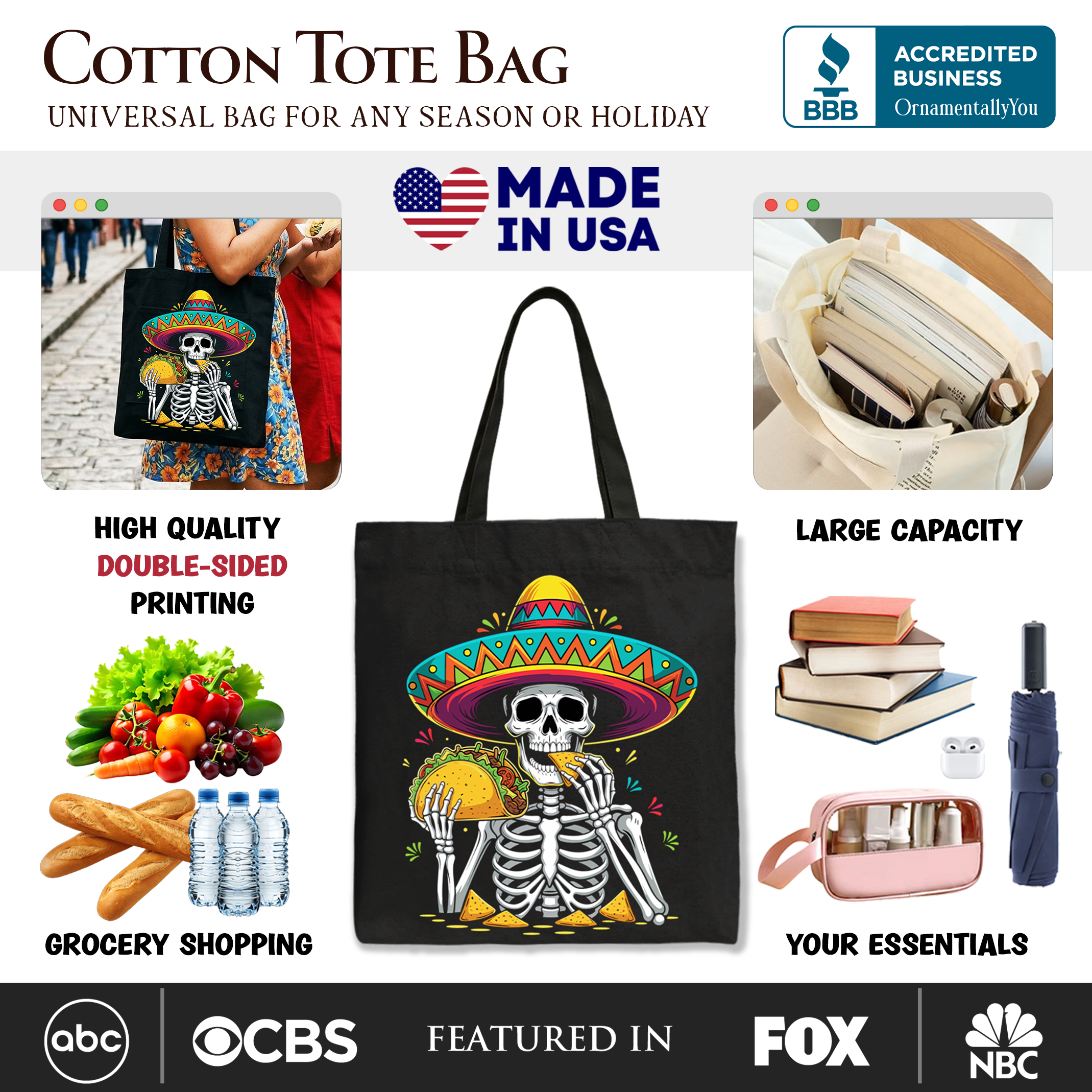 Taco Skeleton Cinco De Mayo Tote Bag, Funny Mexican Skull Sombrero Gift Shopper