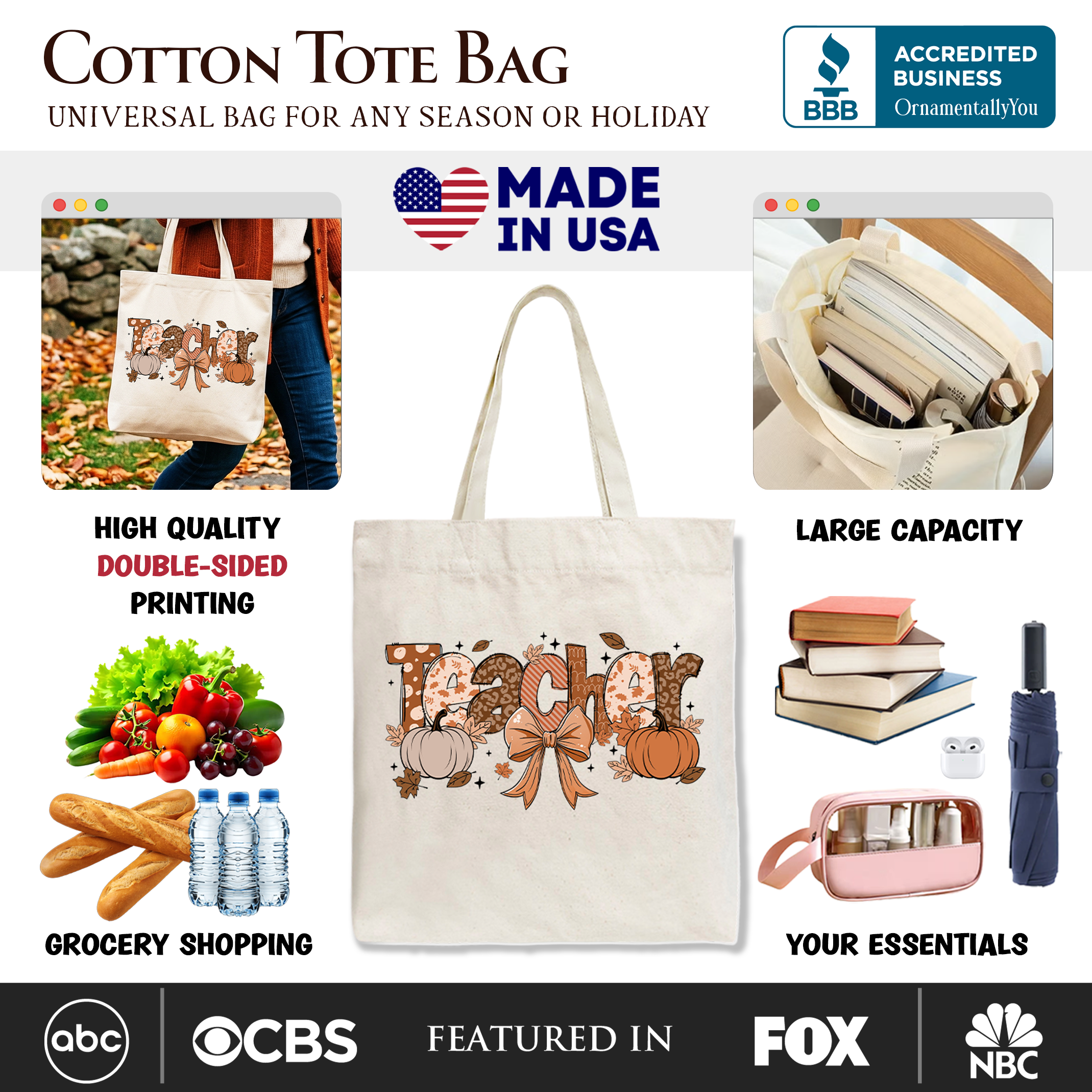 Teacher Coquette Autumn Tote Bag, Cozy Fall Pumpkin Gift Shopper for Educators