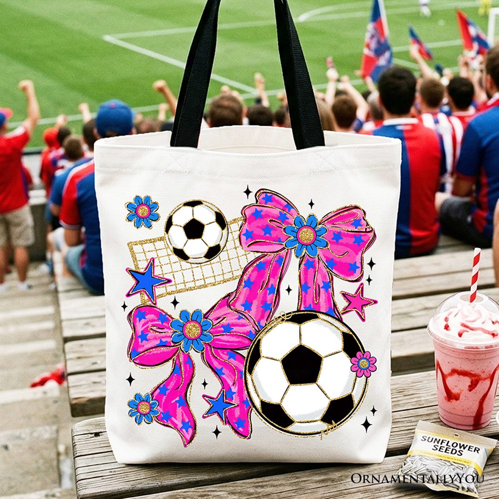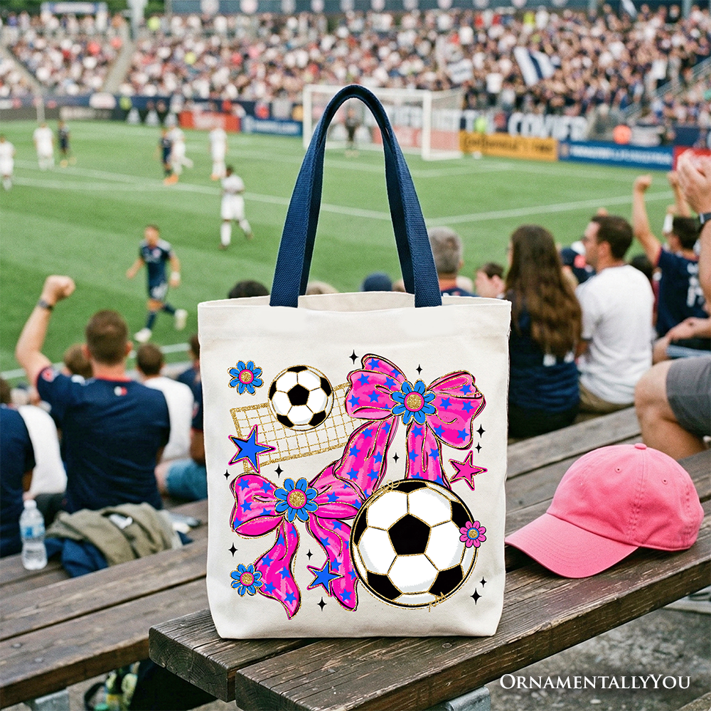 Soccer Coquette Pink Bow Tote Bag, Preppy Game Day Gift Shopper