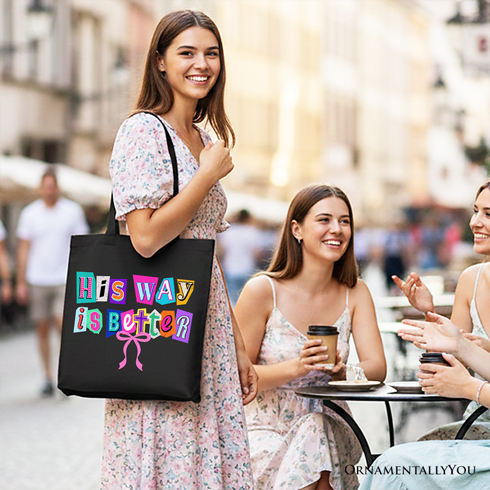His Way Is Better Christian Canvas Tote Bag, Retro Preppy Coquette Faith Gift Shopper