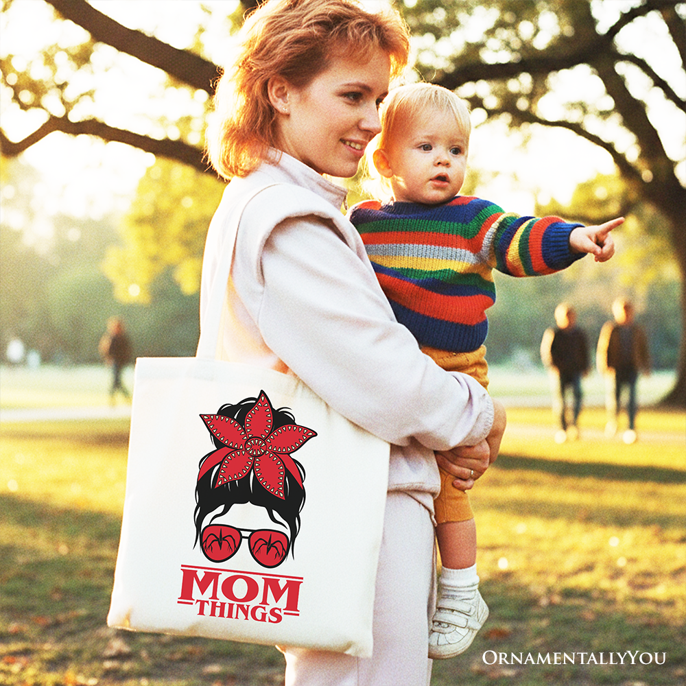Mom Things Messy Bun Retro Canvas Tote Bag, Red Bandana Glasses Family Matching Gift Shopper