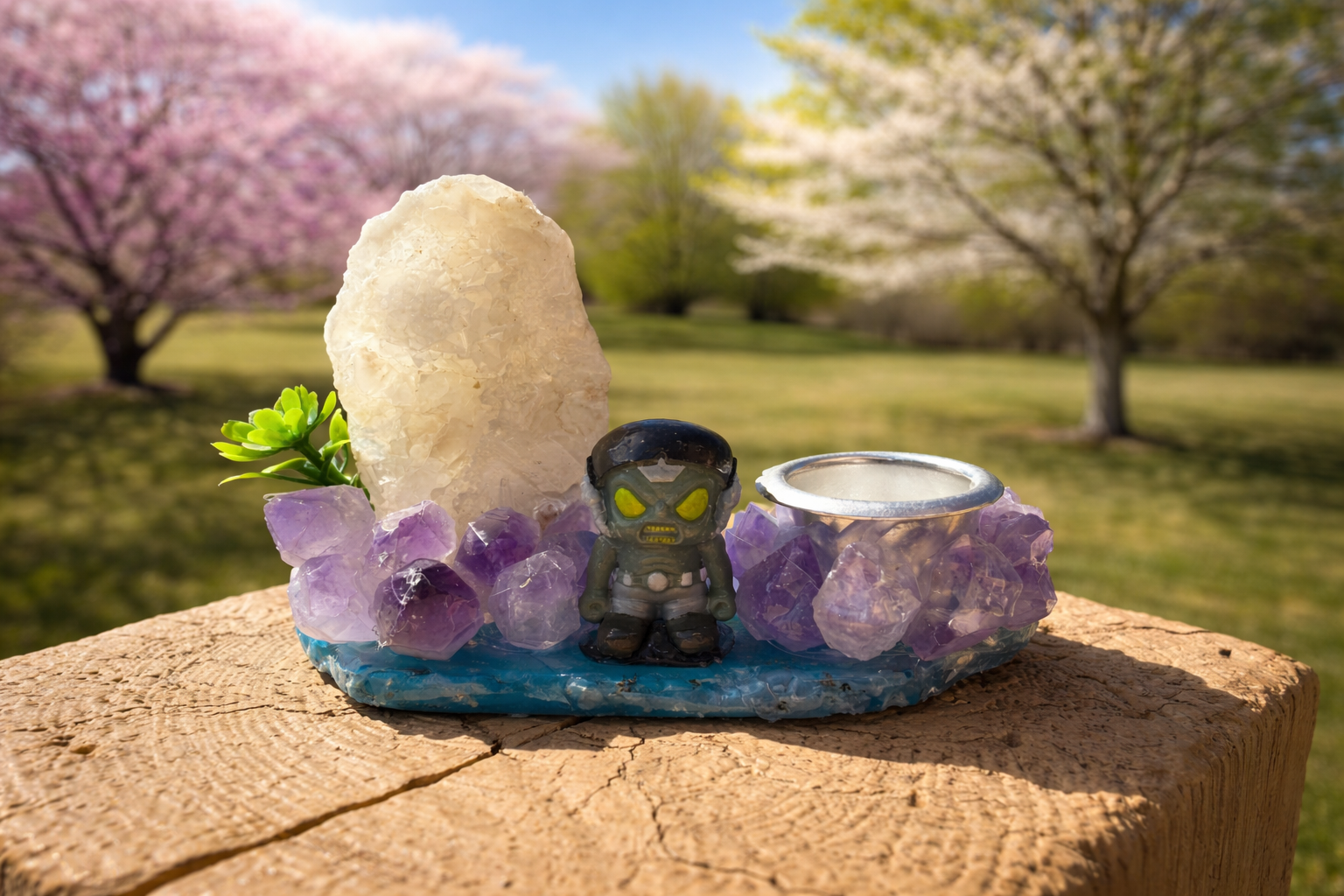 Amethyst and Druzy Geode Freeform Sphere Holder #4