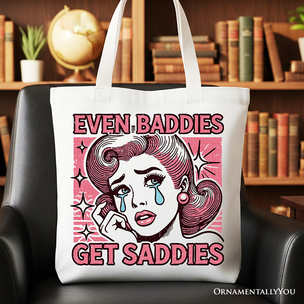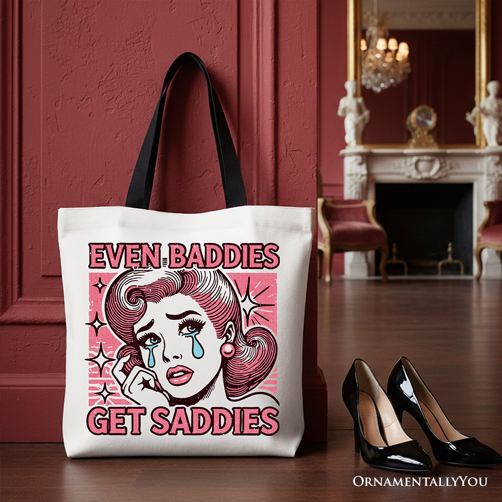 Even Baddies Get Saddies Tote Bag, Retro Crying Girl Pop Art for Stylish and Emotional Women