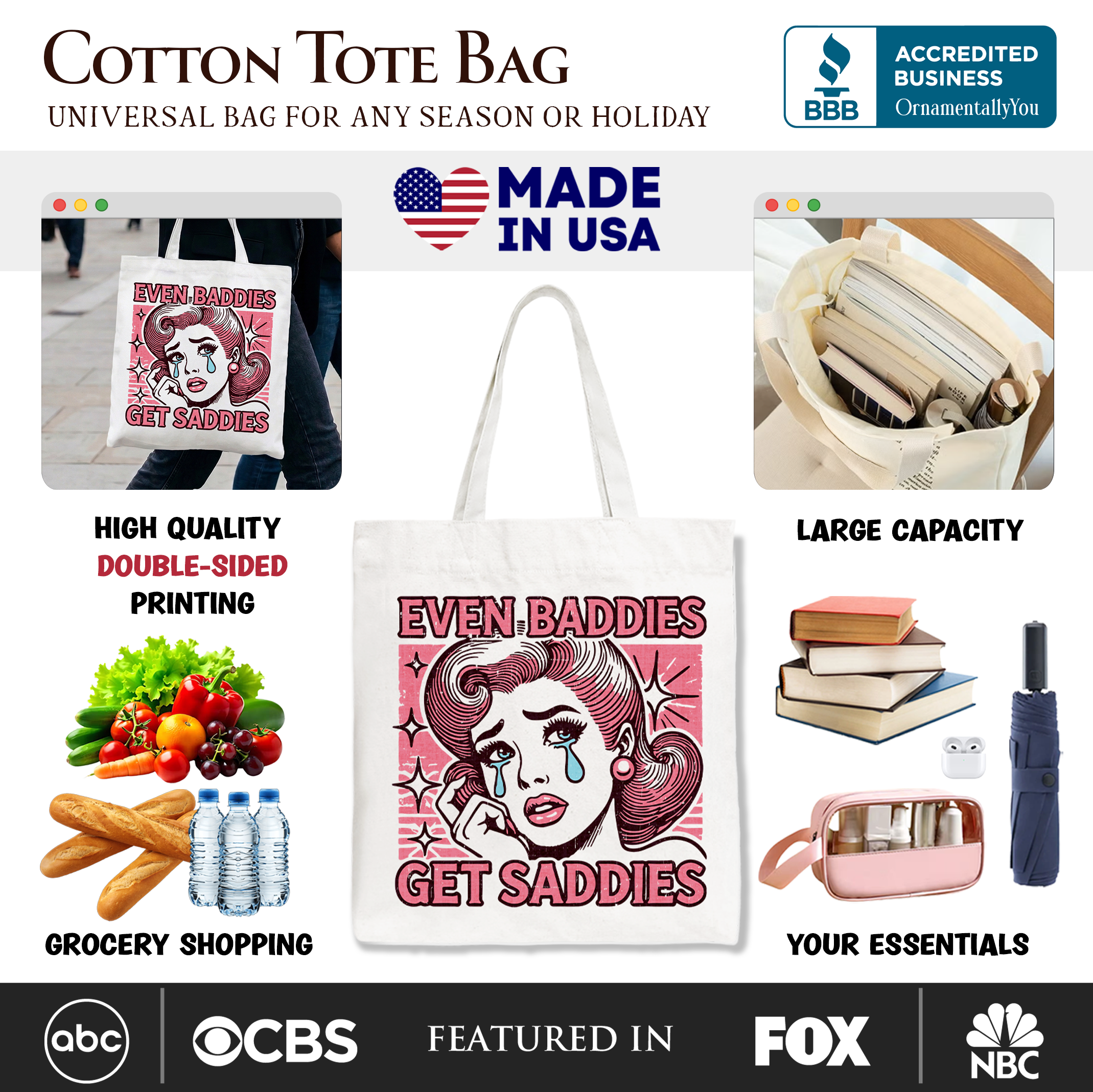 🛍️ Lightweight yet sturdy — perfect for everyday use, errands, and emotional support