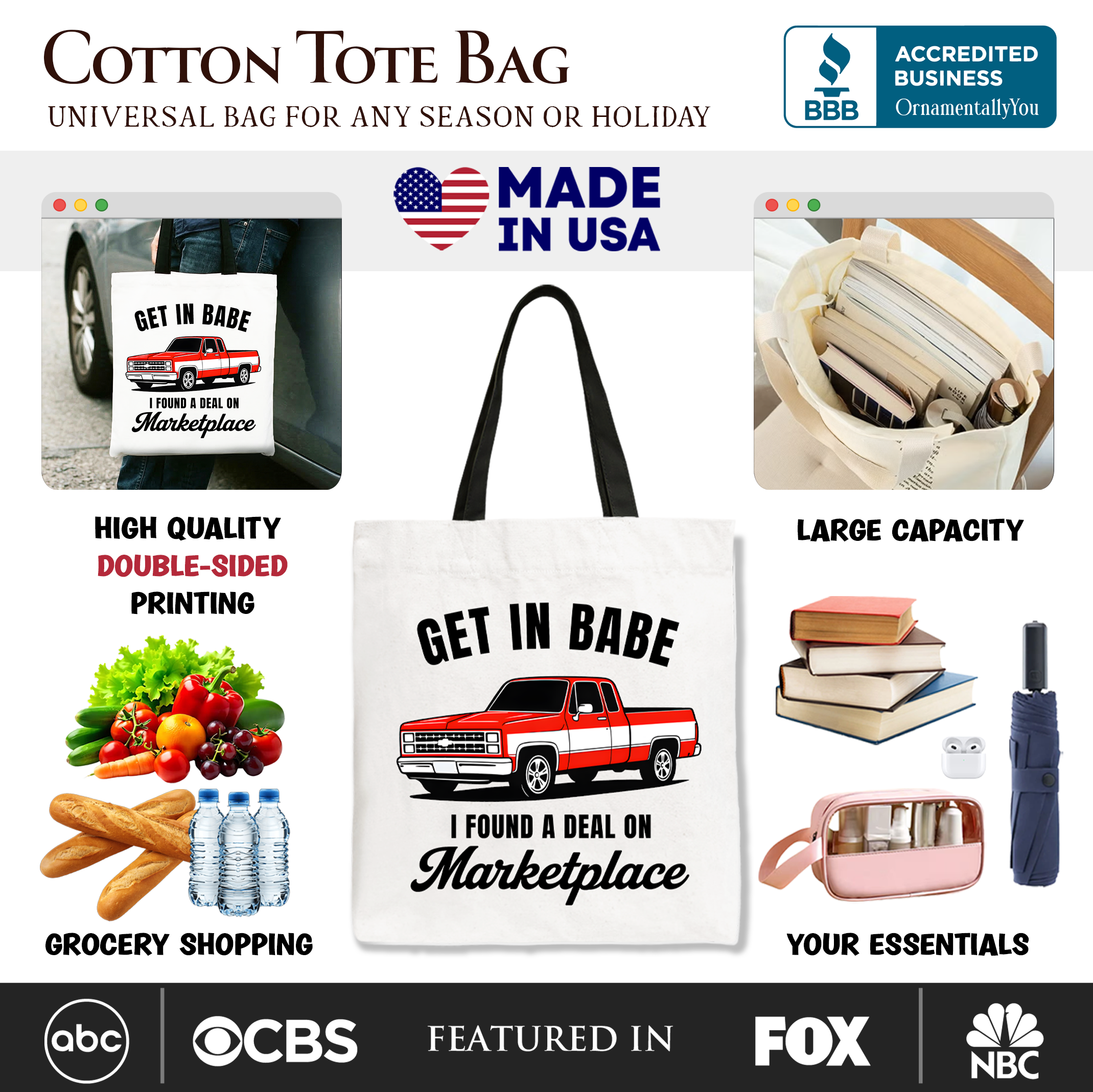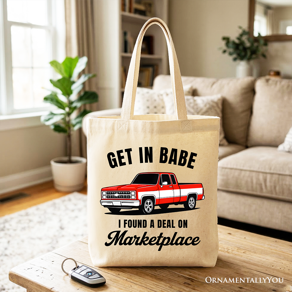 Show off your bargain-hunting skills with this hilarious marketplace tote bag featuring a funny “I Found A Deal On Marketplace” design paired with a classic red truck graphic. Perfect for thrifters and deal lovers, this funny shopping tote bag is great for errands, flea markets, or daily use. Made as a durable reusable tote bag, it offers plenty of room for your finds while adding personality to your outings. A fun gift tote for deal hunters and online marketplace fans alike. 🚗💸