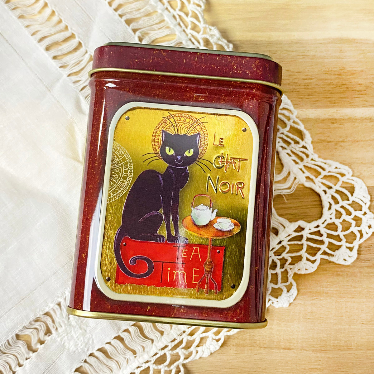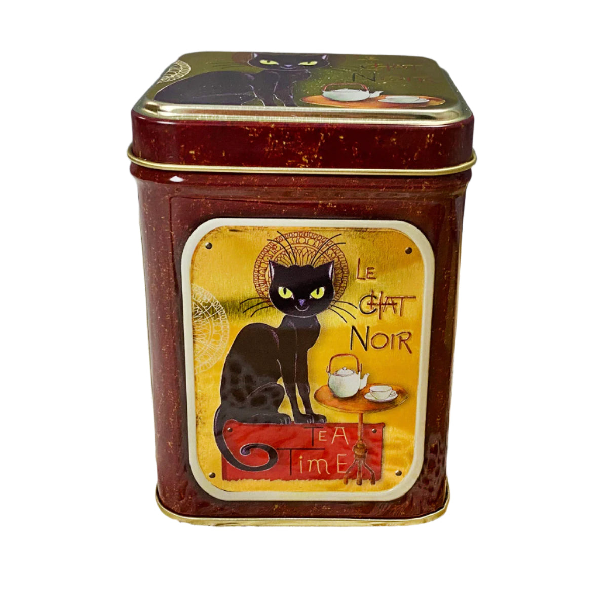 Enjoy a bit of Parisian flair with our Le Chat Noir tea tin. The black cat, paired with a delightful vintage gold shine, is a must for any sophisticated tea cupboard.