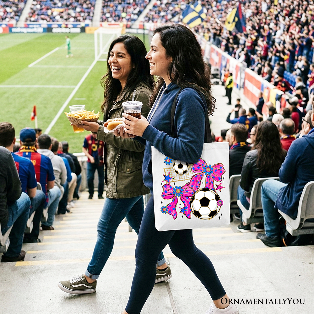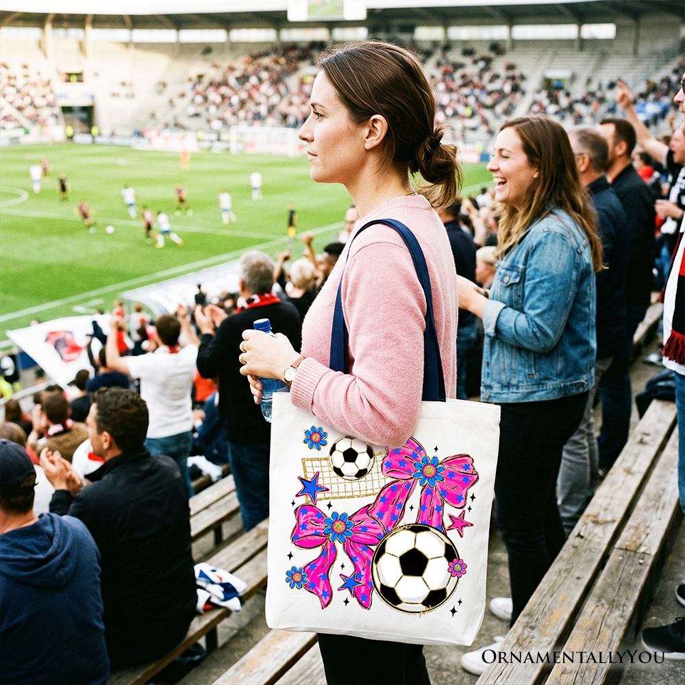 Soccer Coquette Pink Bow Tote Bag, Preppy Game Day Gift Shopper