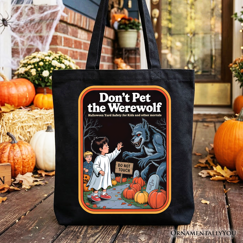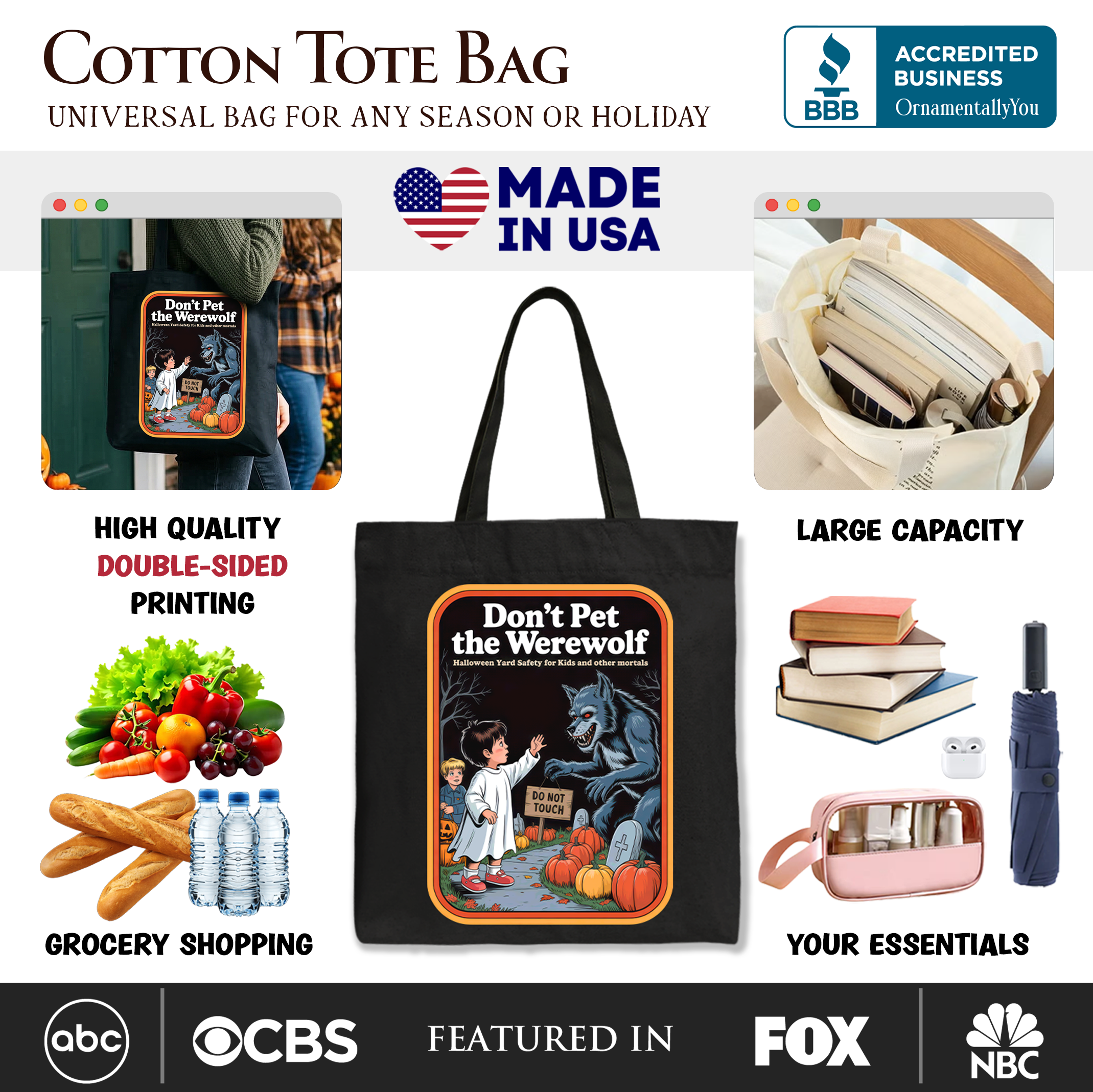 Don't Pet the Werewolf Tote Bag, Retro Funny Halloween Gift Shopper
