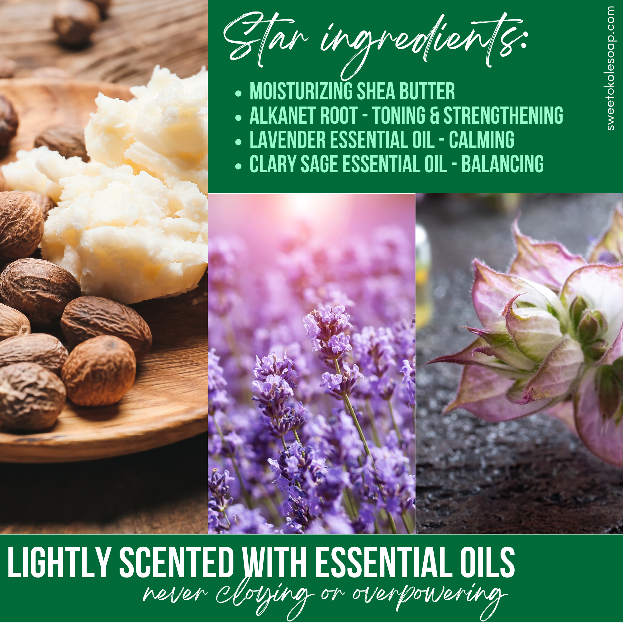 Lavender Clary Sage Solid Shampoo Bar with Ratanjot Root
