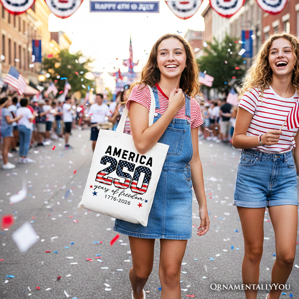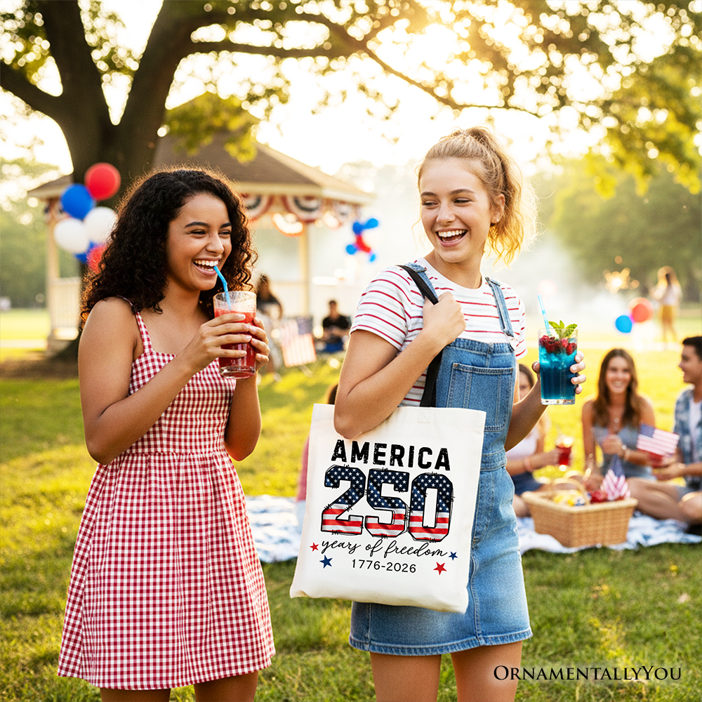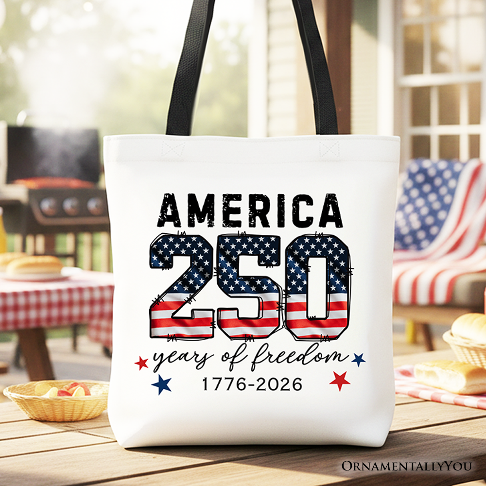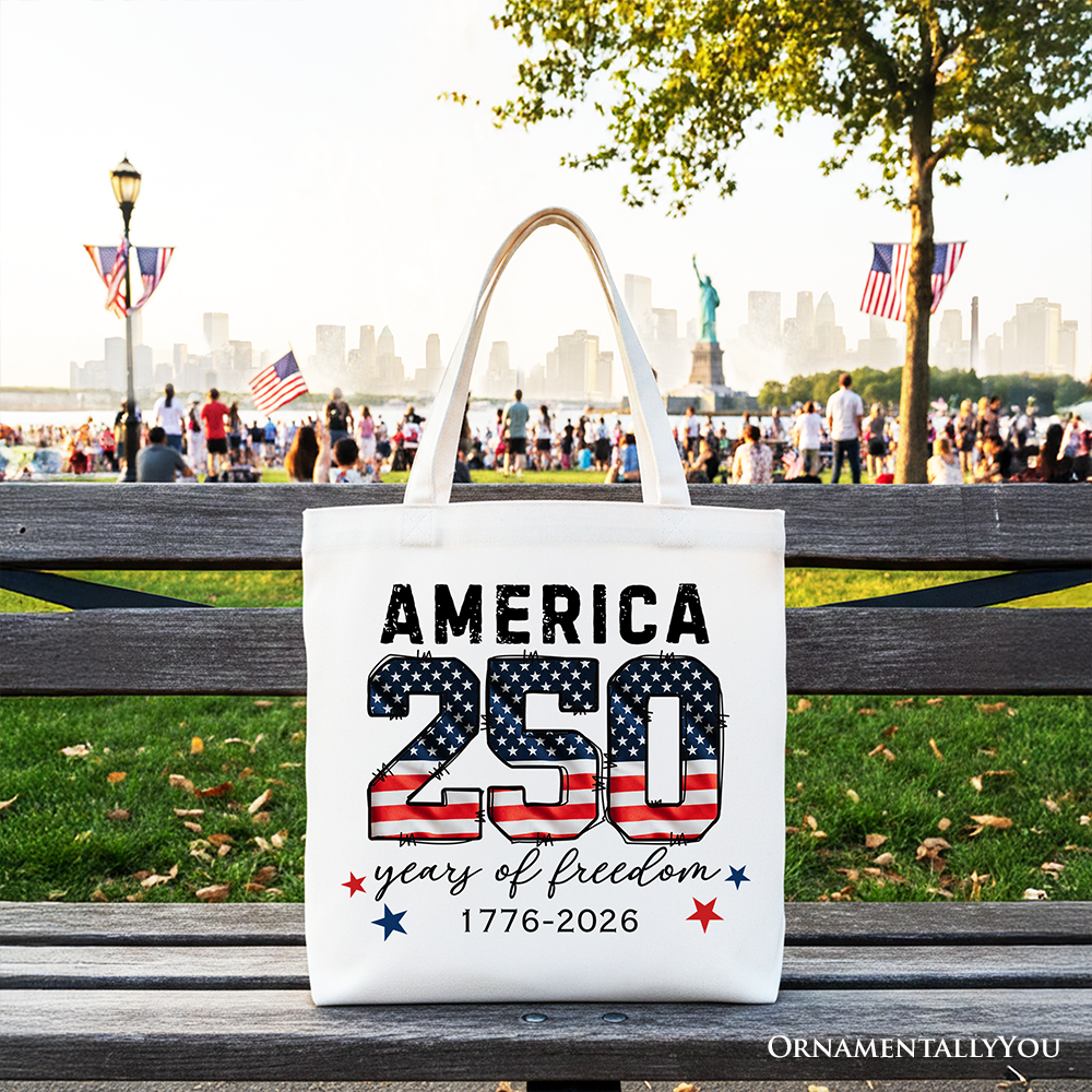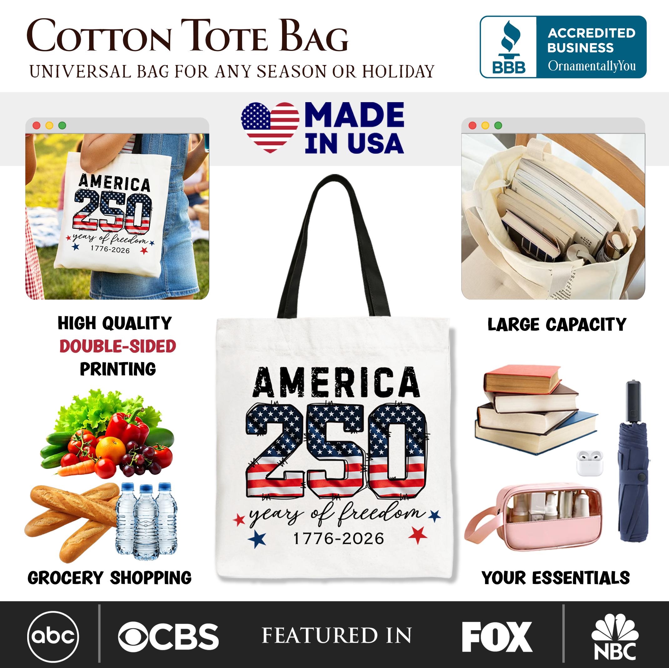 America 250 Years of Freedom Tote Bag, Patriotic USA Anniversary 1776 Gift Shopper