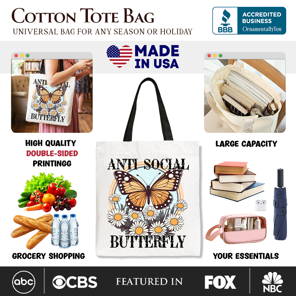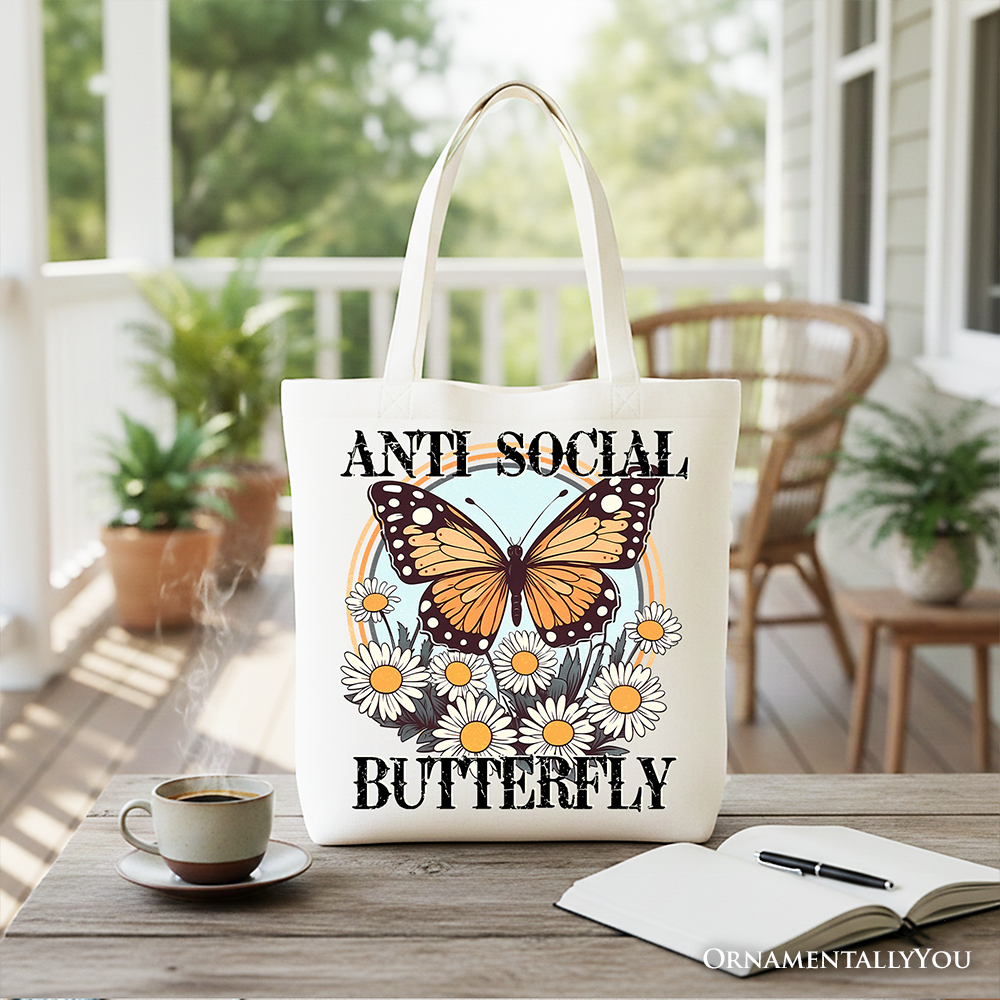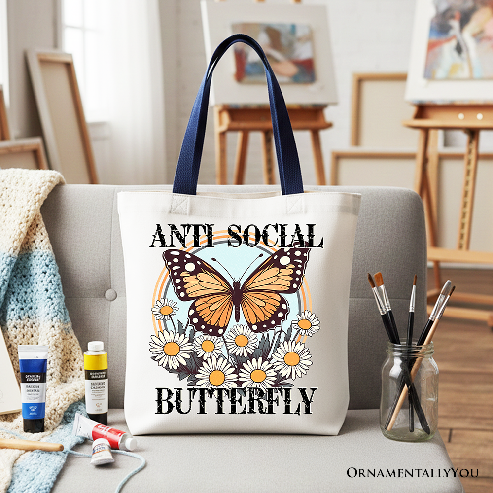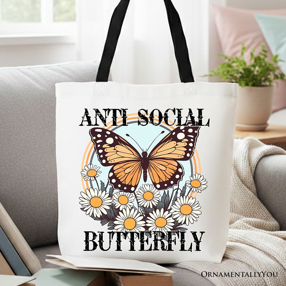 Anti Social Butterfly Canvas Tote Bag, Retro Gift Shopper for Quirky and Independent Women