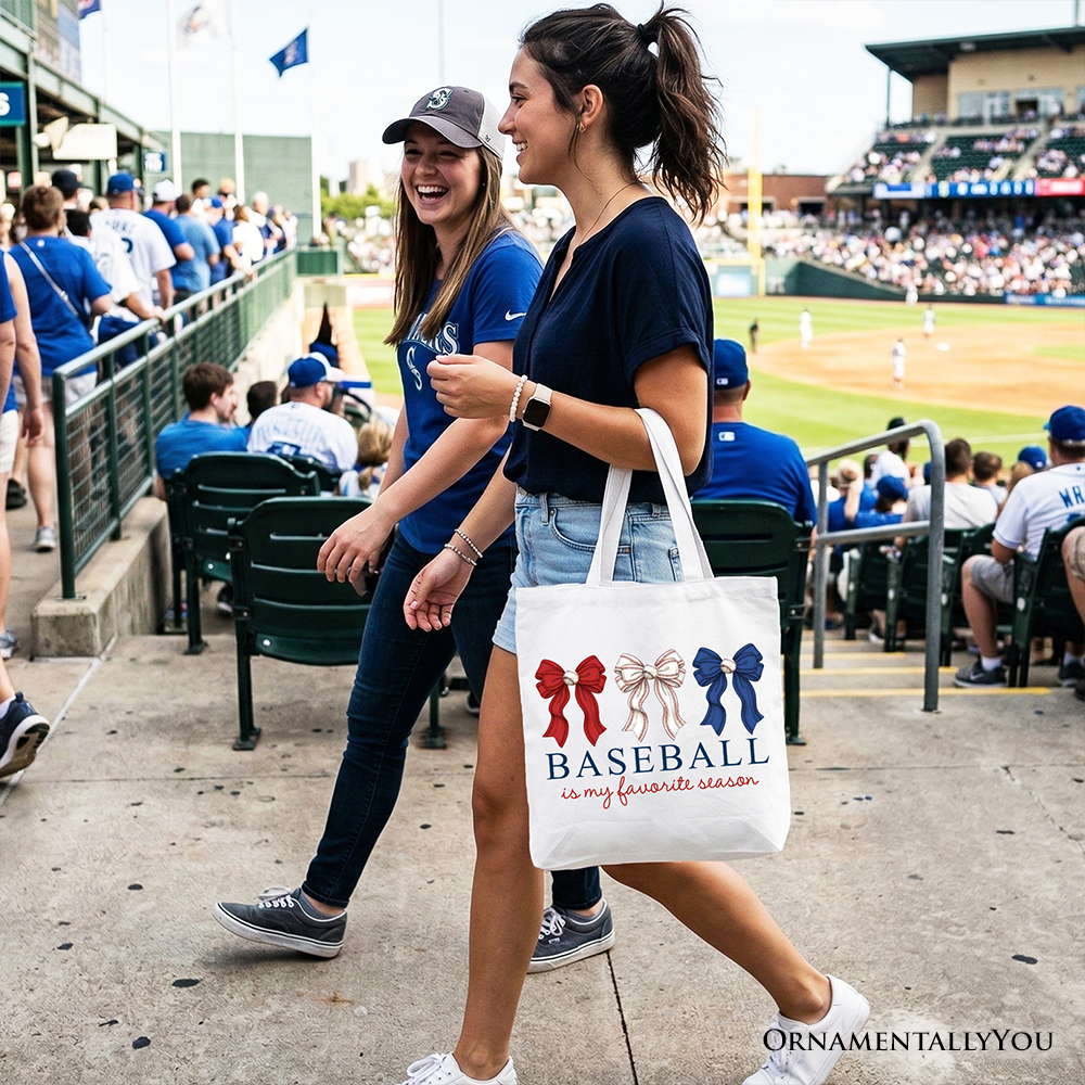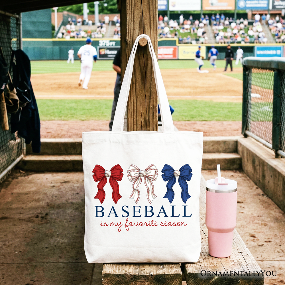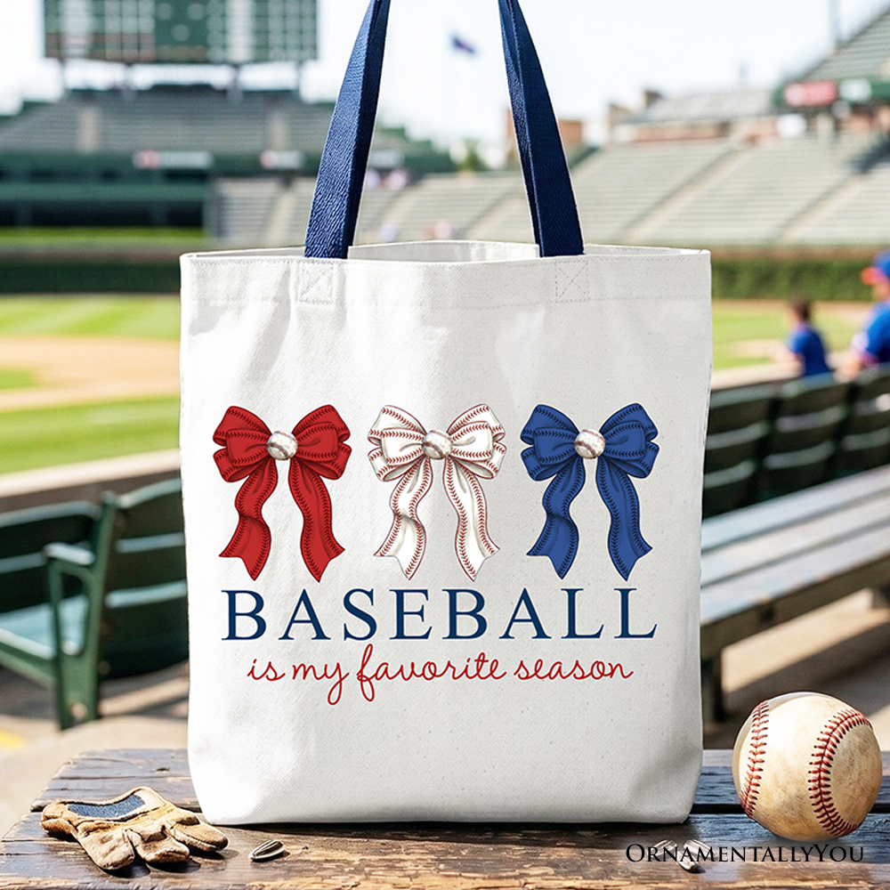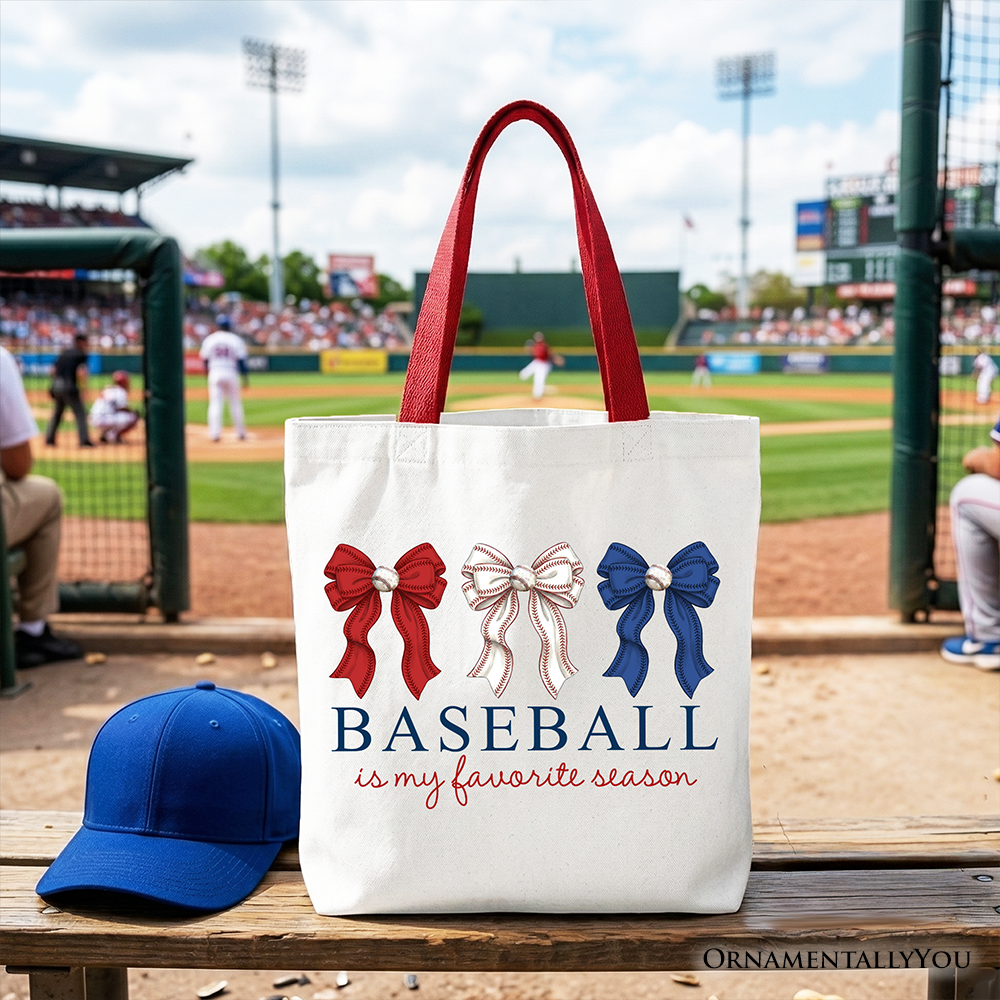 Baseball Is My Favorite Season Tote Bag, Coquette Bow Game Day Gift Shopper