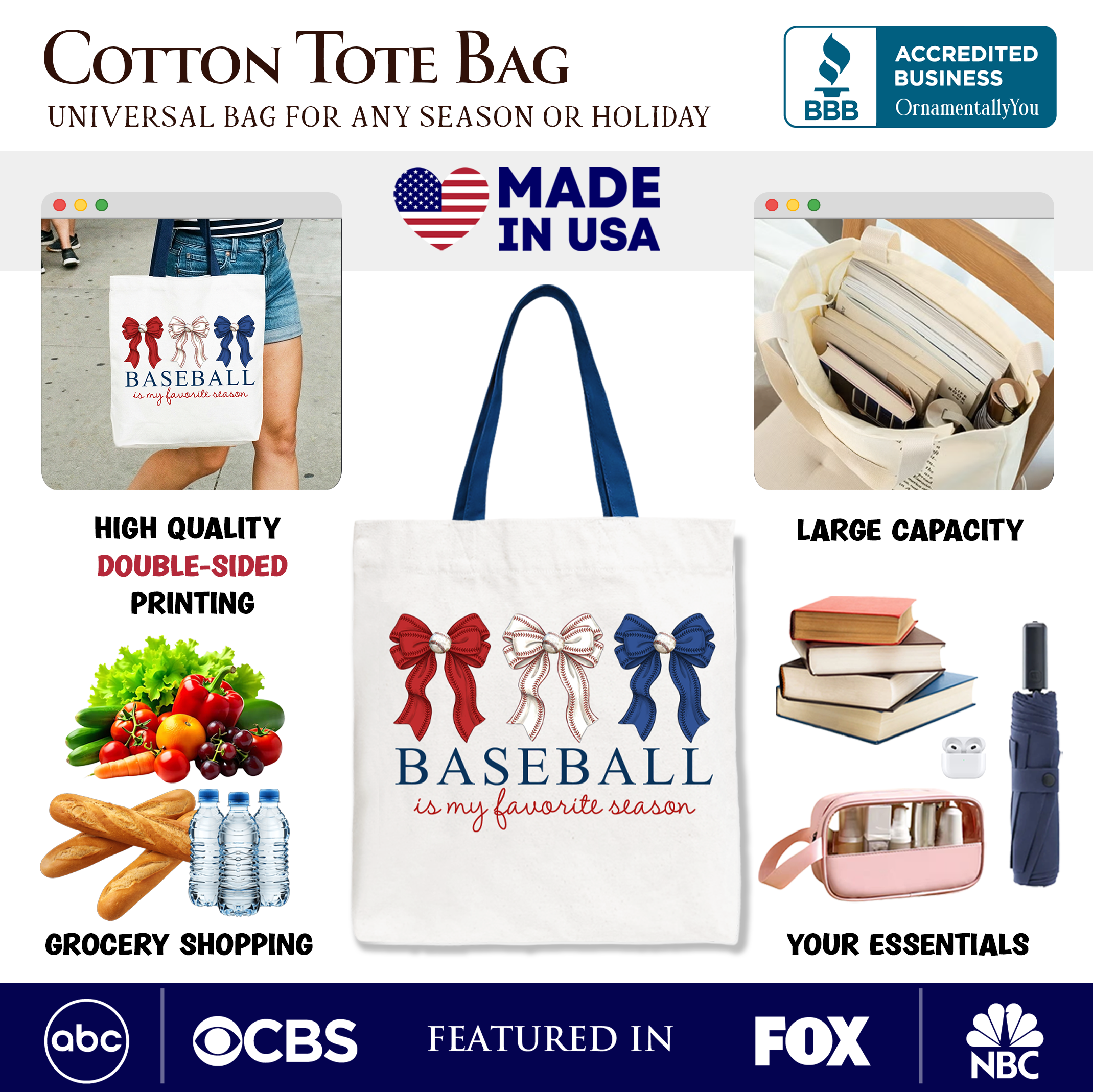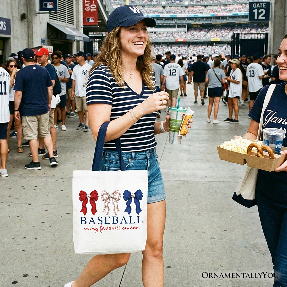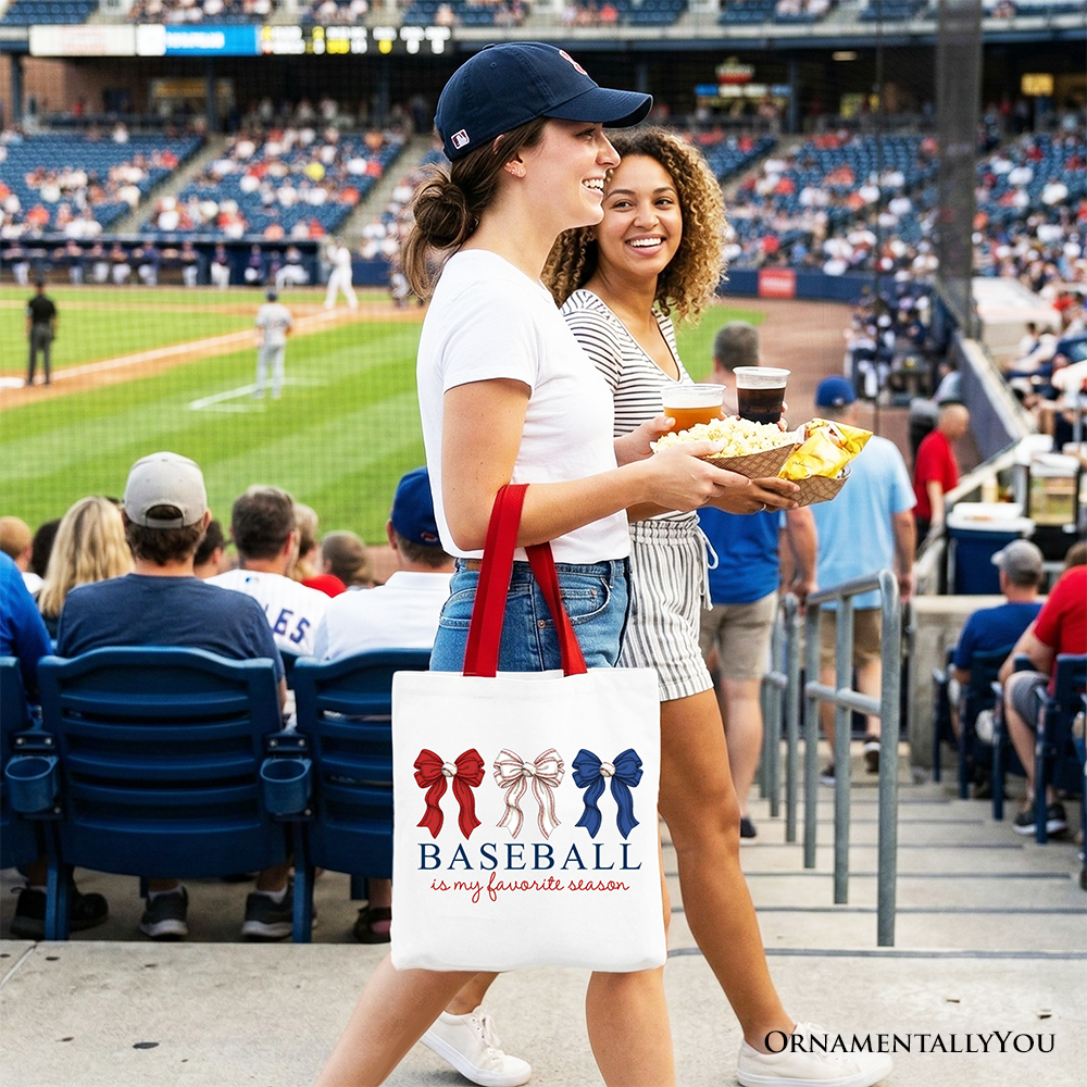 Baseball Is My Favorite Season Tote Bag, Coquette Bow Game Day Gift Shopper