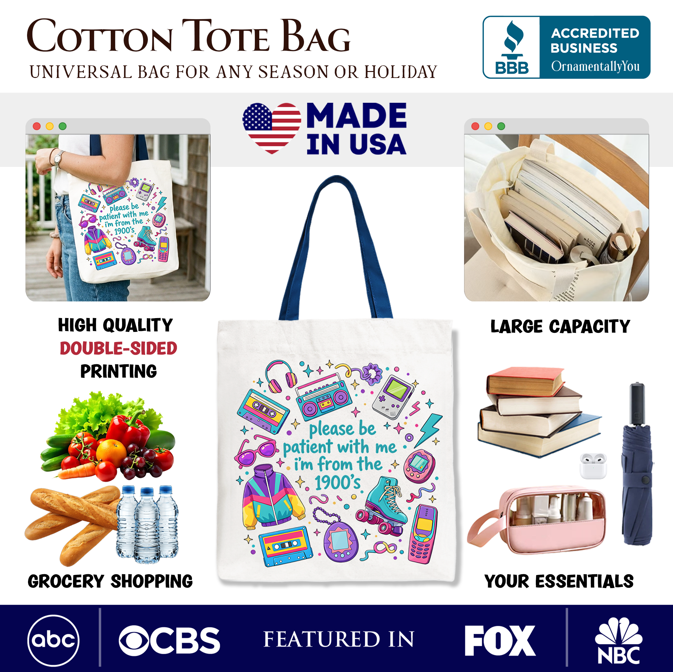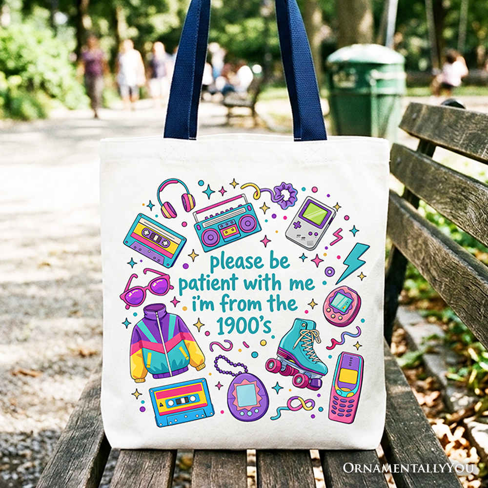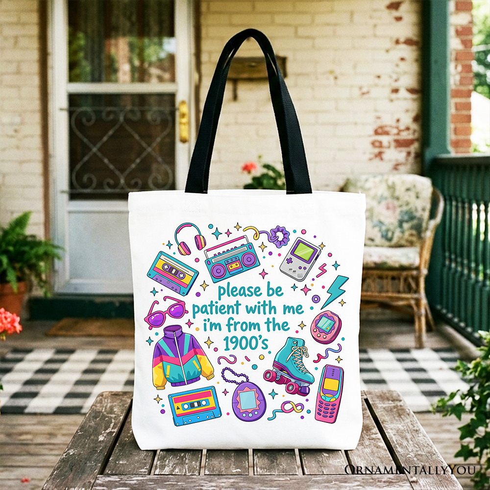 Be Patient I’m From the 1900s Throwbacks Tote Bag, Retro 90s Funny Bright Gift Shopper