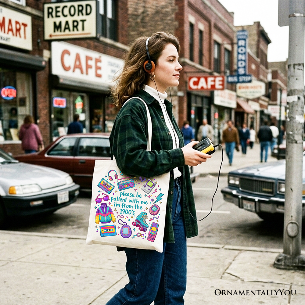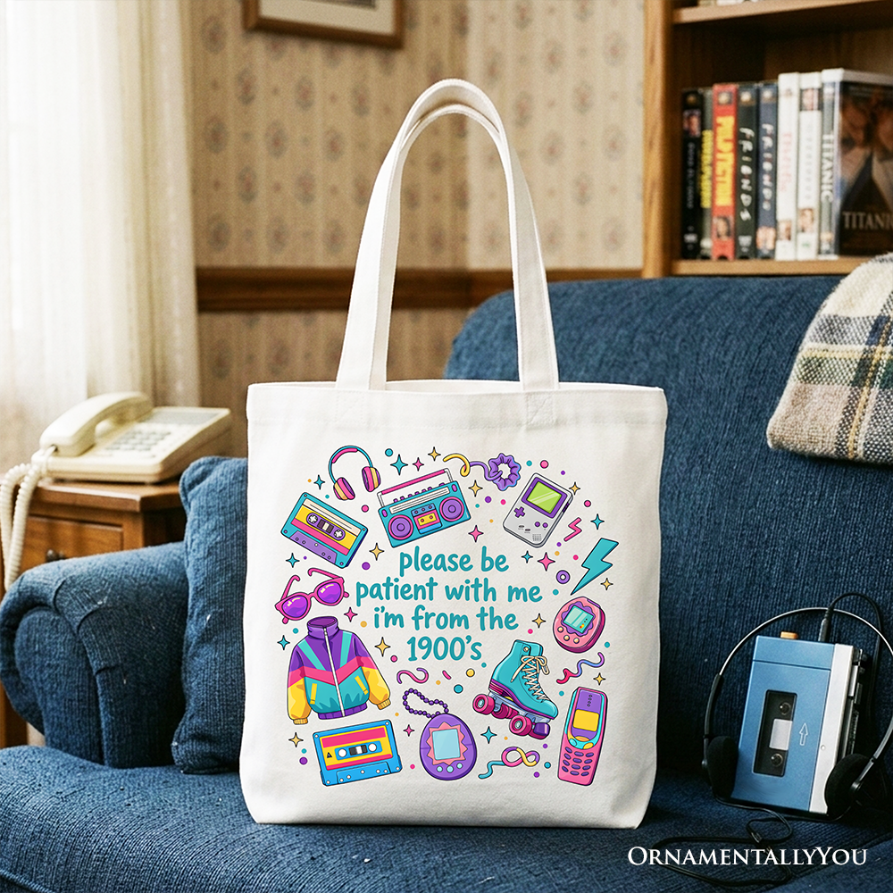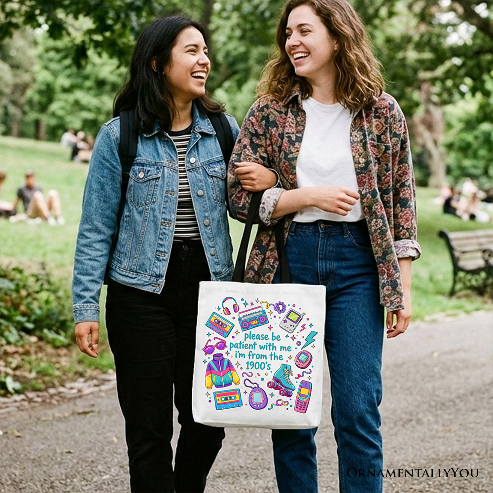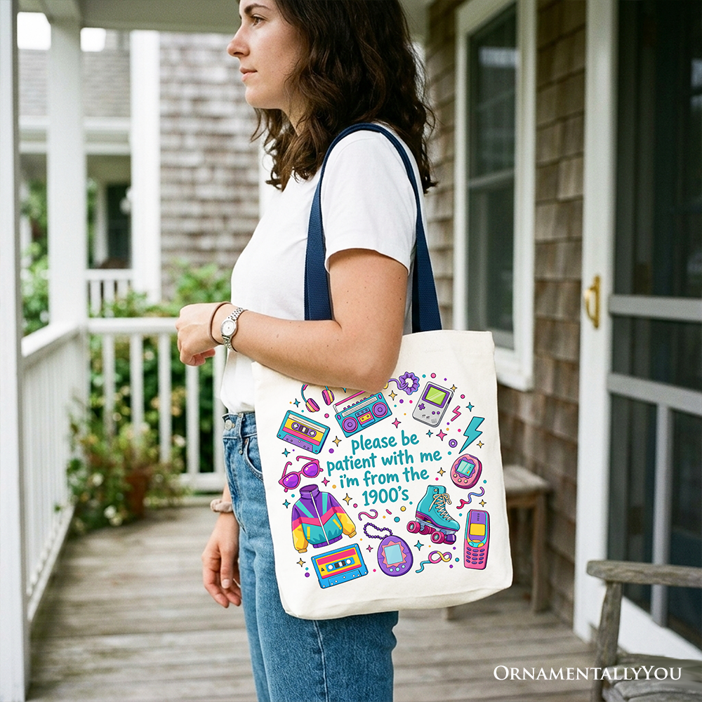 Be Patient I’m From the 1900s Throwbacks Tote Bag, Retro 90s Funny Bright Gift Shopper